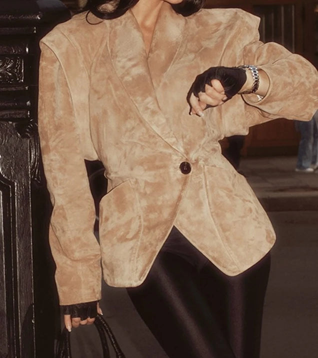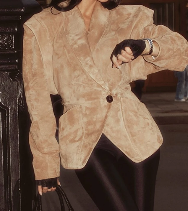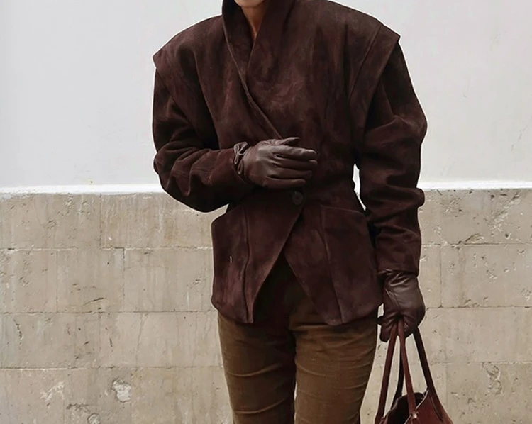 MQTIME  -  Elegant Temperament V-neck Solid Color Slim Fit Splicing Waist Solid Color Jacket Jacket 2025 New Model