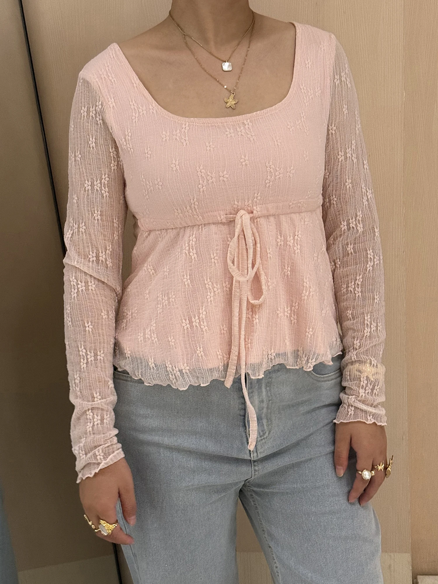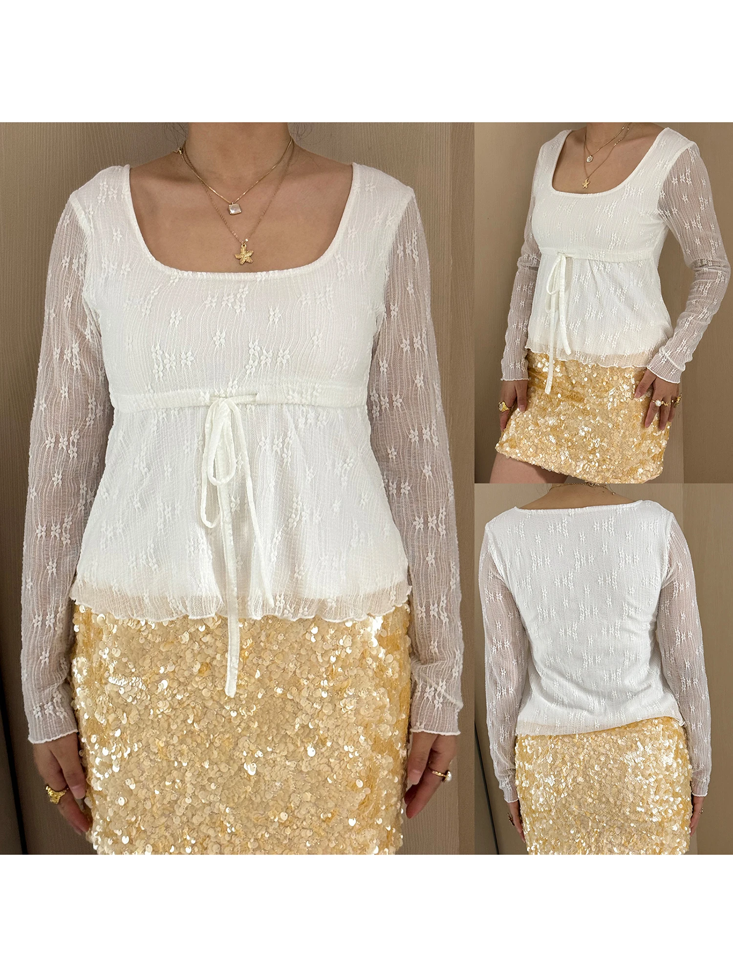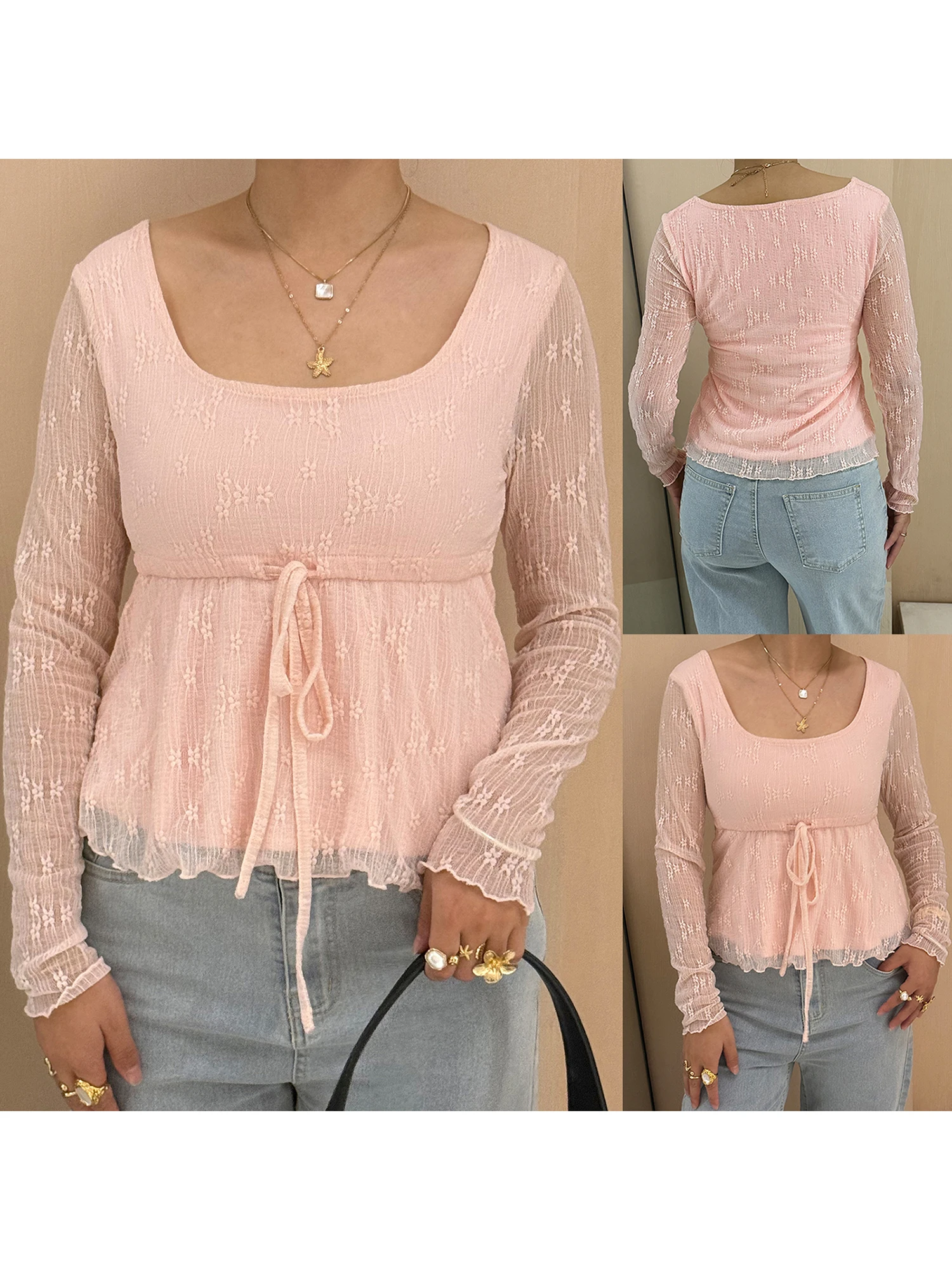 MQTIME - Elegant V-Neck Blouses with Tie-Up Front and Ruffle Detailing Long Sleeve Fit Shirts for Women Perfect for Spring and