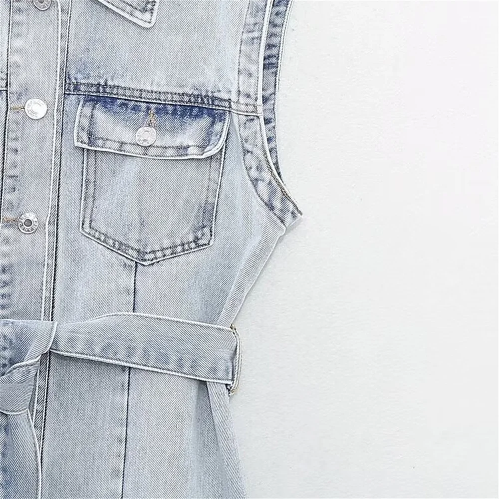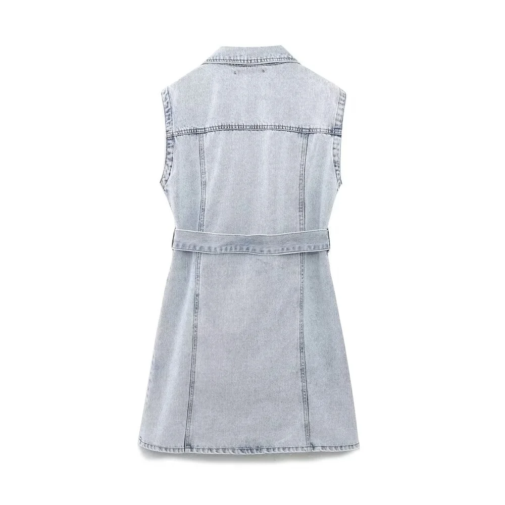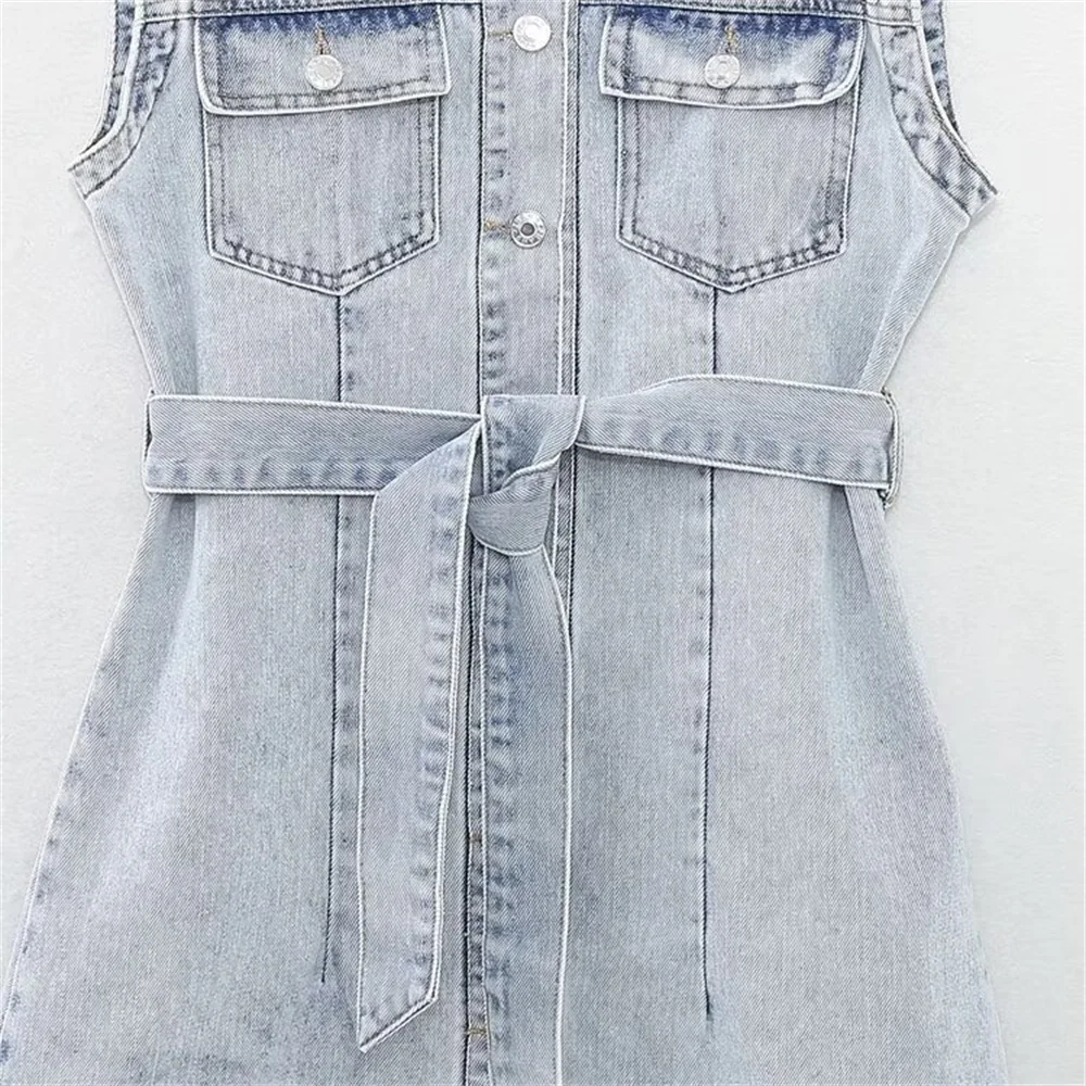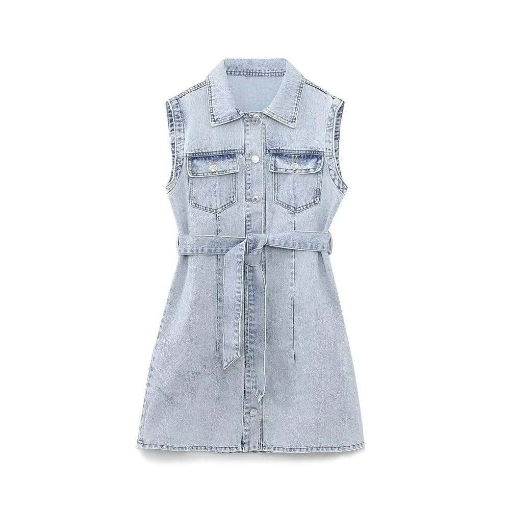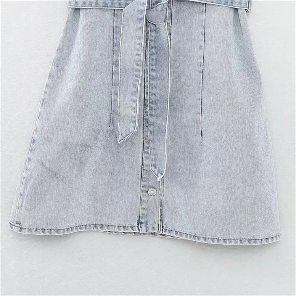 MQTIME - European And American Style 2024 Summer Women's New Fashionable Temperament Casual Versatile Lapel With Belt Denim Dress
