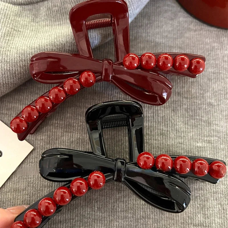 MQTIME - Fall-Winter New Arrival Hair Accessories Large Anchor Red Hair Claw High-end Chrismas Red Claw Clip Butterfly Claw Clip