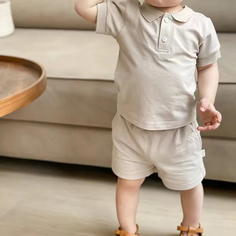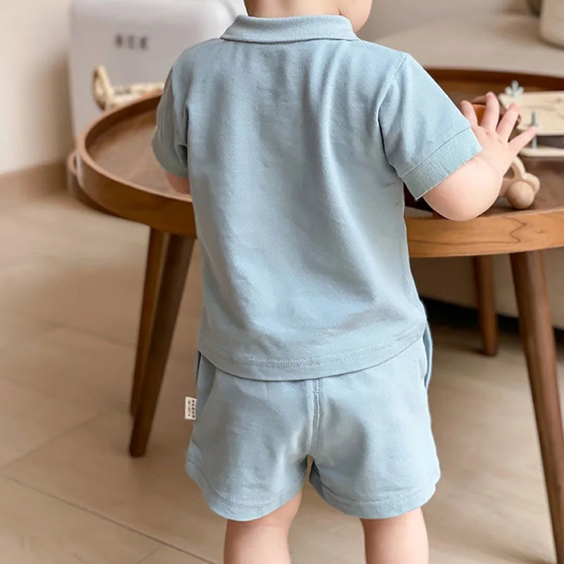 MQTIME - Fashion Baby Girl Boy Cotton Clothes Set Polo Tshirt+Shorts 2pcs Infant Toddler Child Clothing Set Summer Baby Clothes 1-5Y