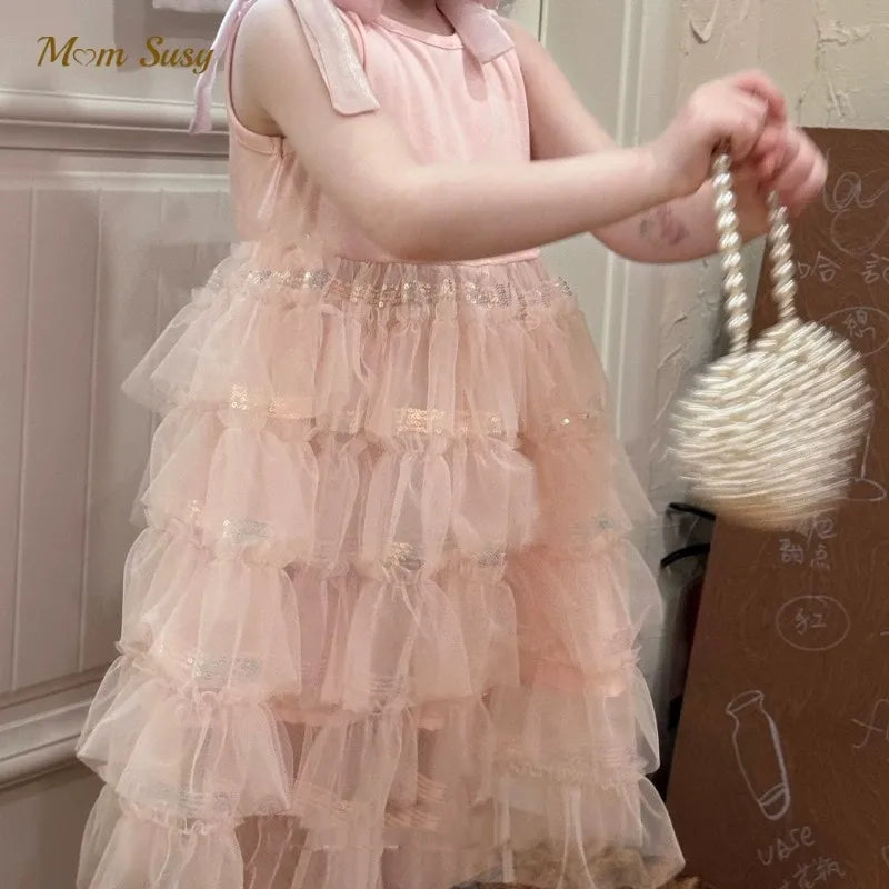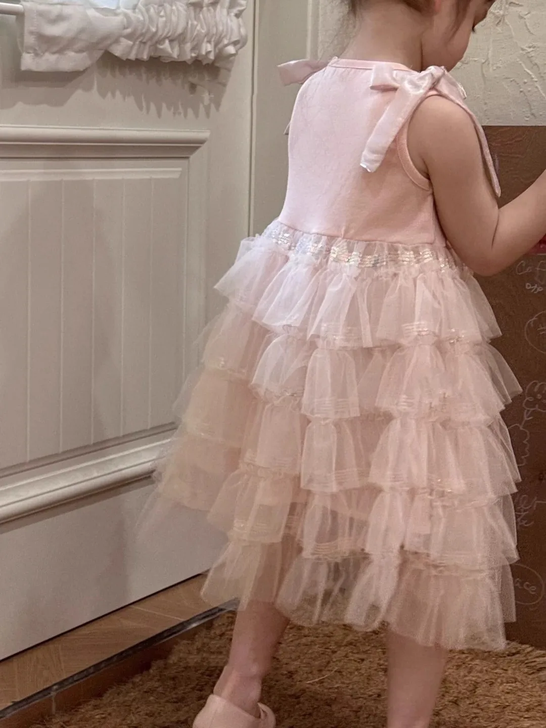 MQTIME - Fashion Baby Girl Princess Bow Tutu Layered Dress Sleeveless Infant Toddler Child Tulle Vestido Party Birthday Baby Clothes 1-7Y