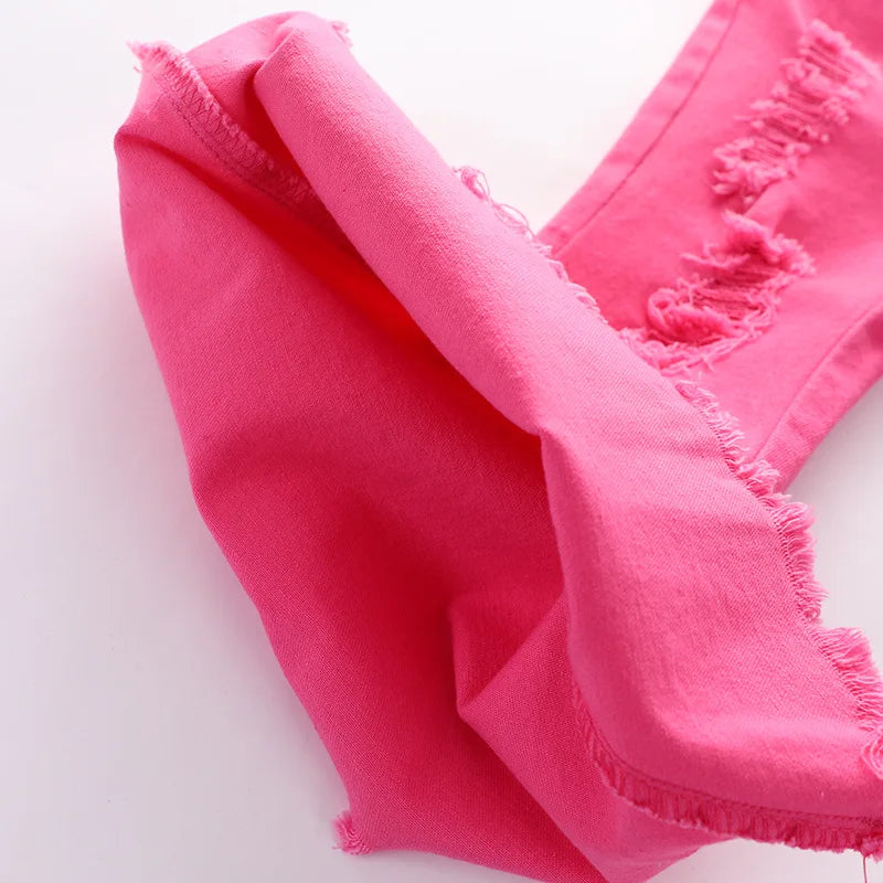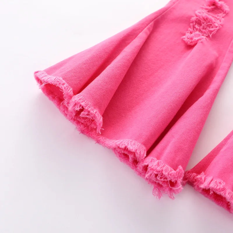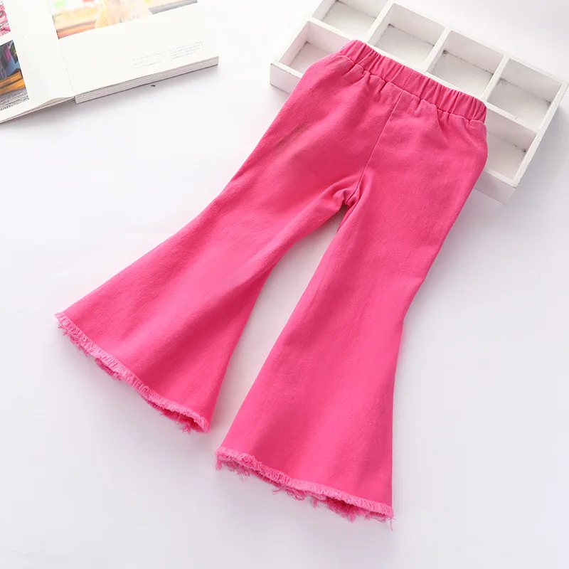 MQTIME - Fashion Baby Girl Princess Flares Jeans Pant Hot Pink Cotton Infant Toddler Child Denim Trousers Casual Baby Clothes 1-10Y