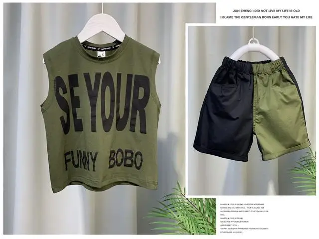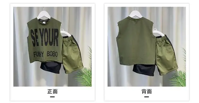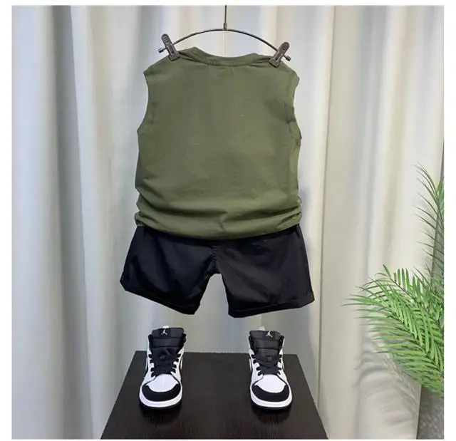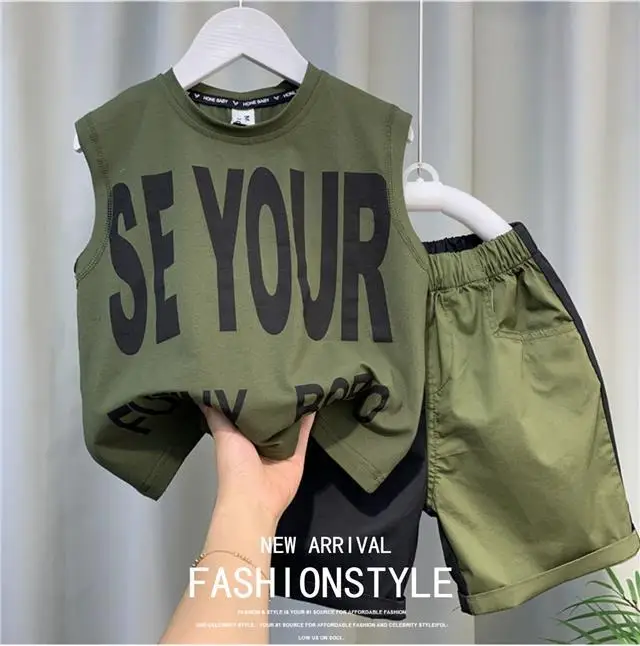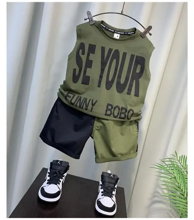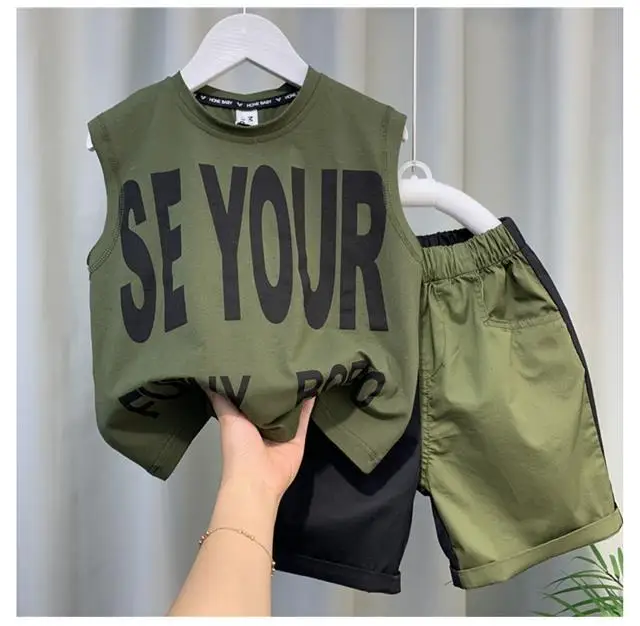 Mqtime Fashion Children's Teens Boy Tank Top +Patchwork Shorts Set 2023 New Baby Boys Summer Clothes Handsome Thin Sleeveless Outfits