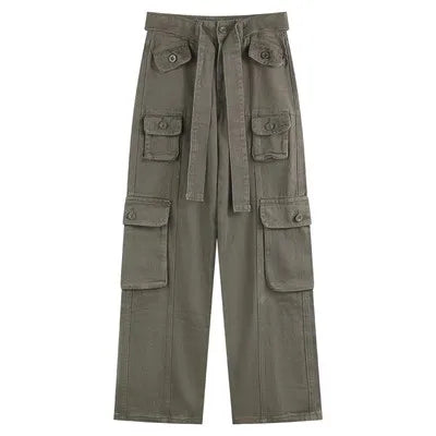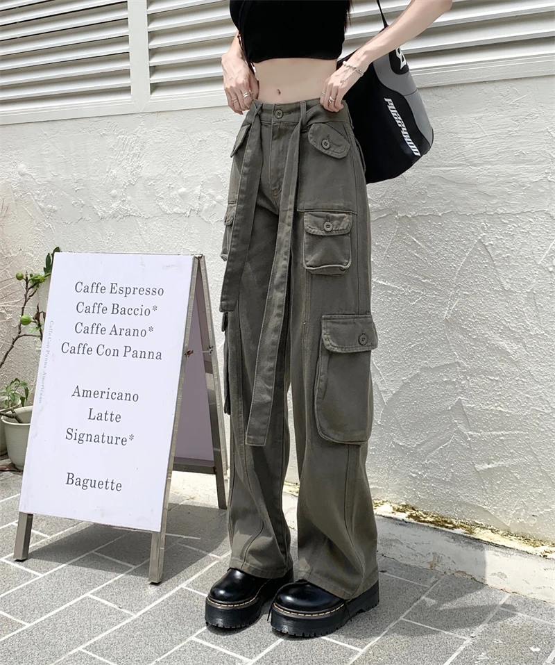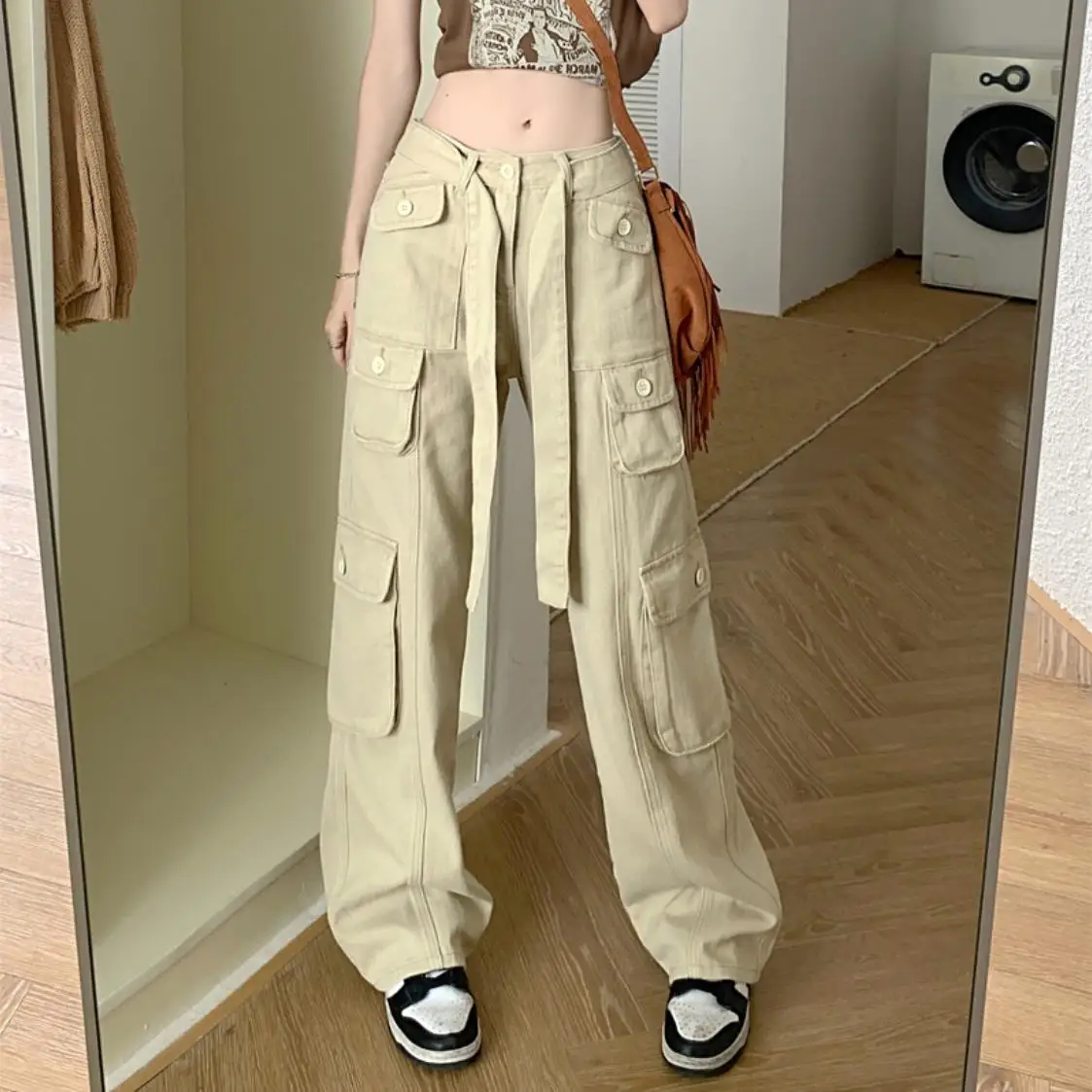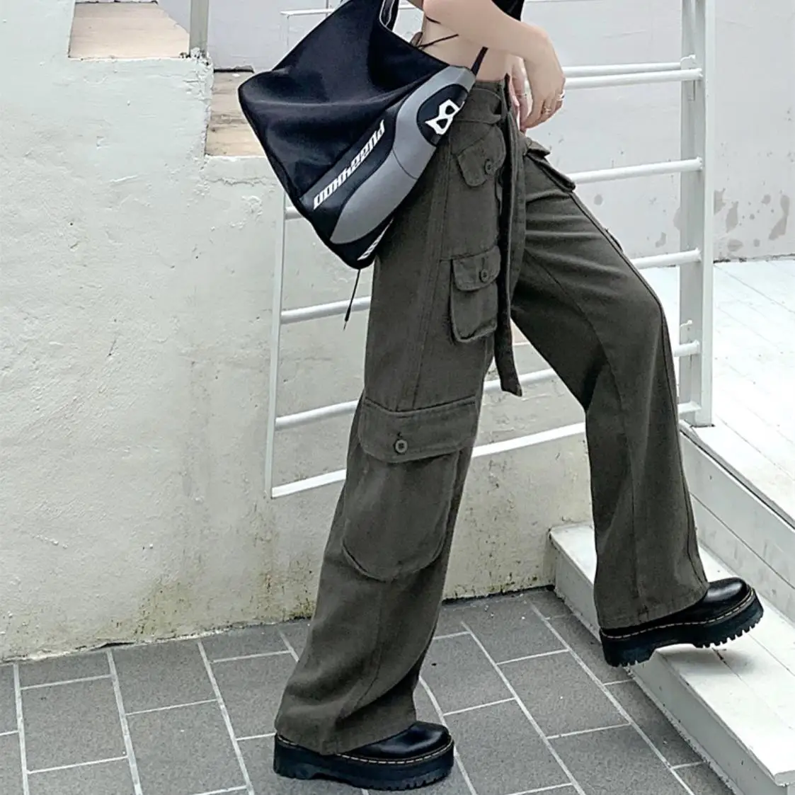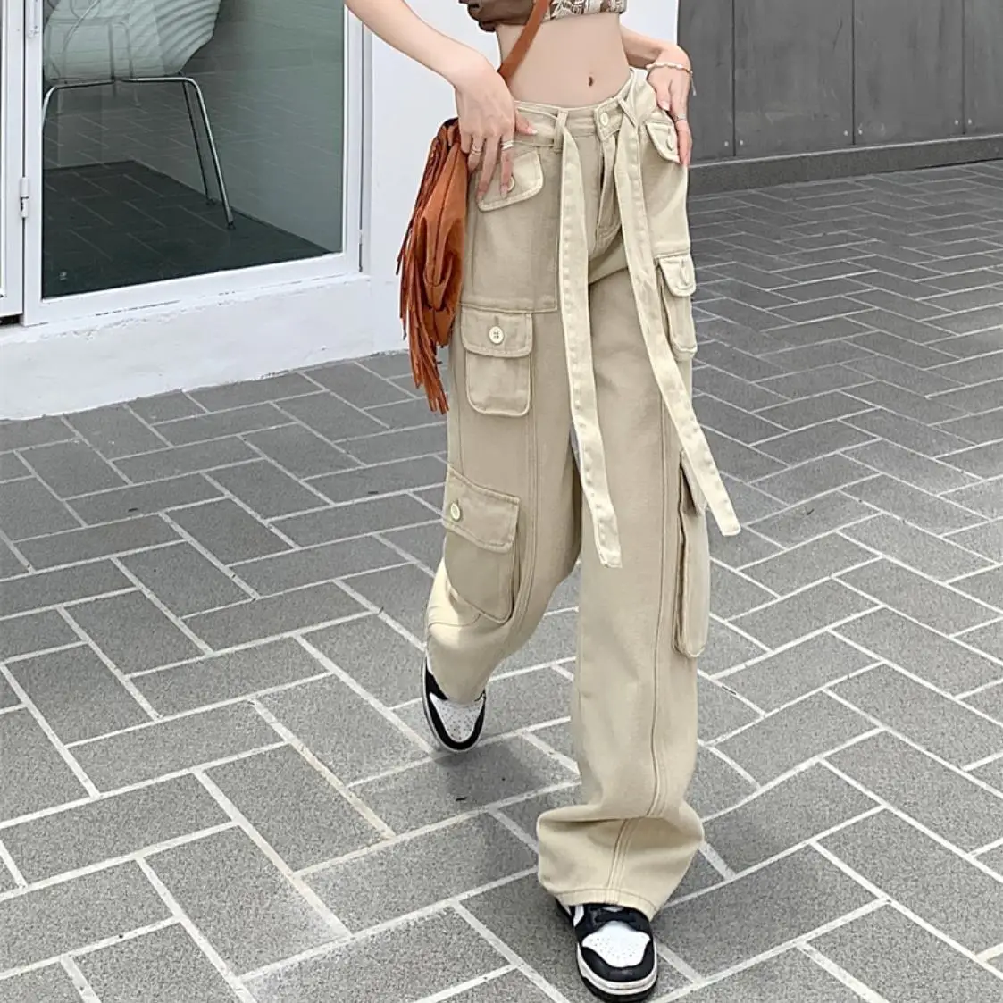 MQTIME - Fashion Female Long Pants Casual Pockets Safari Wide-leg Pants Autumn High-waisted Straight Hip-hop Streetwear Cool Trousers