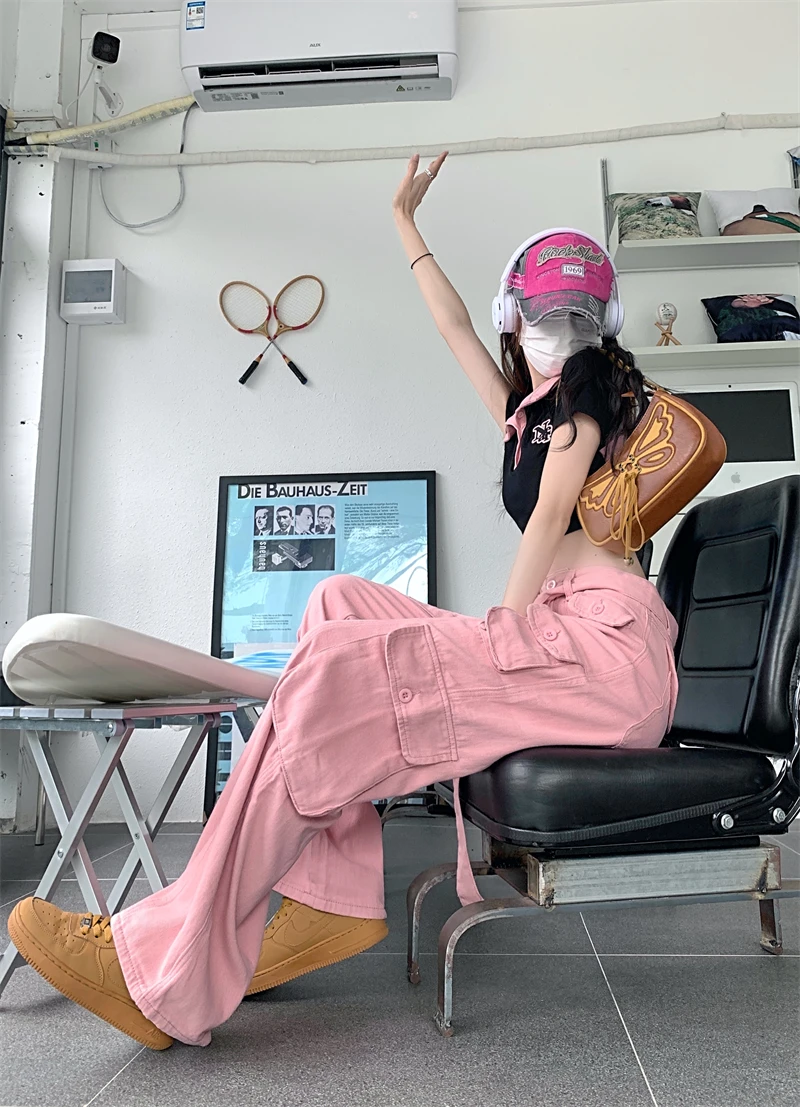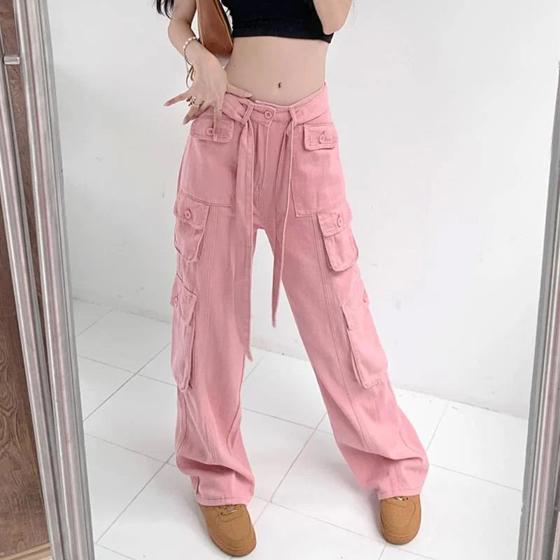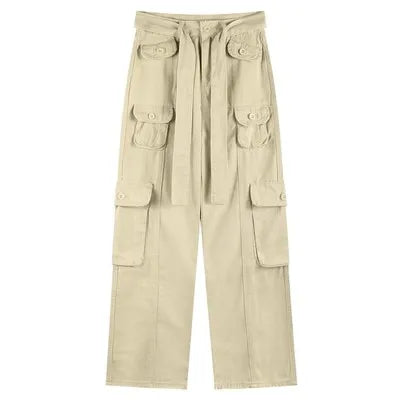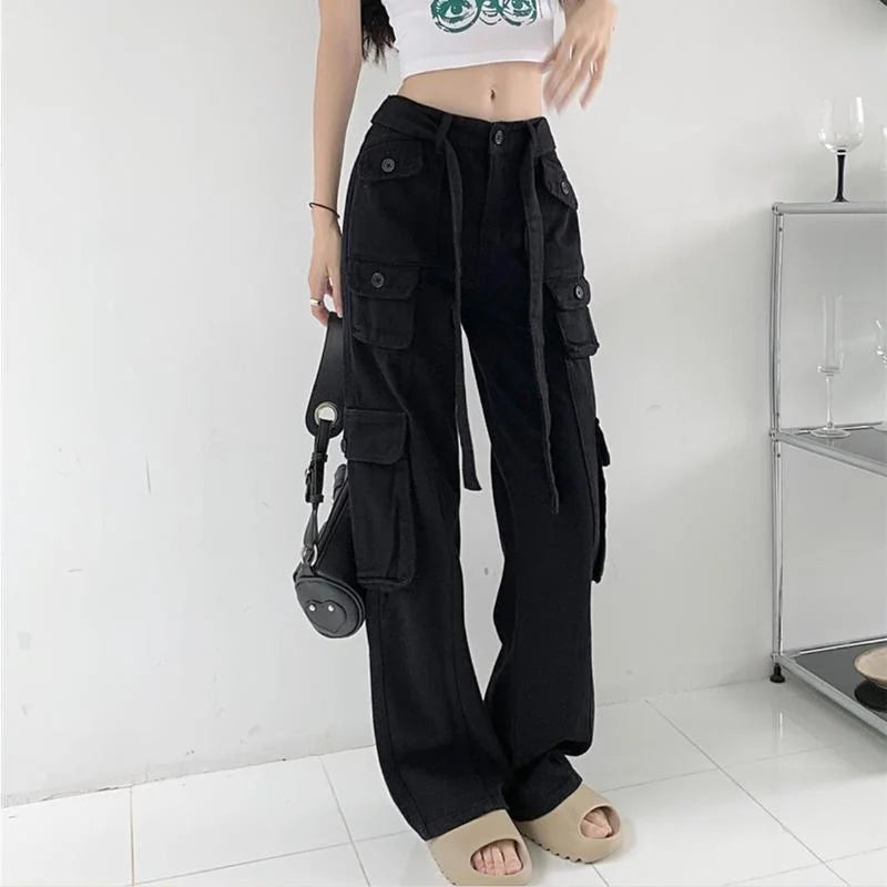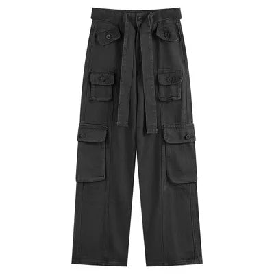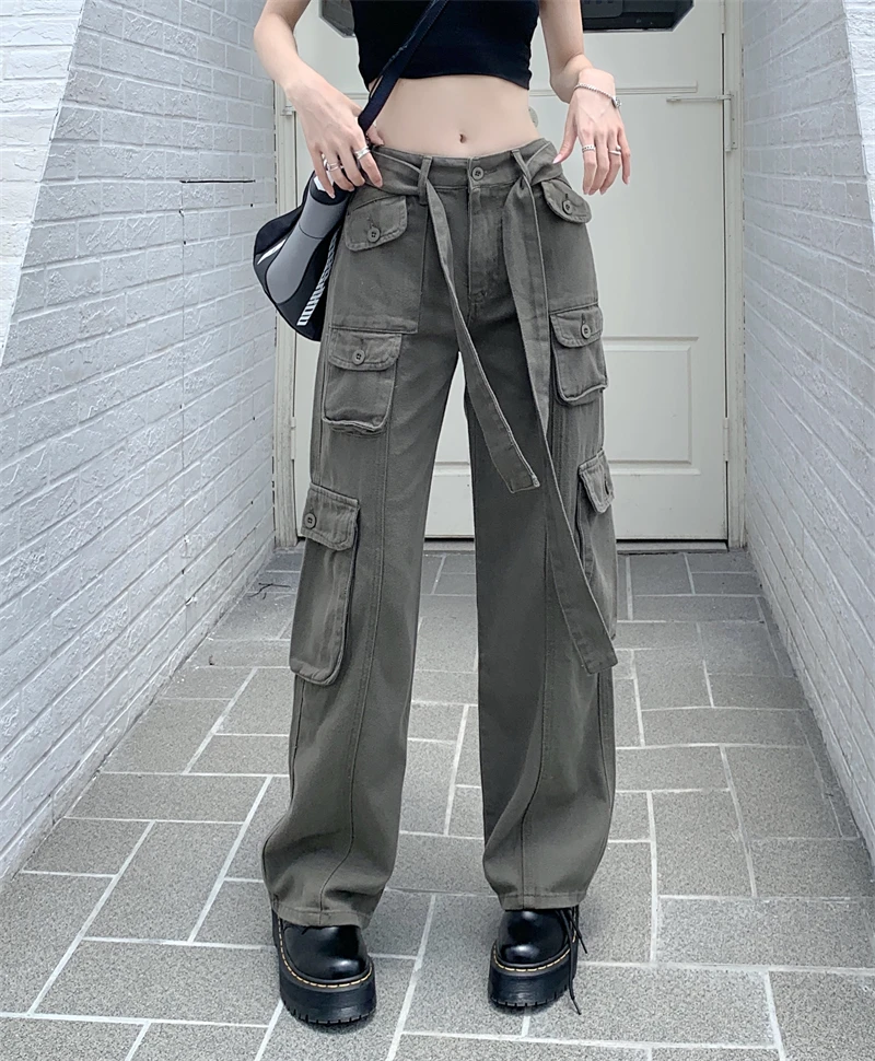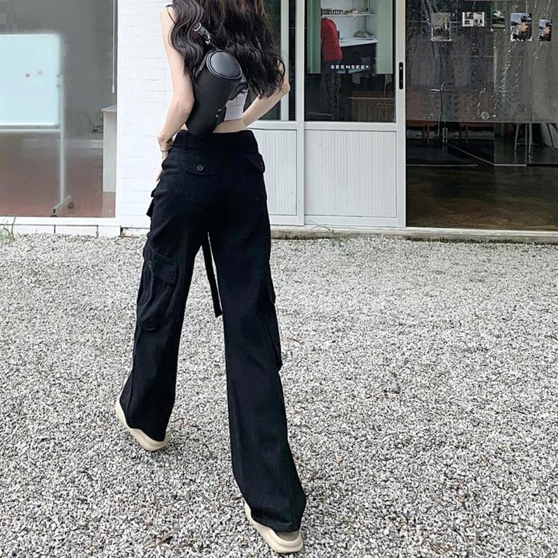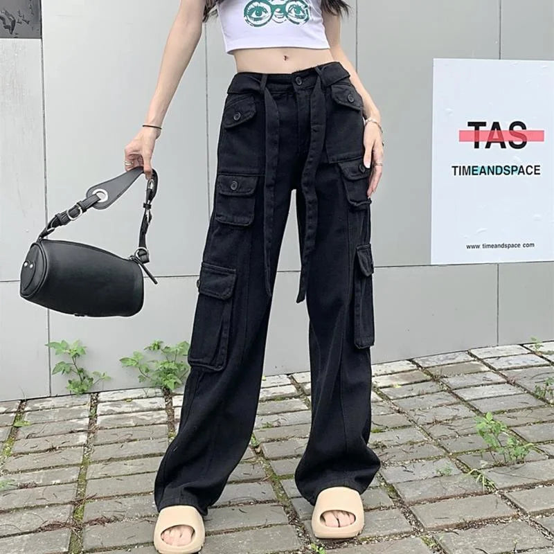 MQTIME - Fashion Female Long Pants Casual Pockets Safari Wide-leg Pants Autumn High-waisted Straight Hip-hop Streetwear Cool Trousers