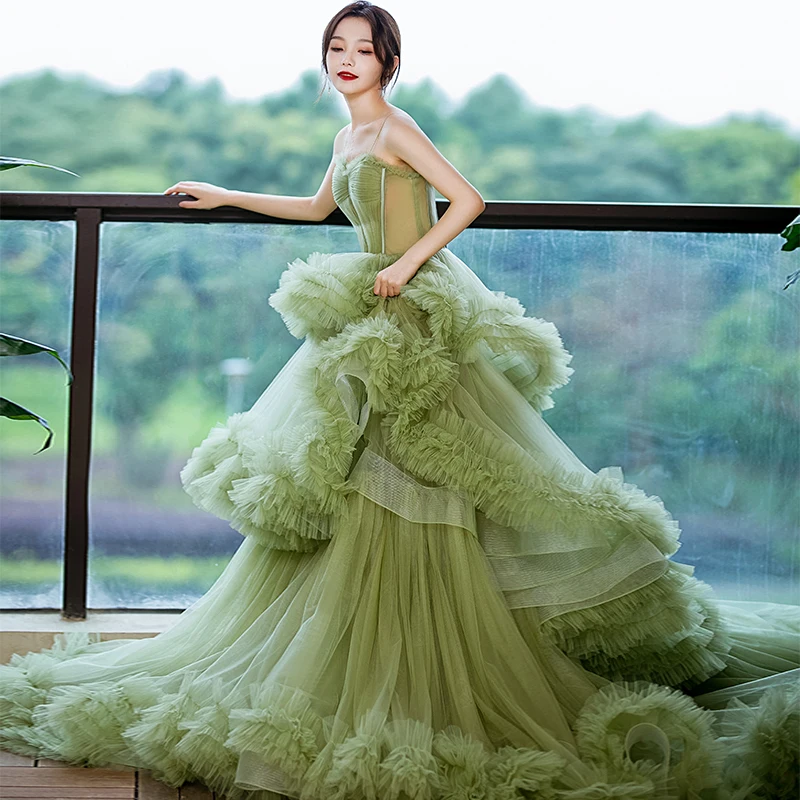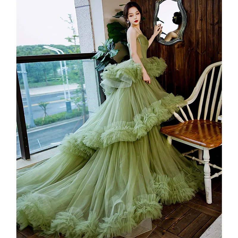MQTIME - Fashion Green Spaghetti Straps Women Wedding Dresses Court Train Bridal Gowns Formal Occasion Vestido De Noiva robe de mariée