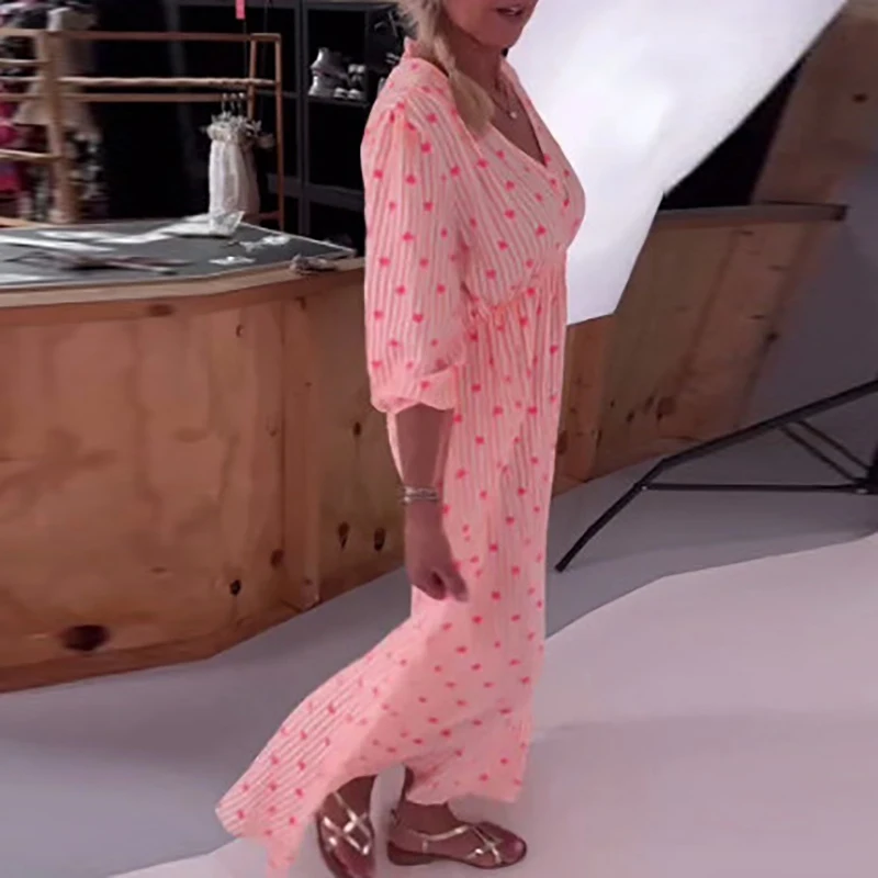 MQTIME - Fashion Heart-shaped Print Party Dress Sweet Girl Loose Lantern Sleeve Pleated Evening Dress Casual Simple Women Commute Dress