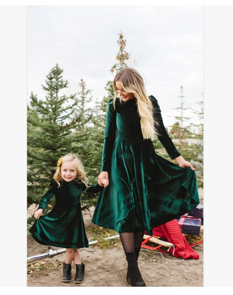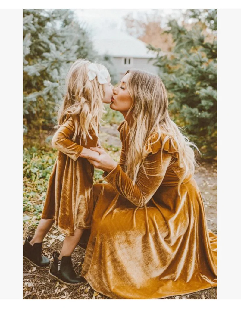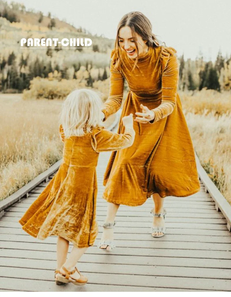 MQTIME - Fashion Mother Daughter Clothes Full Sleeve Mommy And Me Dresses Clothes Family Matching Outfits Look Mom And Baby Girl Dress