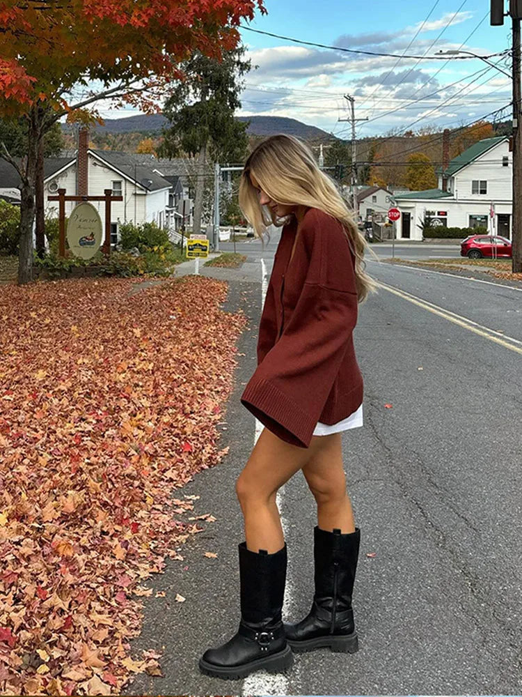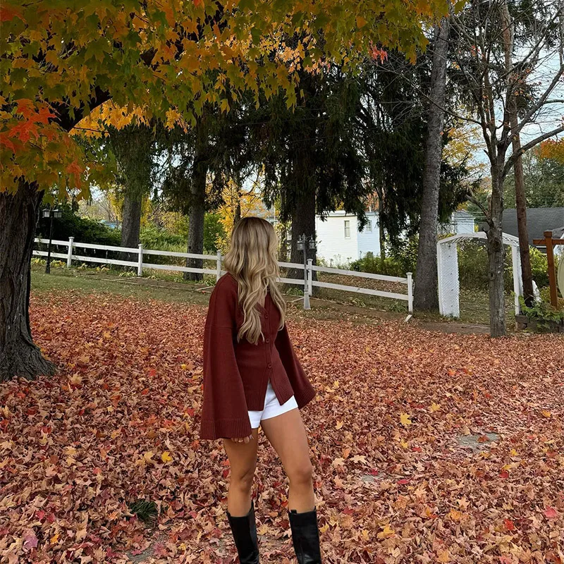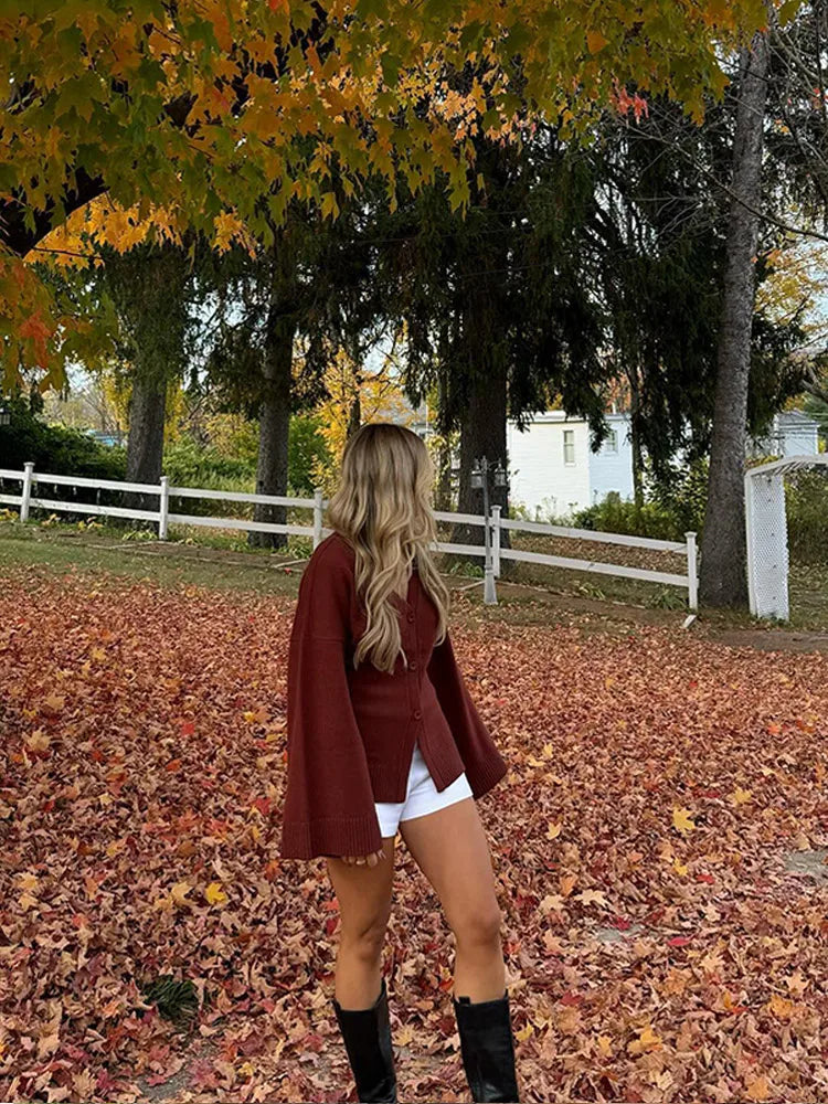 MQTIME - Fashion Solid Long Sleeved Sweater For Women Elegant Commute V-neck Single Breasted Cardigan New Chic Versatile Lady Outerwears