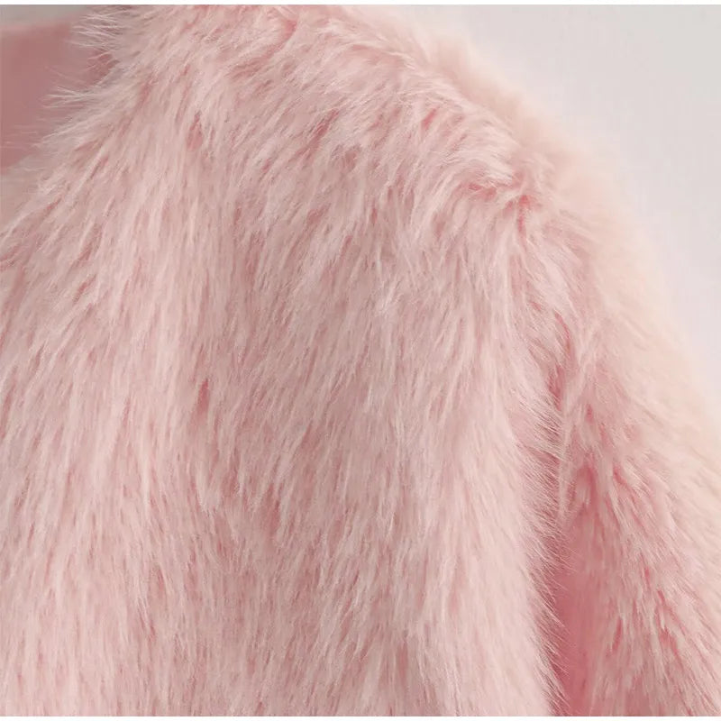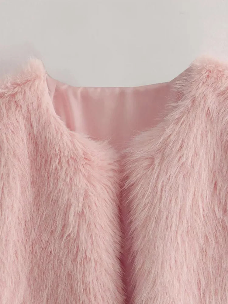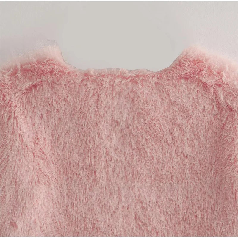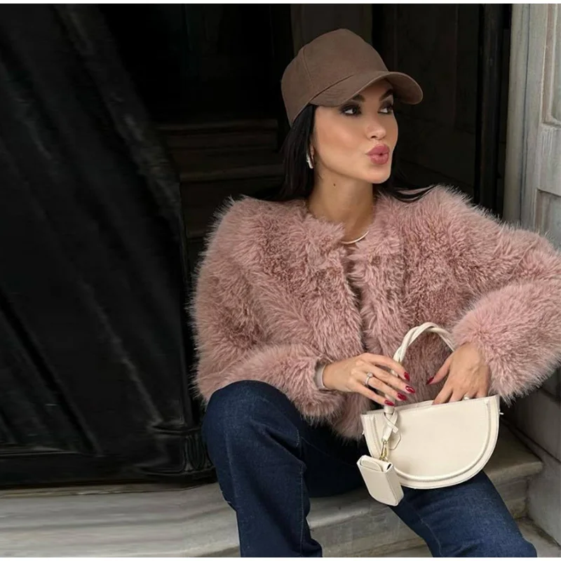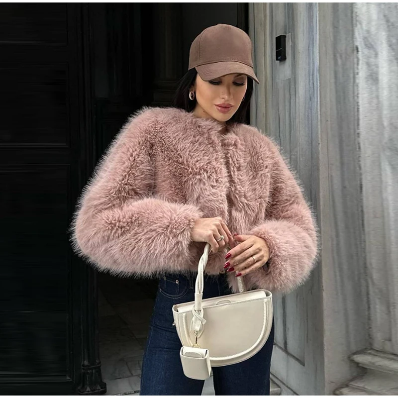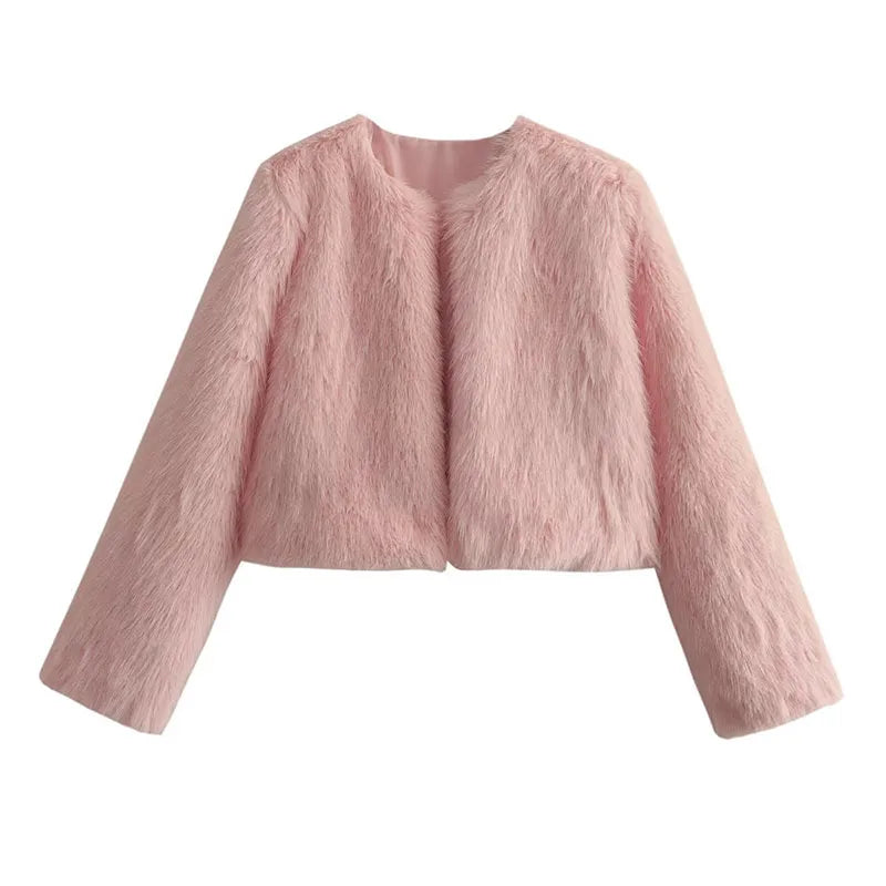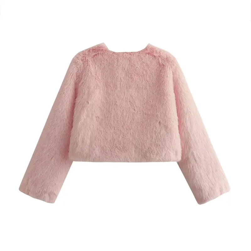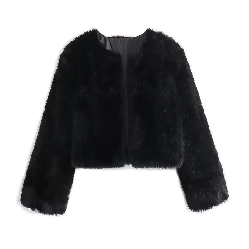 MQTIME - Faux Fur Short Coats Women Casual Solid Long Sleeved Fluffy Fox Fur Jacket Female Autumn Winter Fashion High Street Outwear