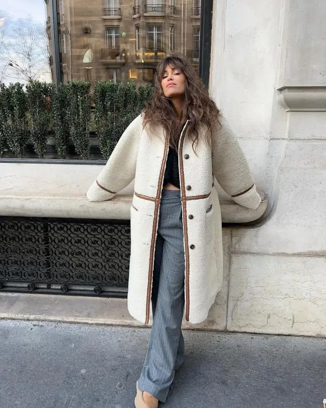 Mqtime Faux Woolen Loose Cotton Jackets For Women Winter Single Breasted Long Fleece Overcoat Female Thicken Warm Streetwear Coats