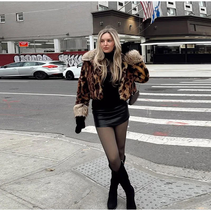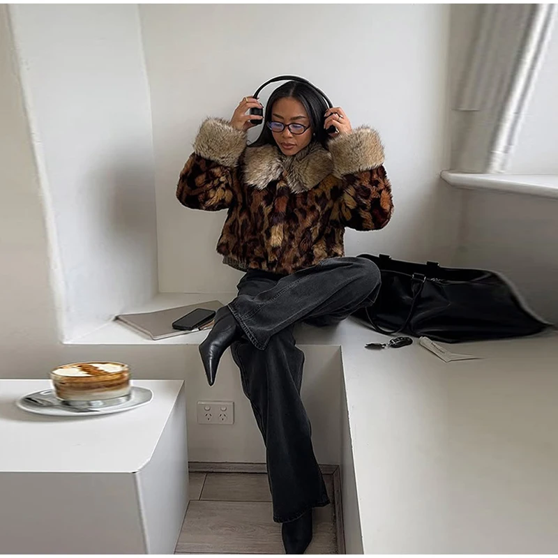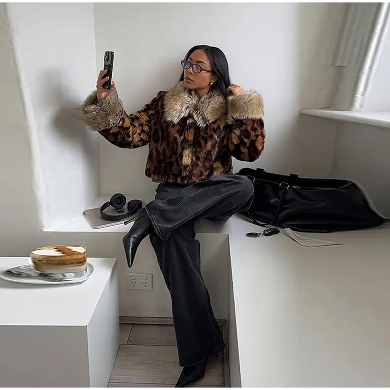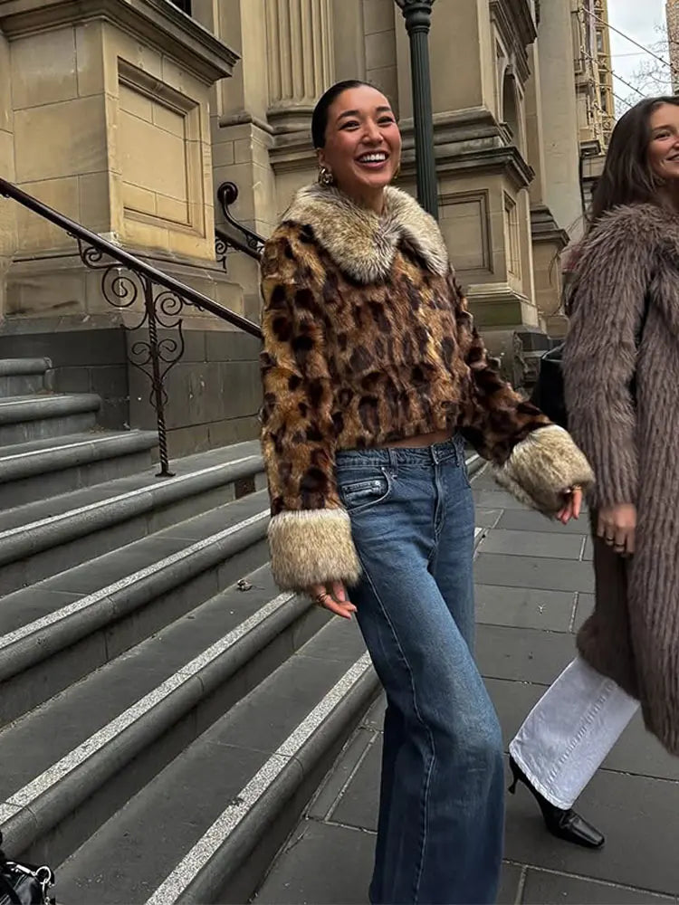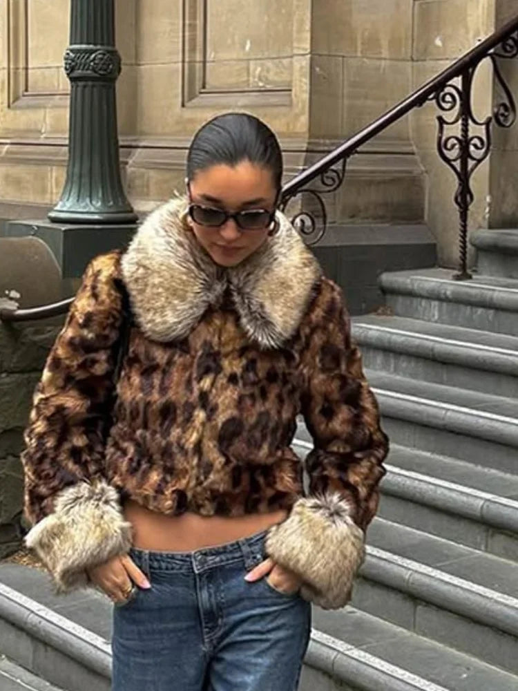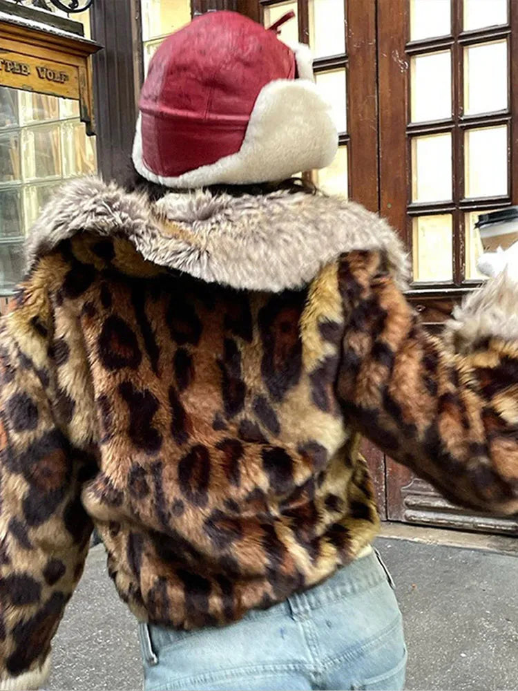 MQTIME - Female autumn Winter Vintage Leopard Printed Fur Coat Long Sleeves Lapel Loose Warm Retro Jacket Causal Street Coats 2025