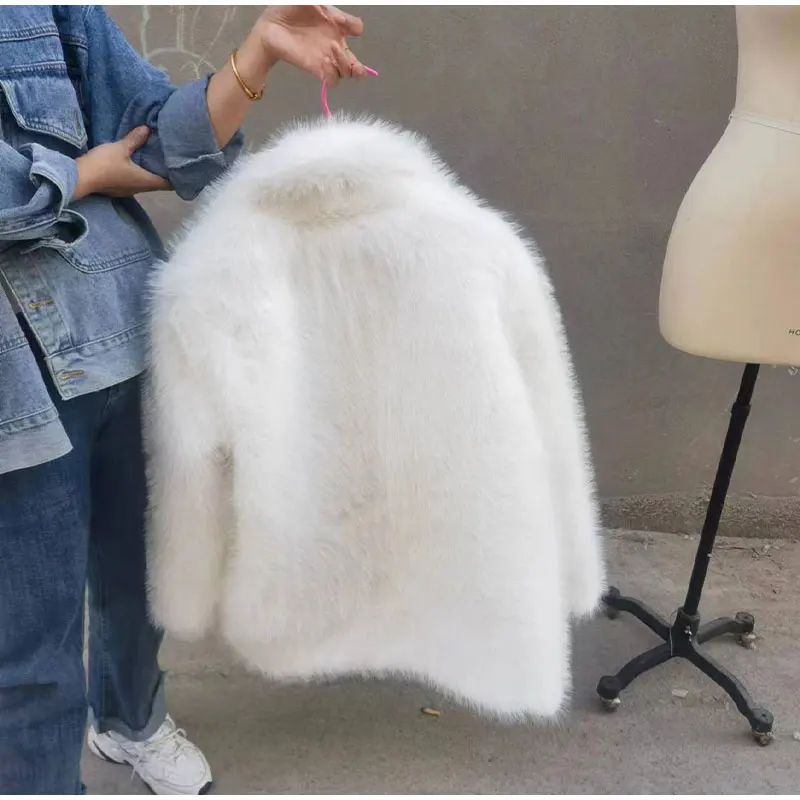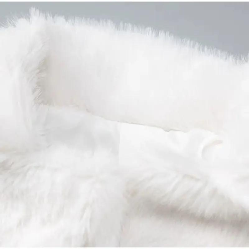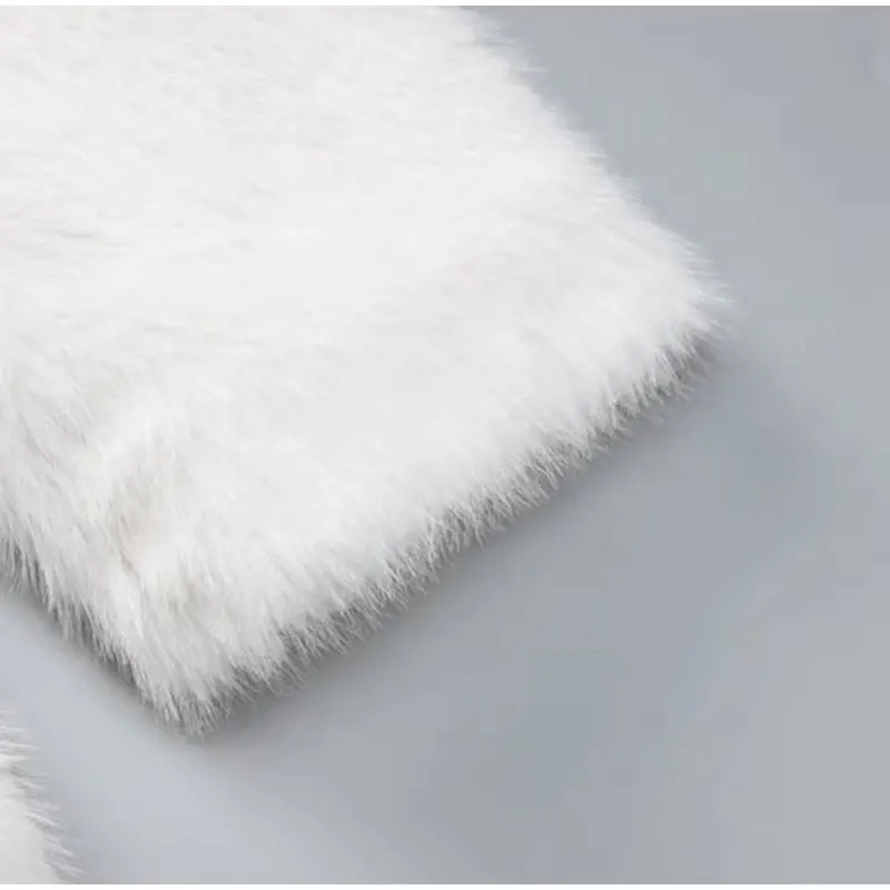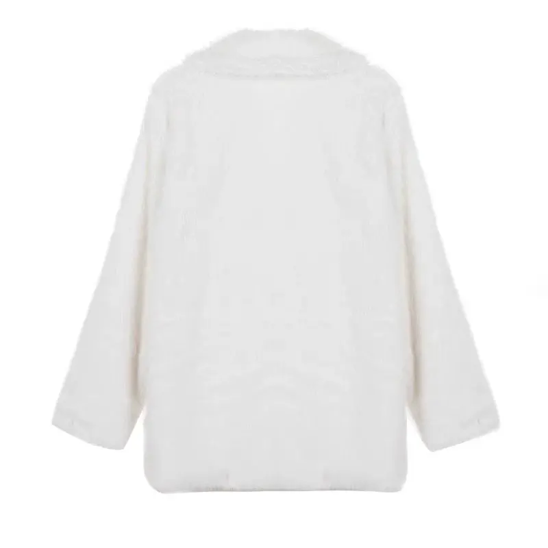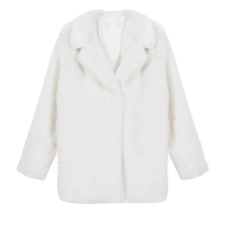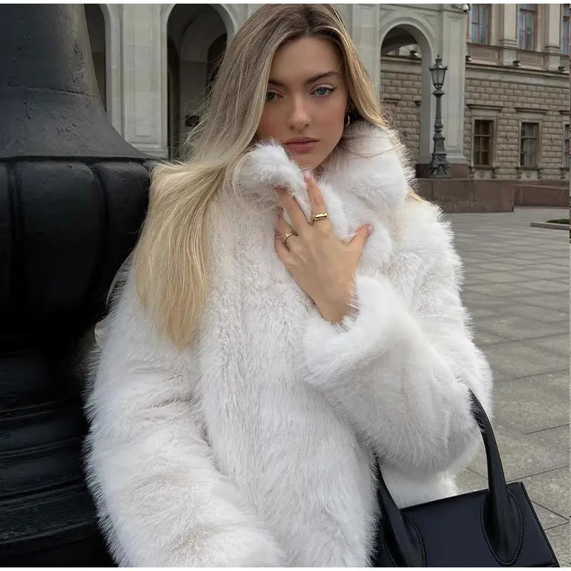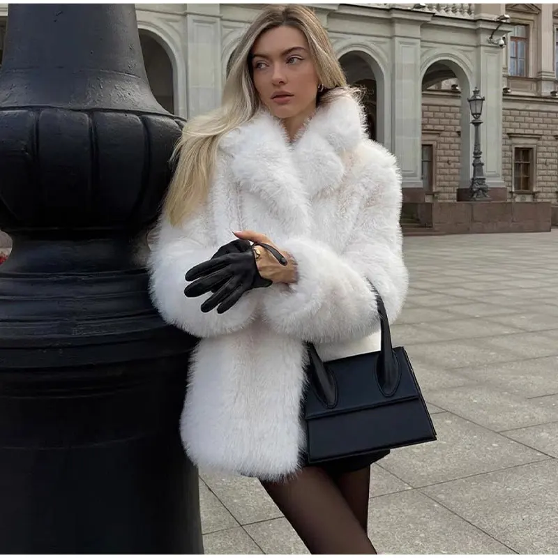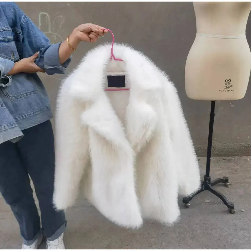Mqtime Female Cropped White Faux Fur Jacket Winter Fluffy Long Sleeve Lapel Collar Loose Warm Overcoats Lady Elegant High Street Coat