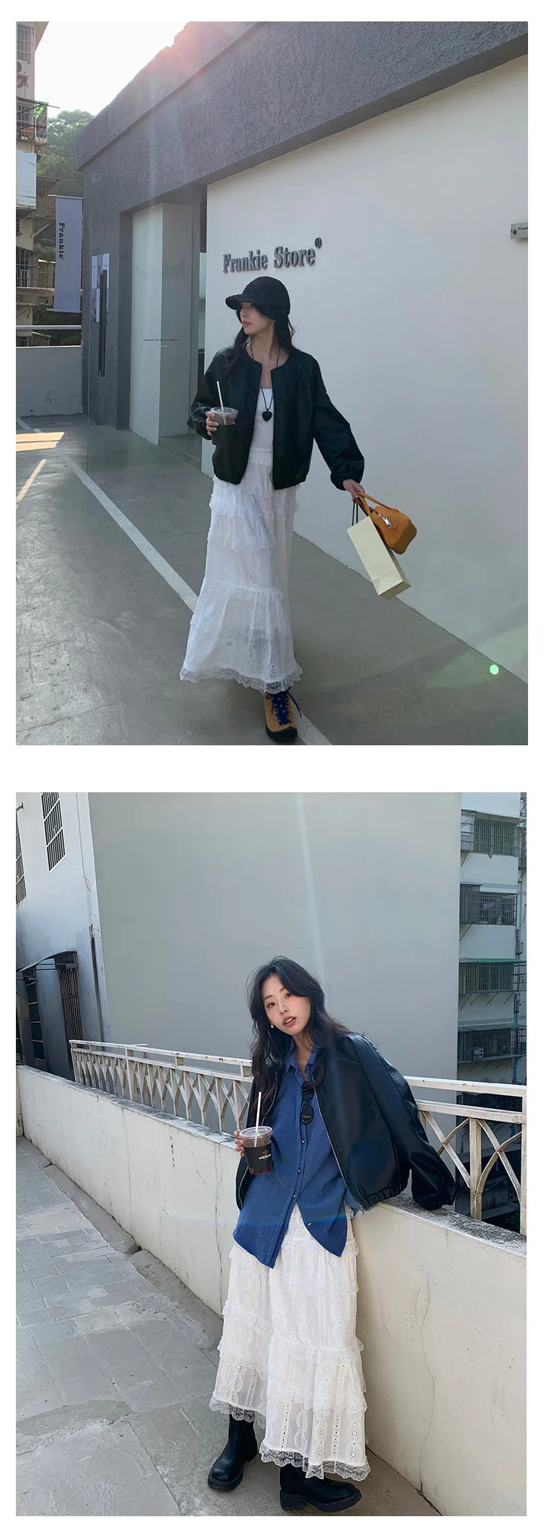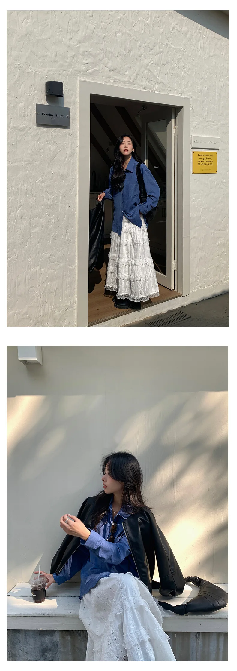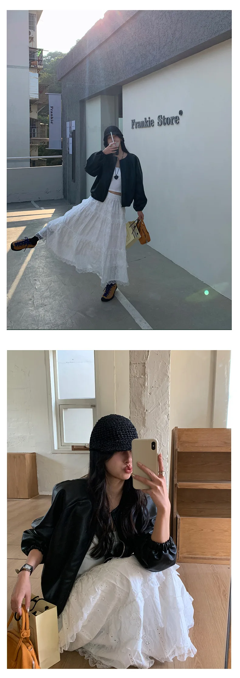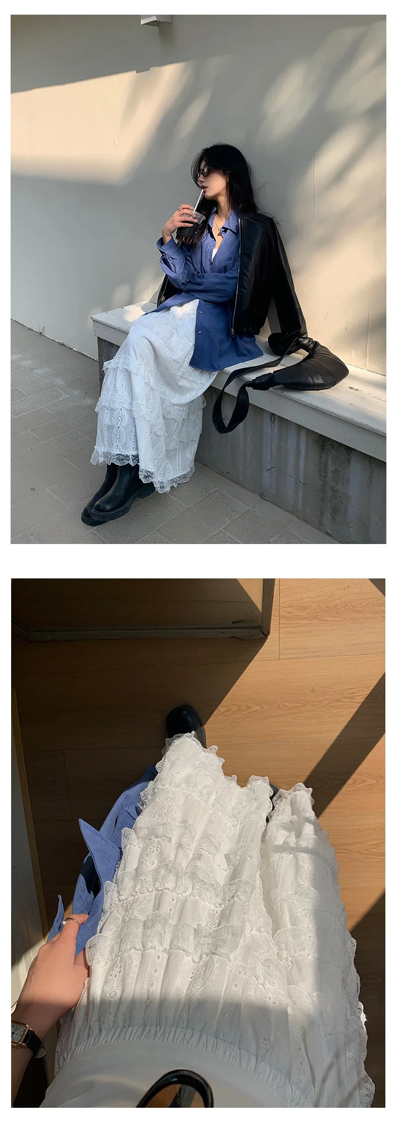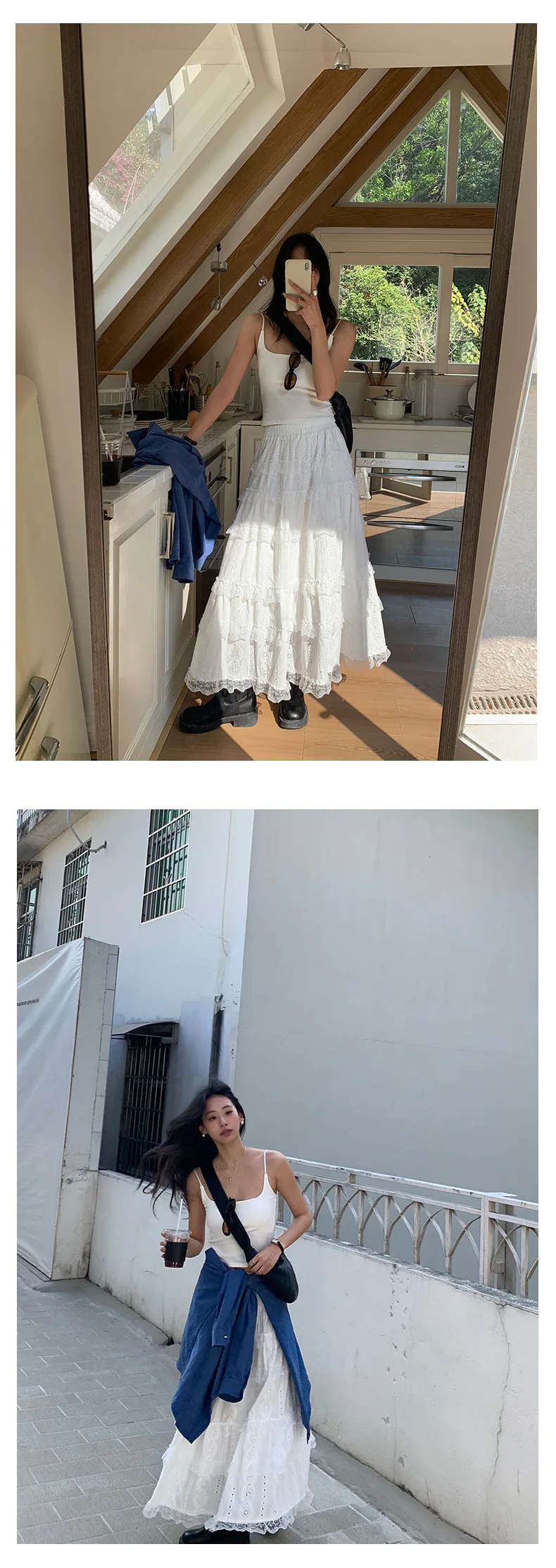 MQTIME - Femme Lace Skirts High Waist Layered Cake Skirts Korean Style Fashion Pleated Maxi Skirts Cotton Sweet White Vestidos