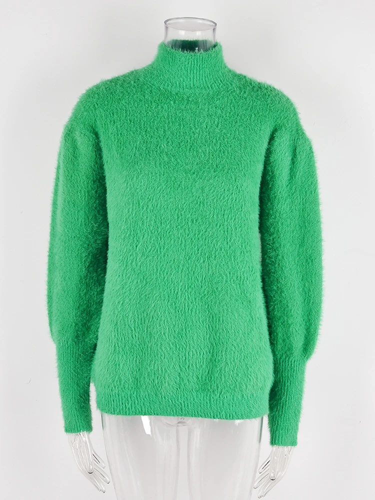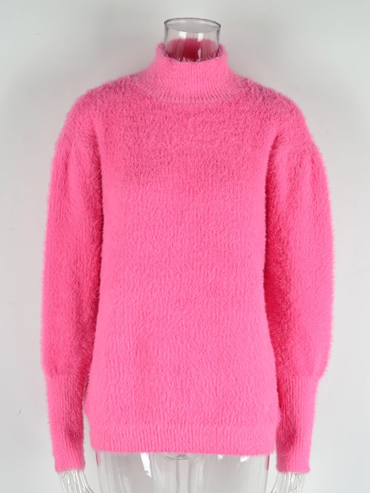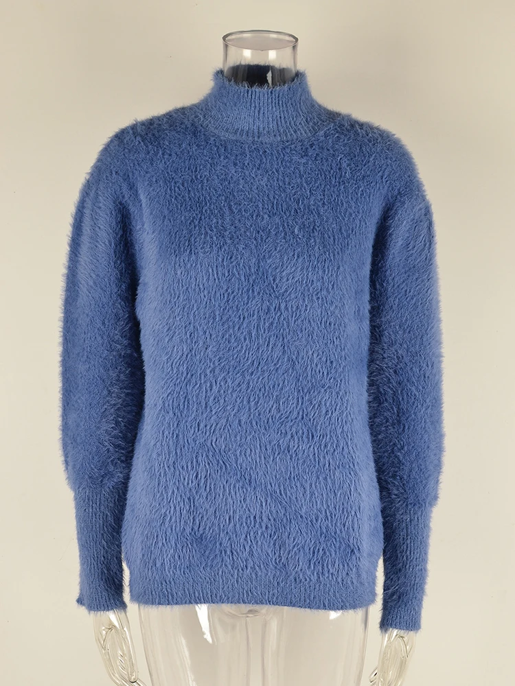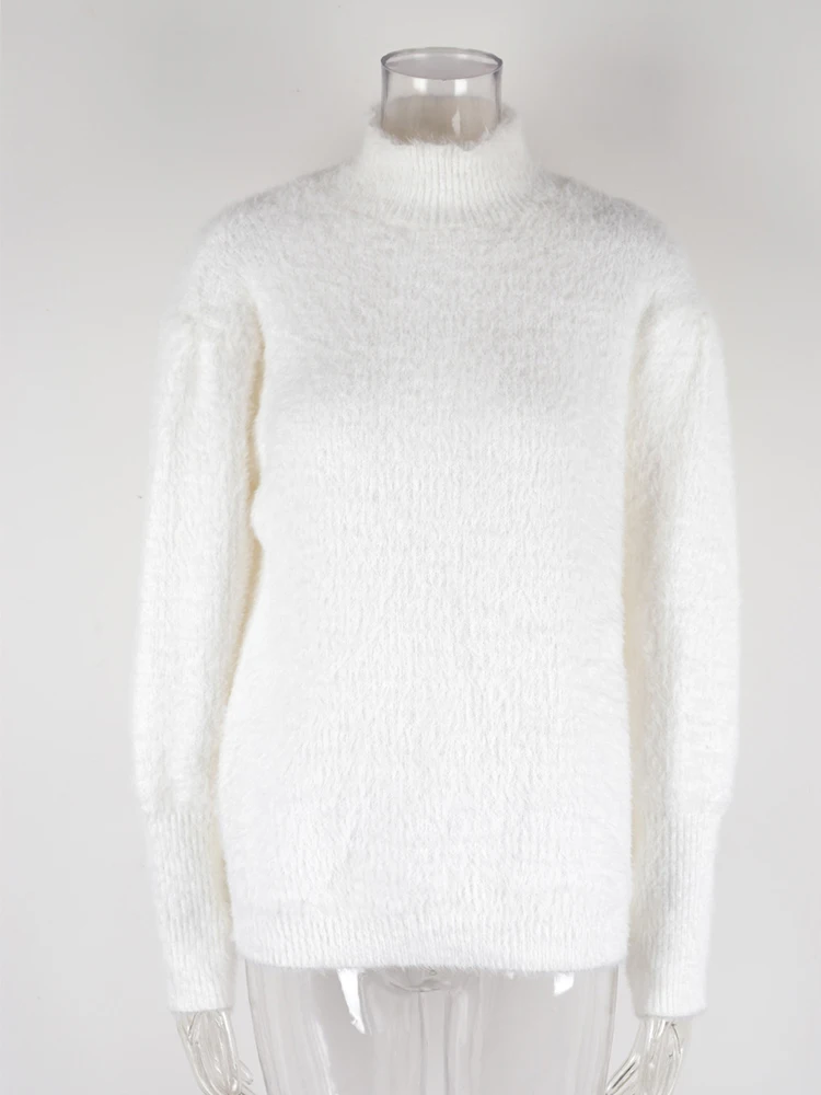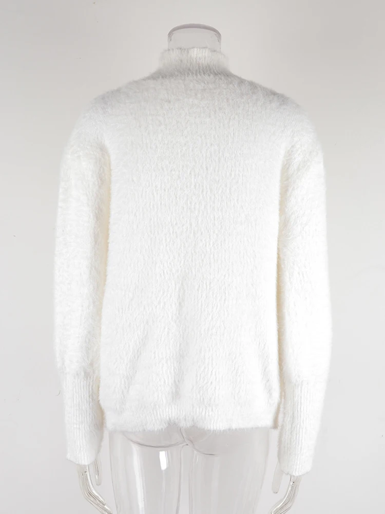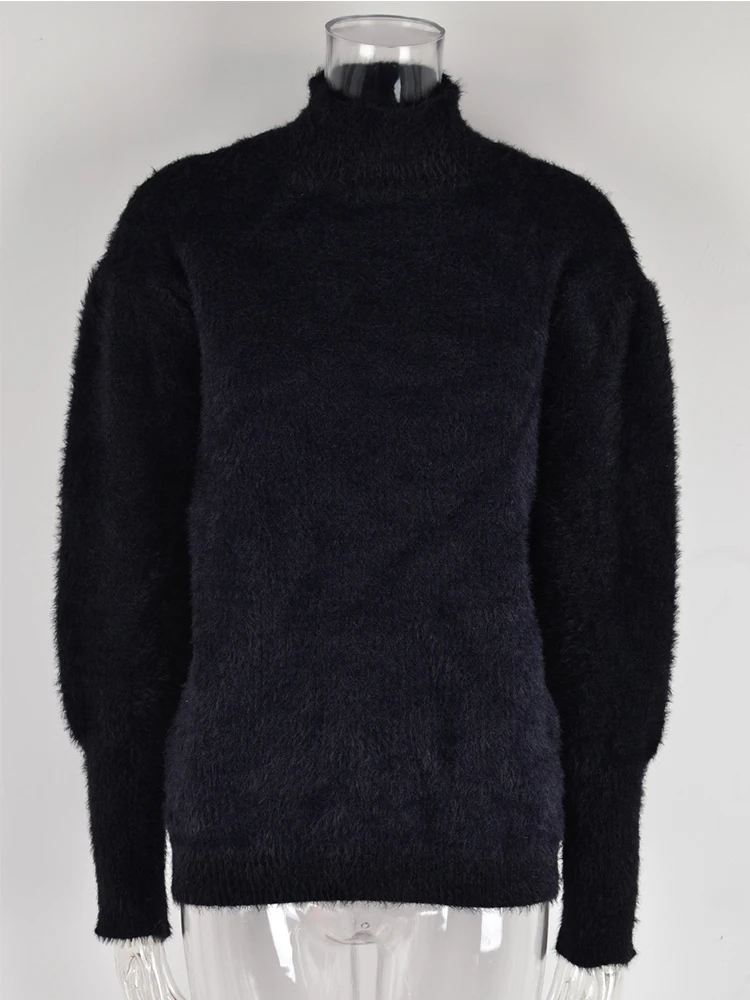 Mqtime Fluffy Warm Winter Sweater for Women Pullover Turtleneck White Pull Femme Basic Autumn Jersey Jumper Black Sweater