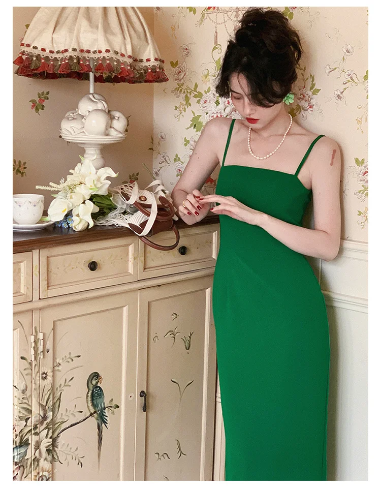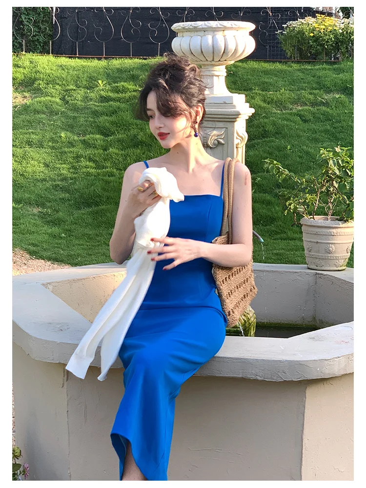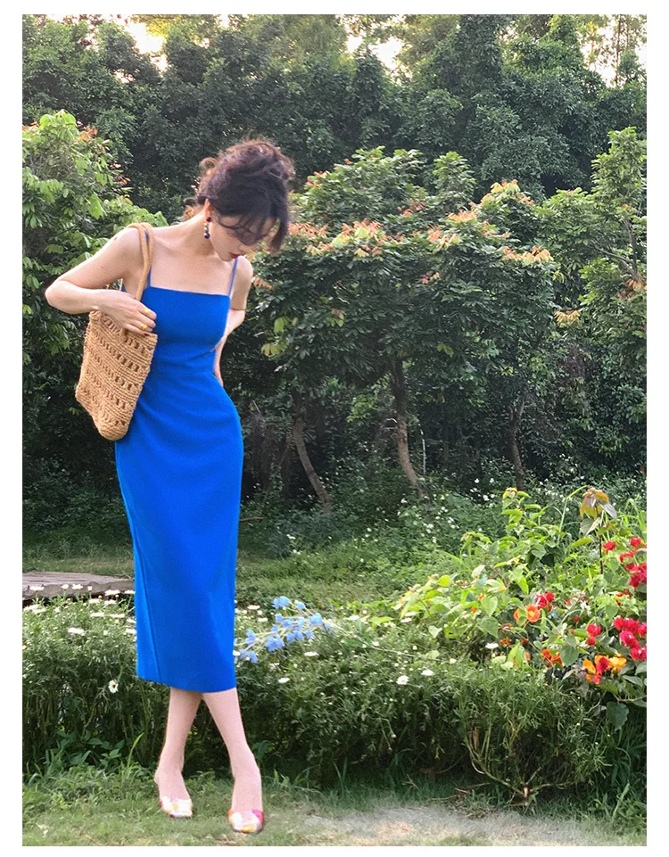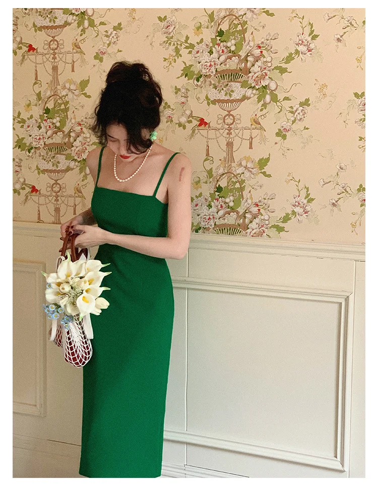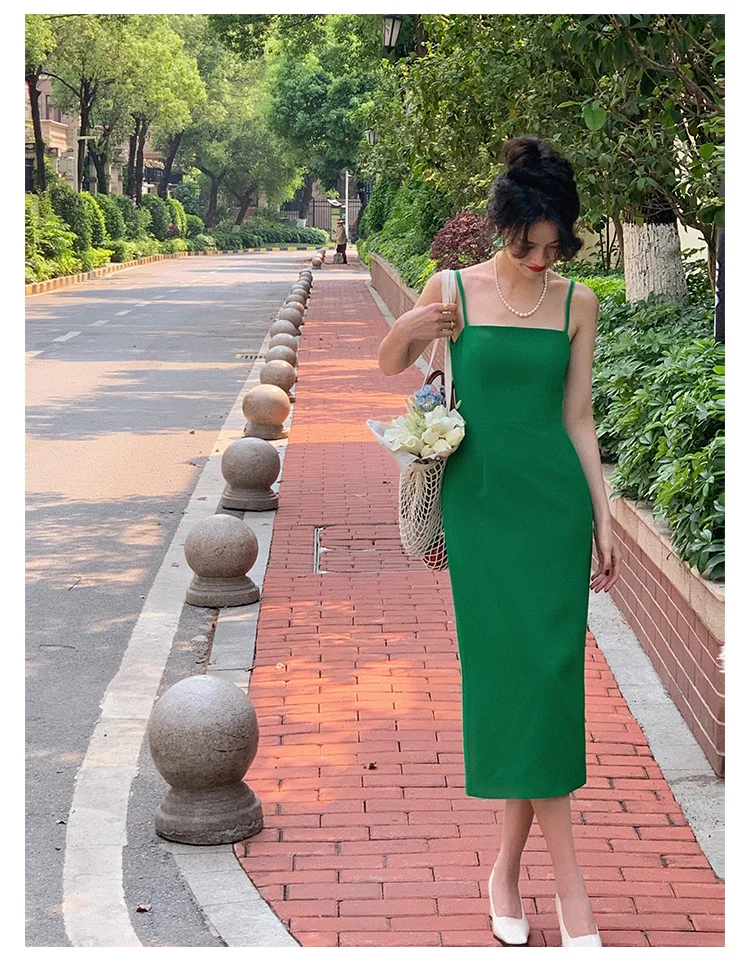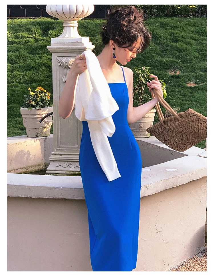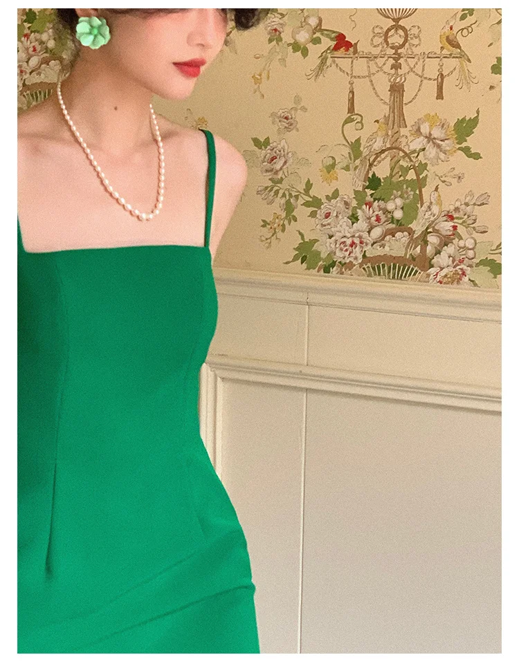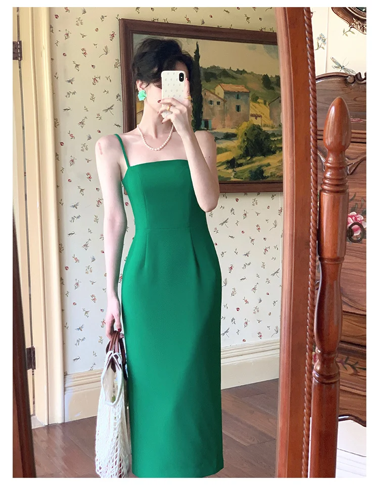 MQTIME - French 2024 Summer New Sexy Pure Desire Sling Dress One Line Neck High Waist Wrap Hip Skirt for Women