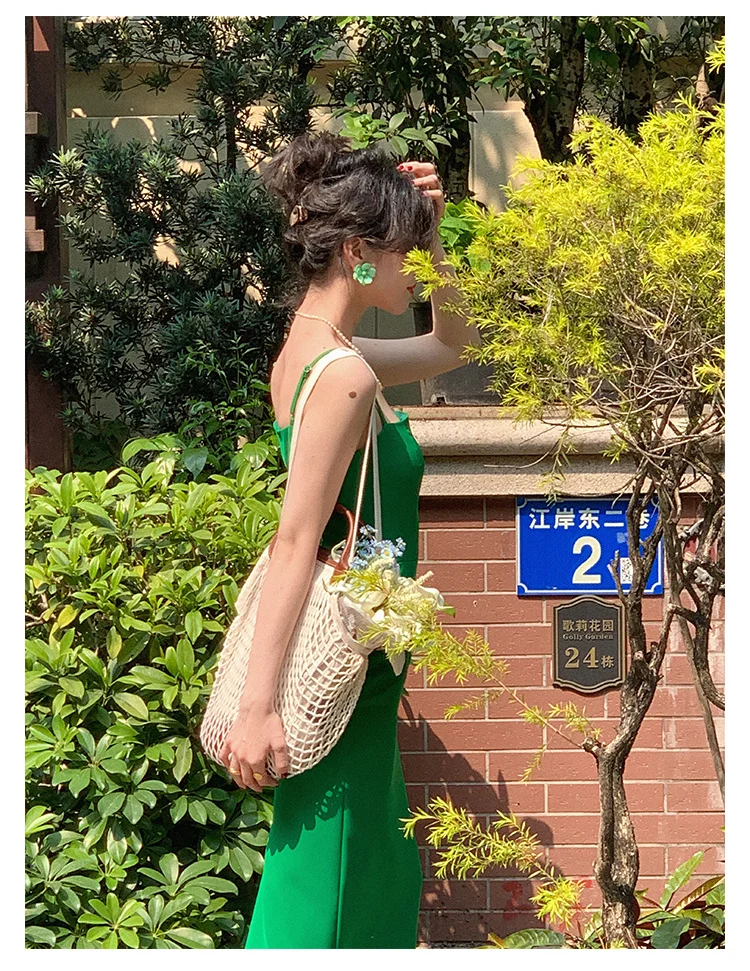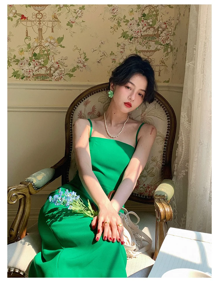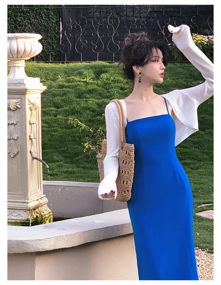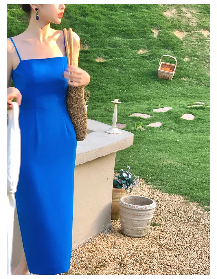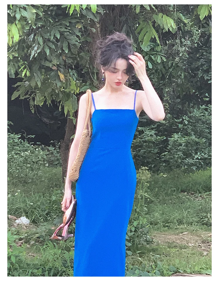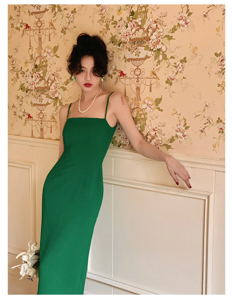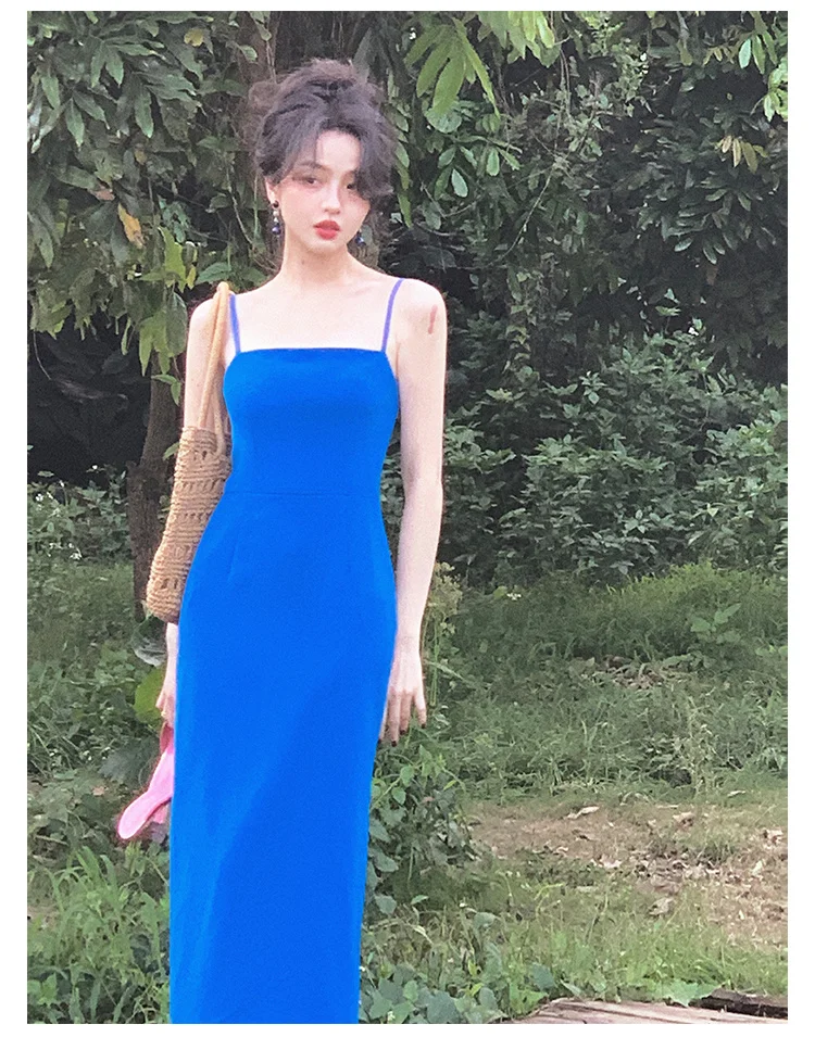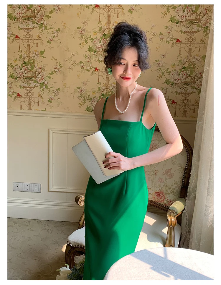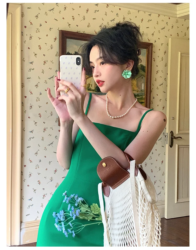 MQTIME - French 2024 Summer New Sexy Pure Desire Sling Dress One Line Neck High Waist Wrap Hip Skirt for Women