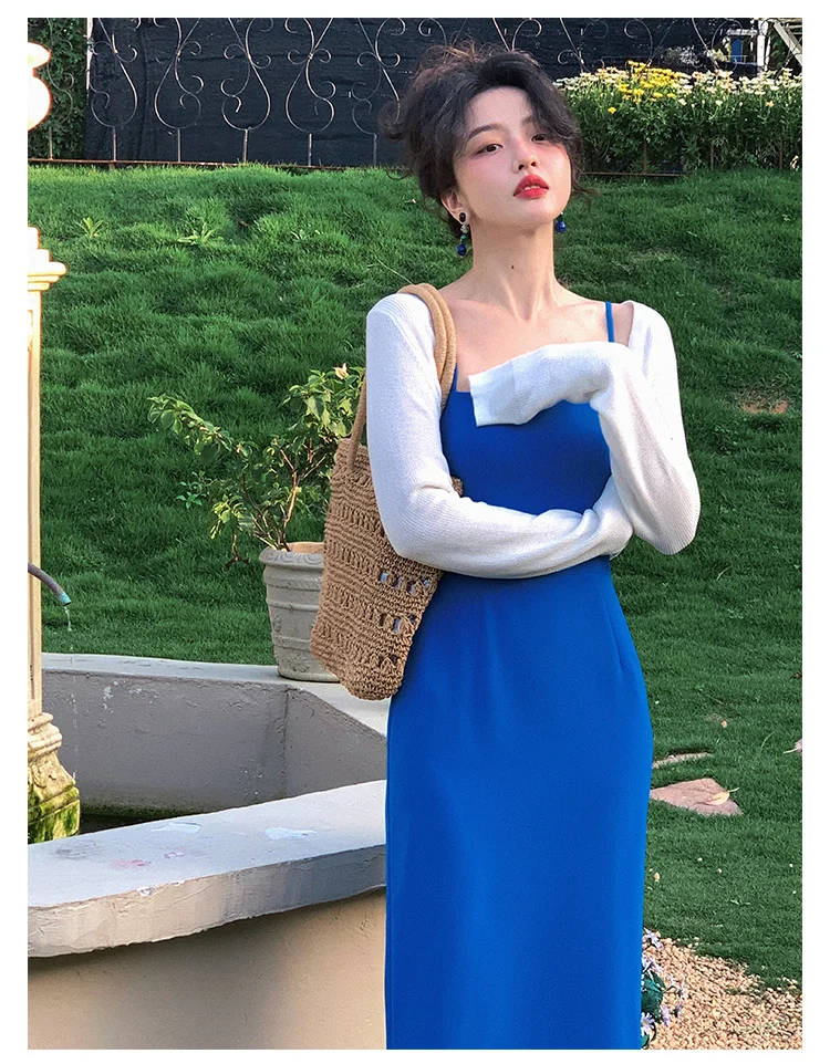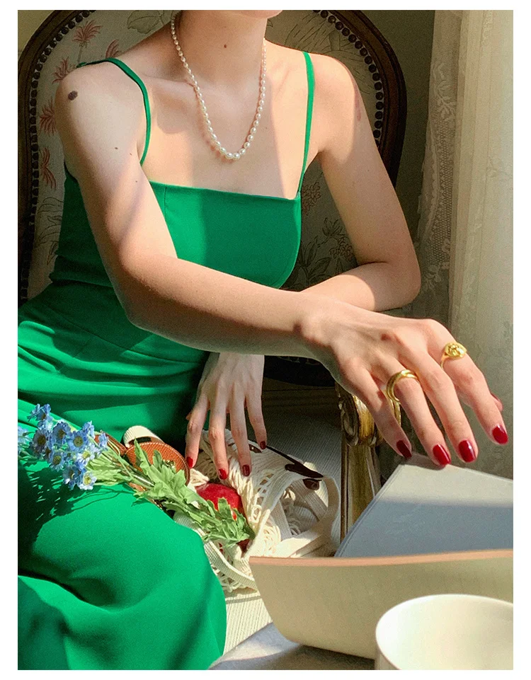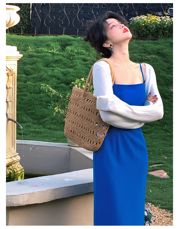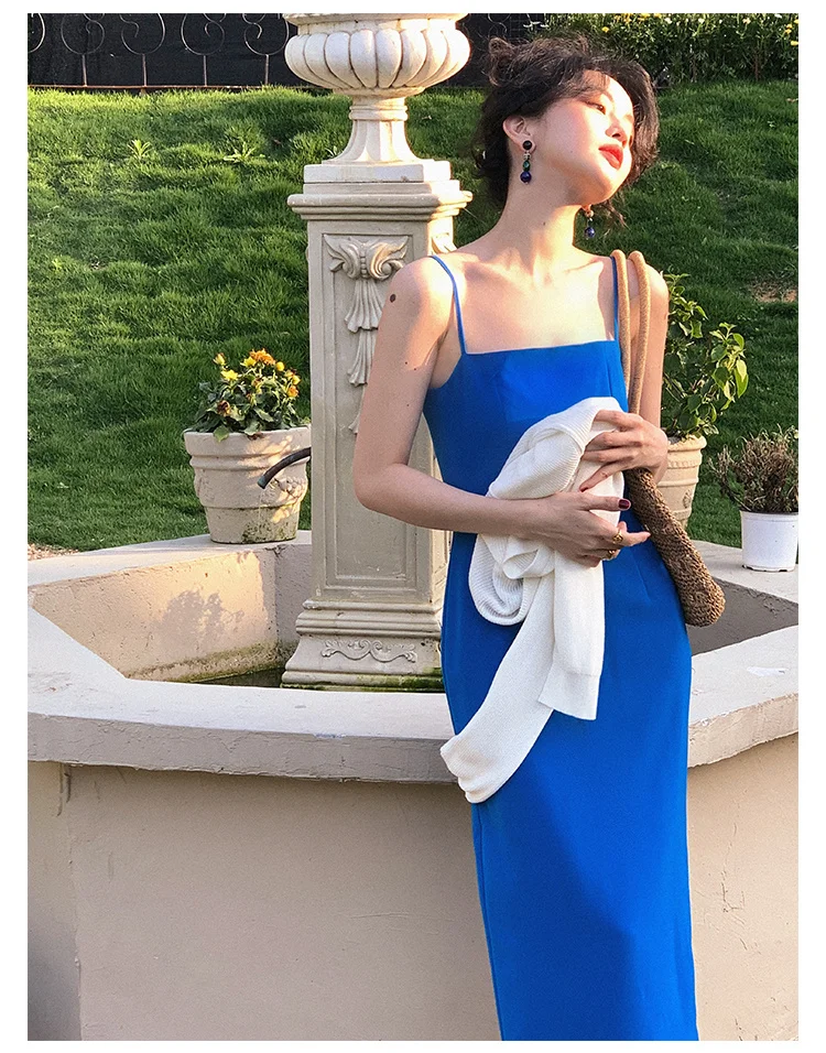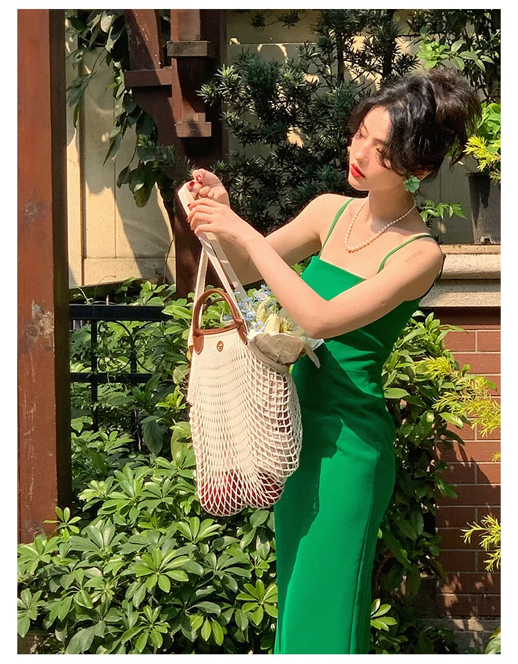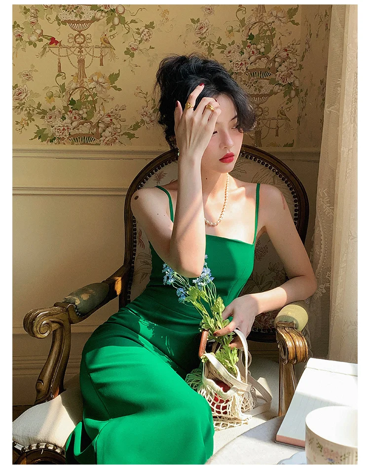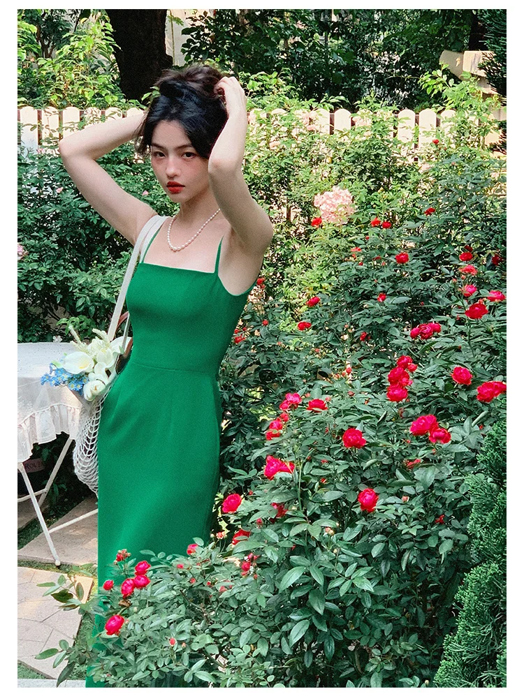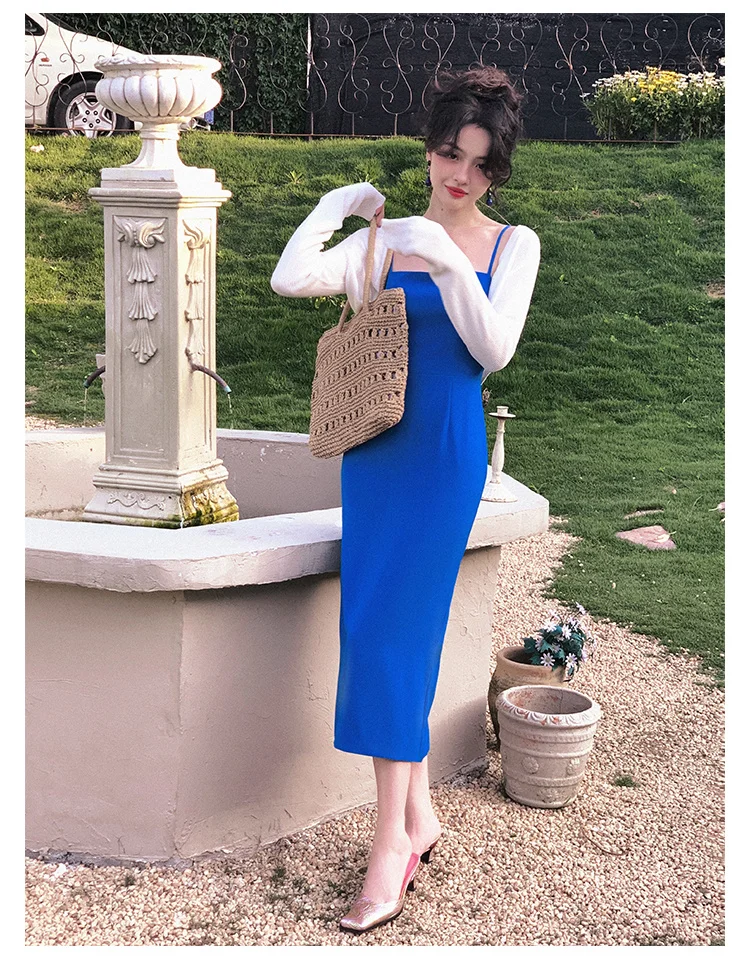 MQTIME - French 2024 Summer New Sexy Pure Desire Sling Dress One Line Neck High Waist Wrap Hip Skirt for Women