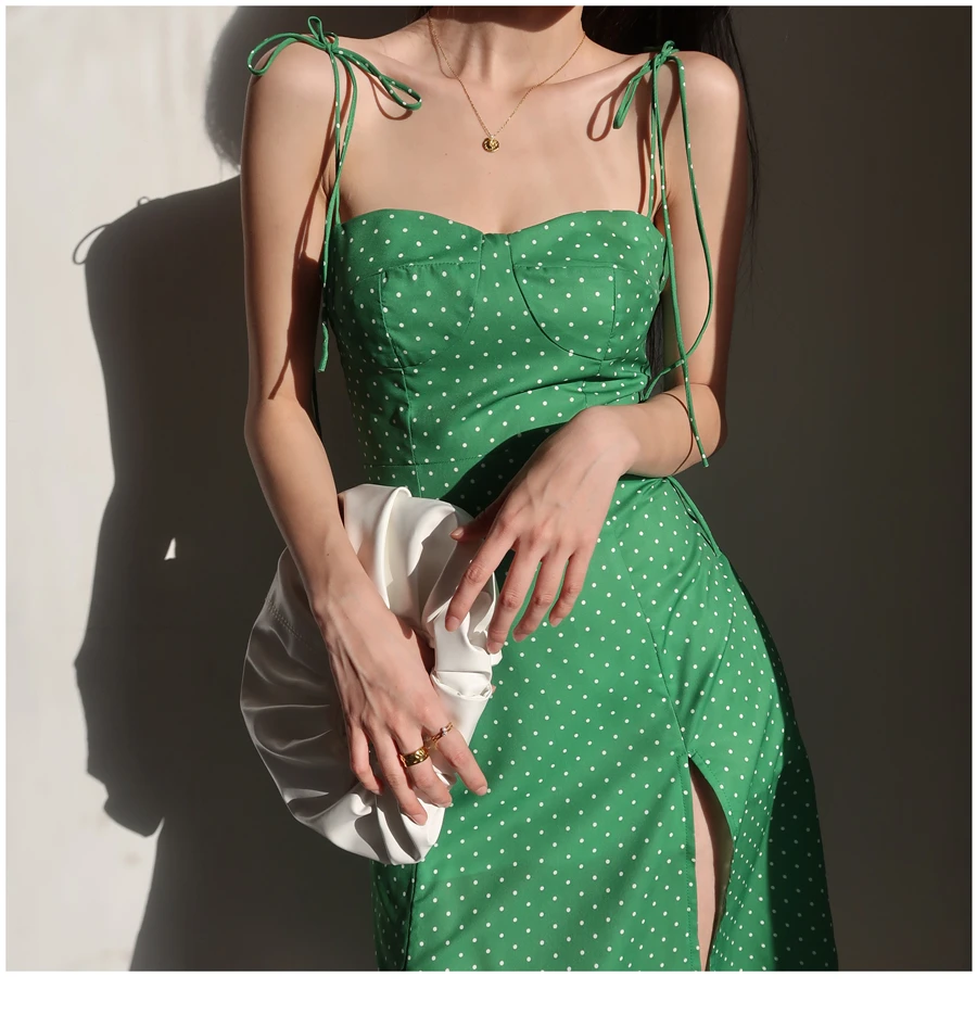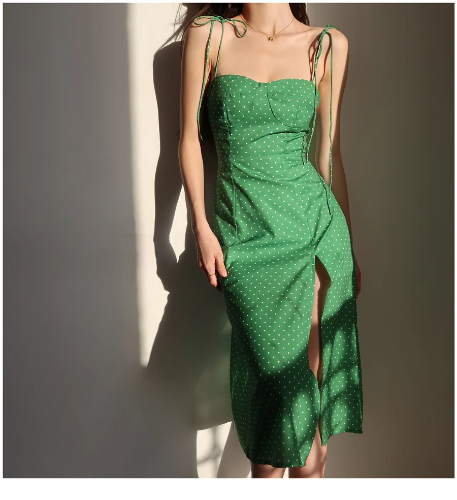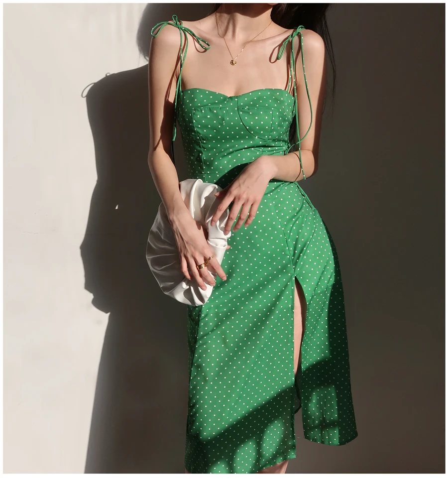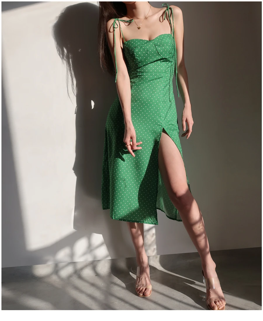 MQTIME - French Dot Slim High Split Long Leg Suspender Dress