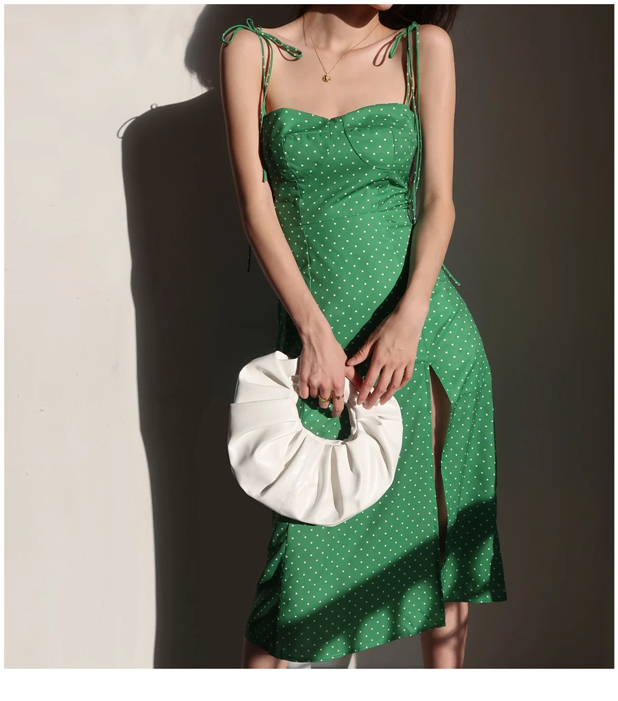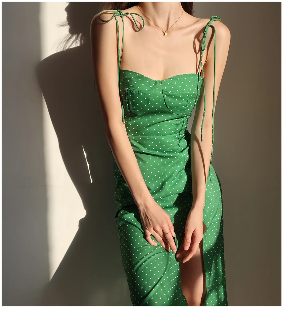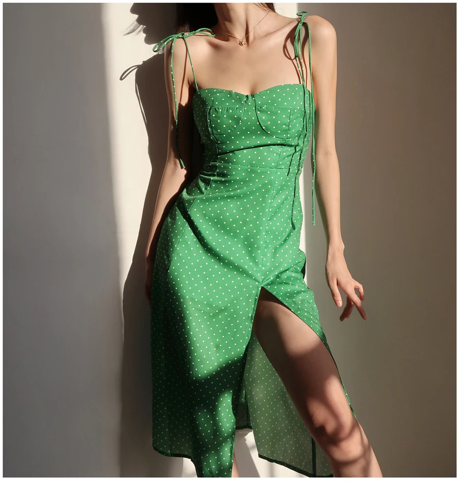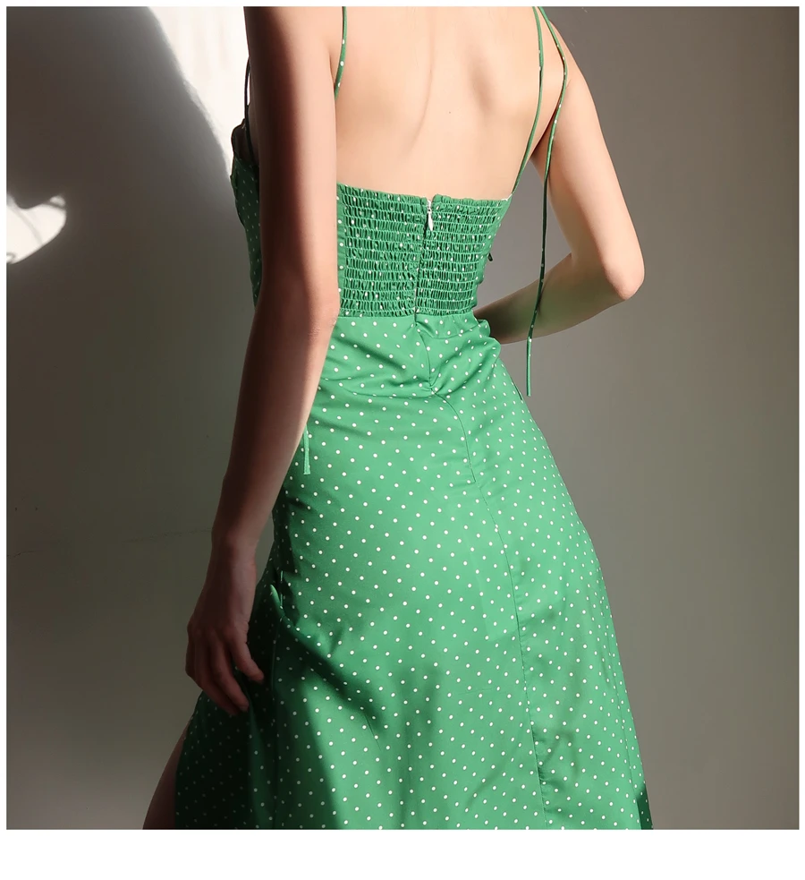 MQTIME - French Dot Slim High Split Long Leg Suspender Dress