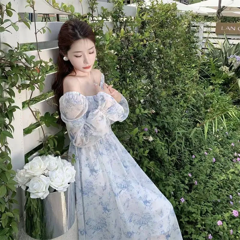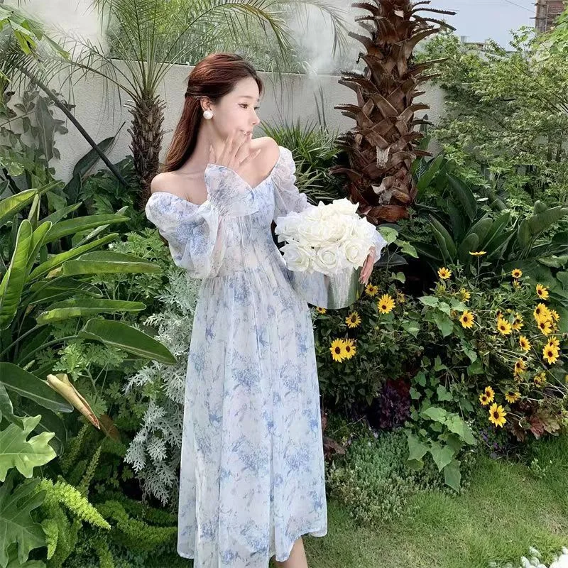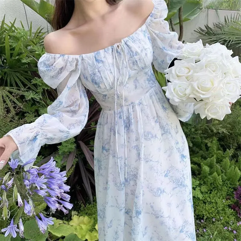MQTIME - French Floral Dress for Spring/summer Vacation, 2024 New Style Elegant and High-end Waist Length Dress, Chubby MM Fairy Dress