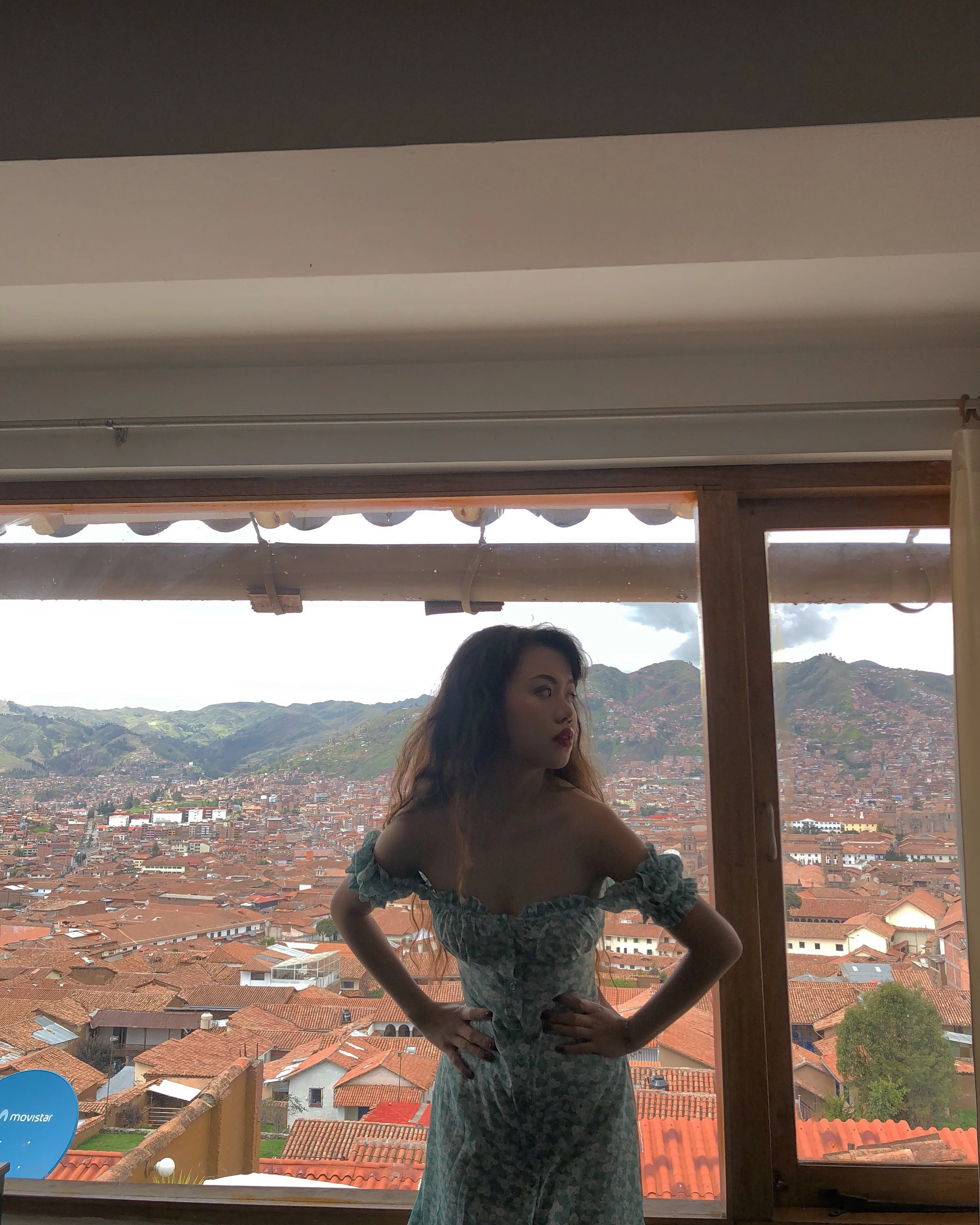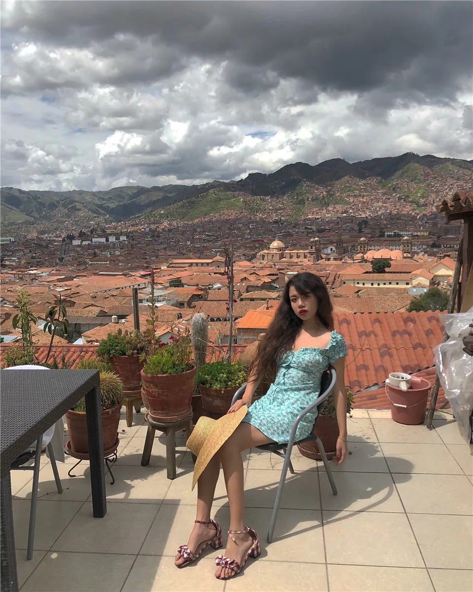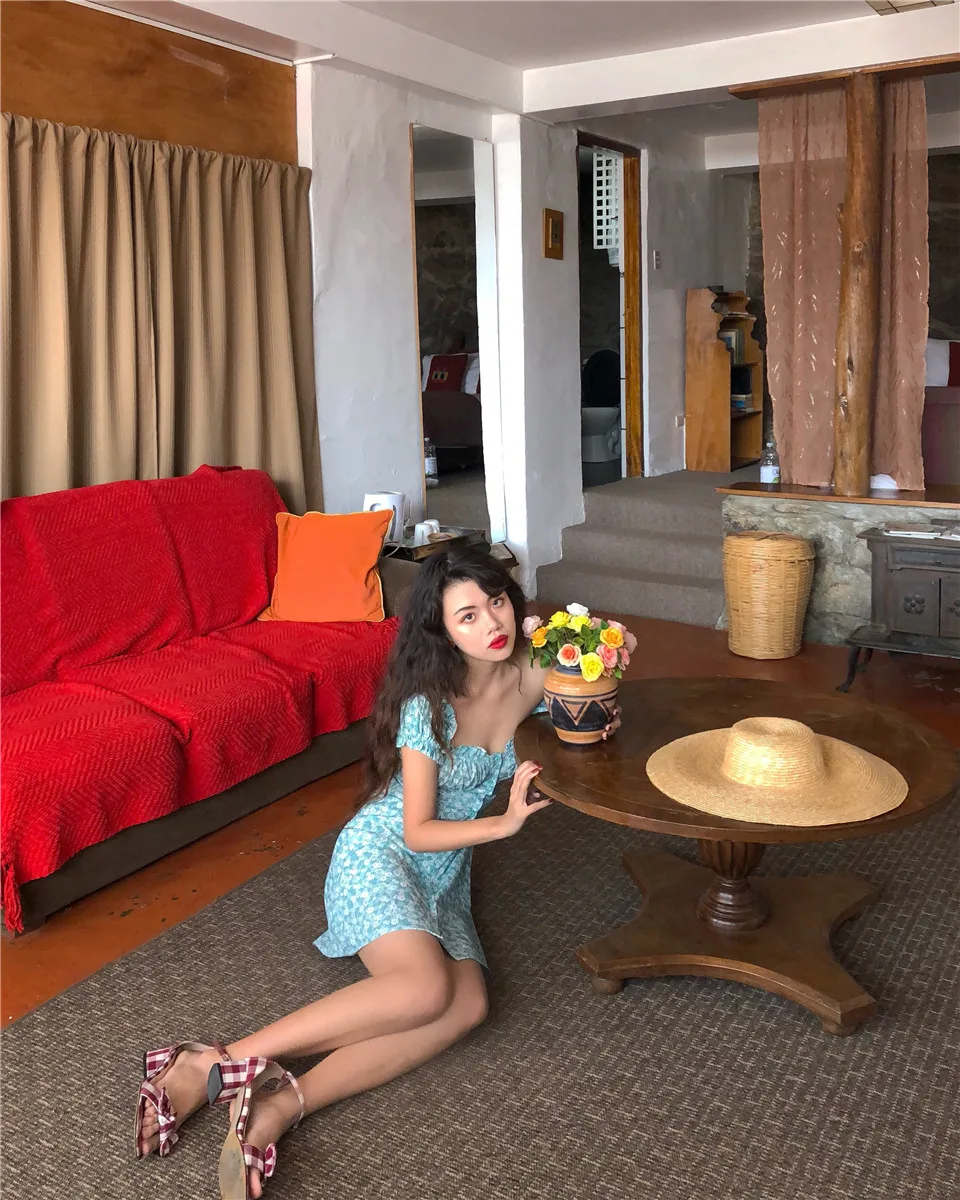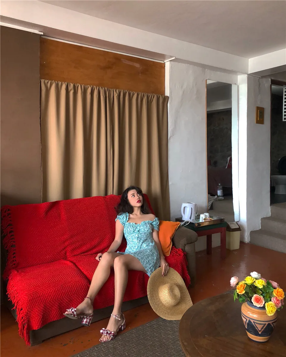 MQTIME - French Niche, One Line Collar, Two Wear Holiday Style Green Floral Dress, Summer 2024