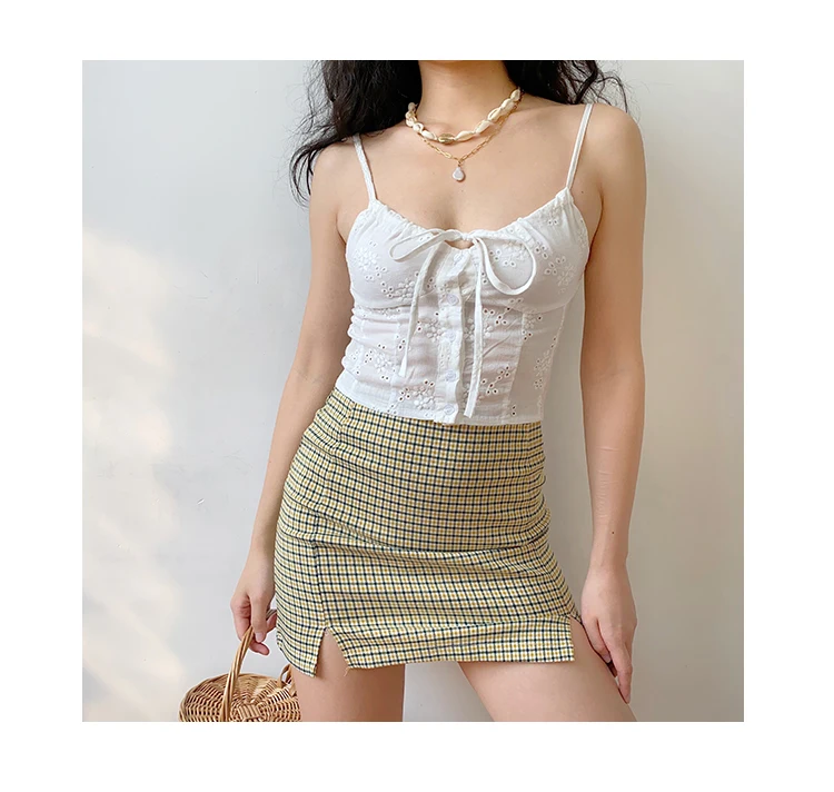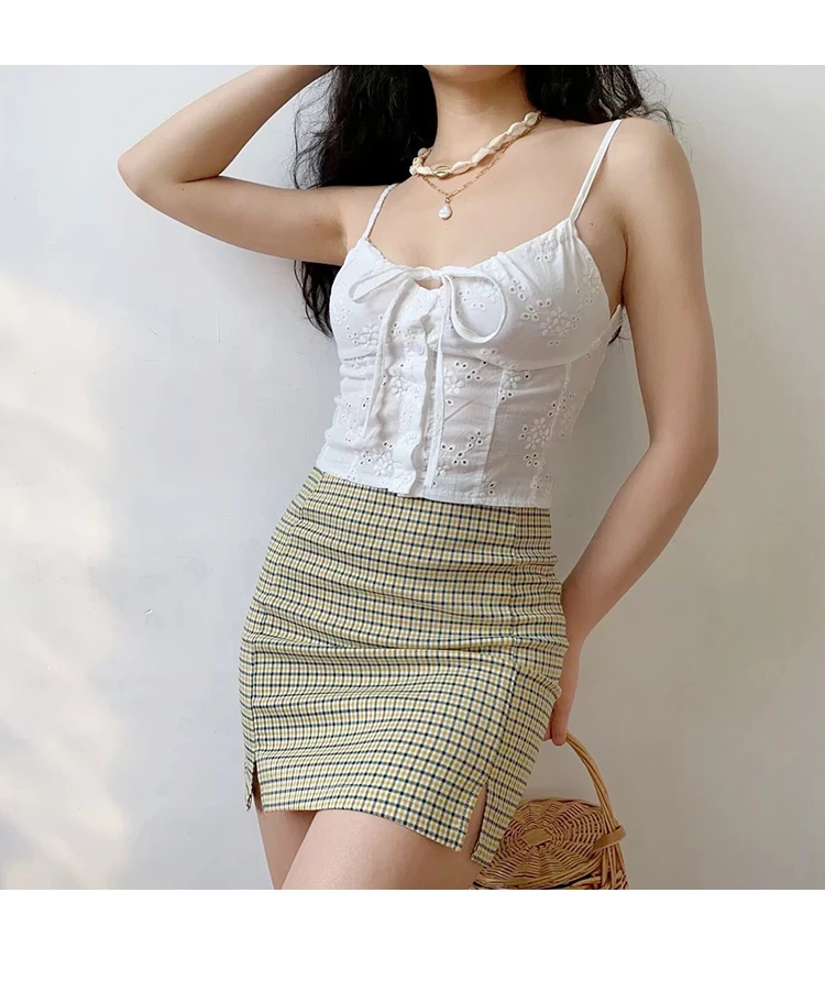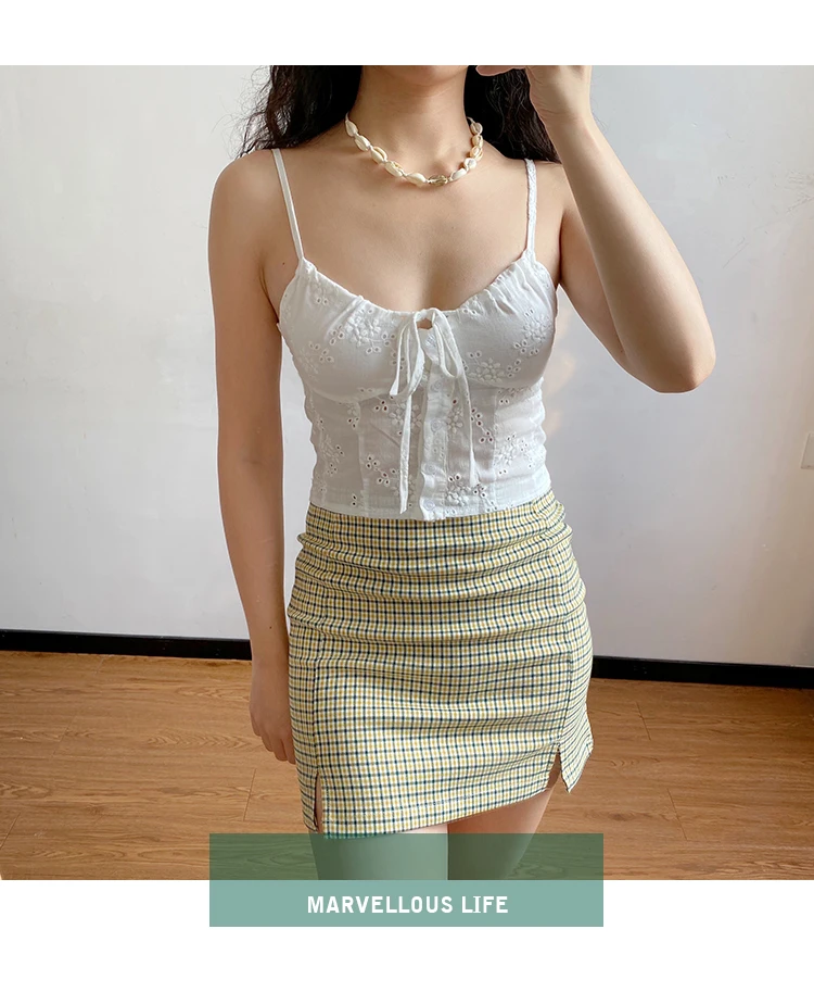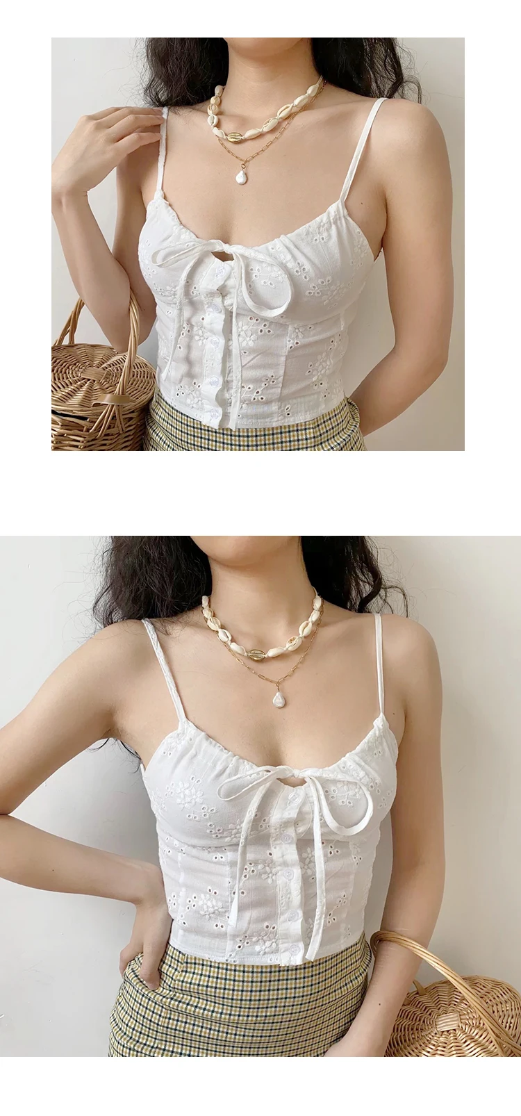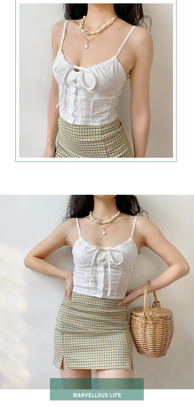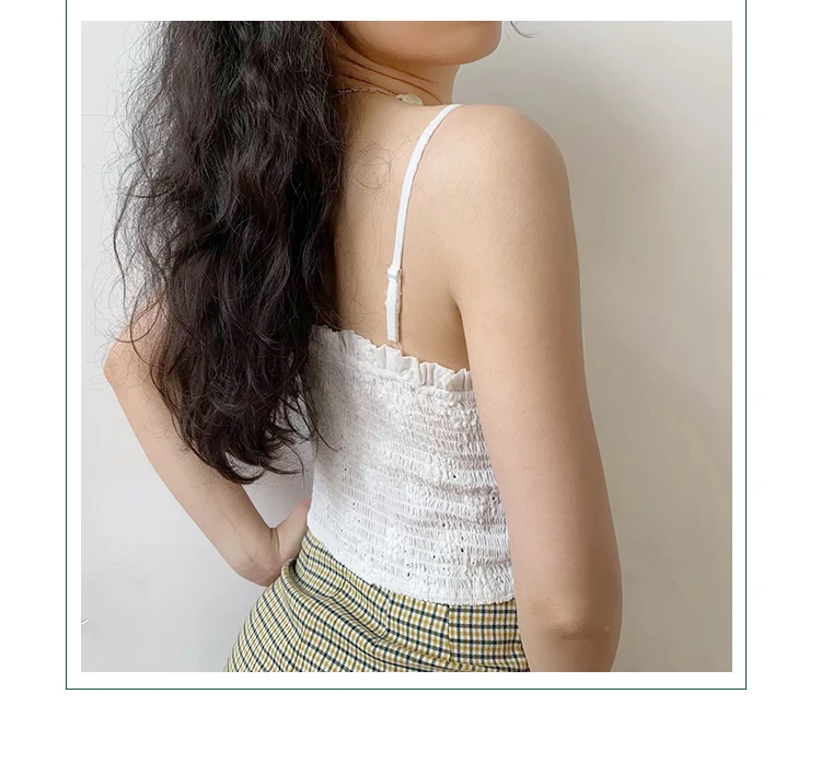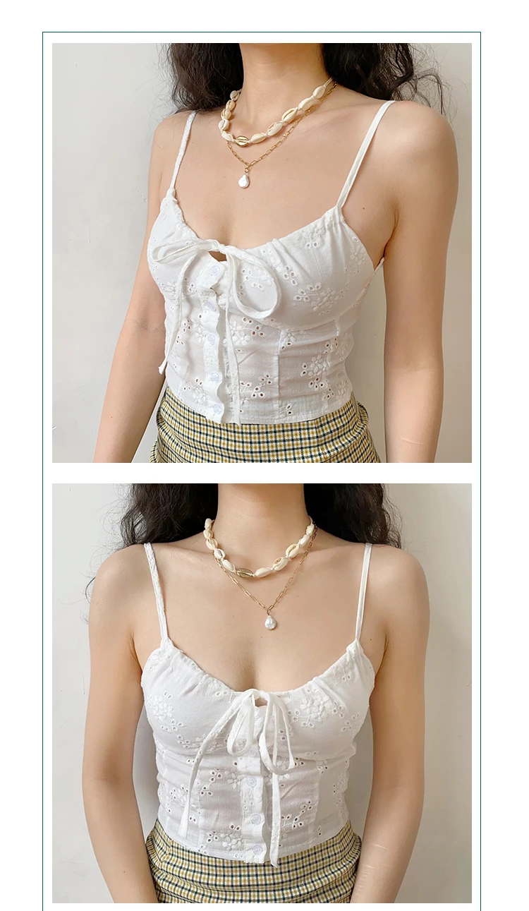 MQTIME - French V-neck Strap Sling Slim Fit Sexy White Vest Top for Women