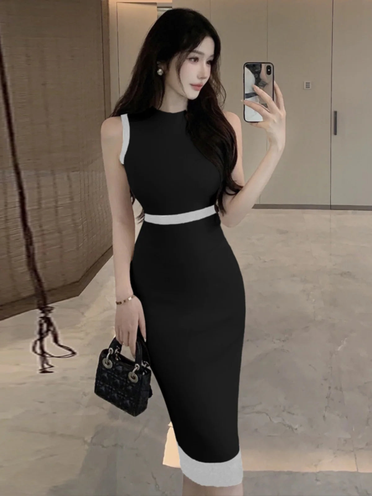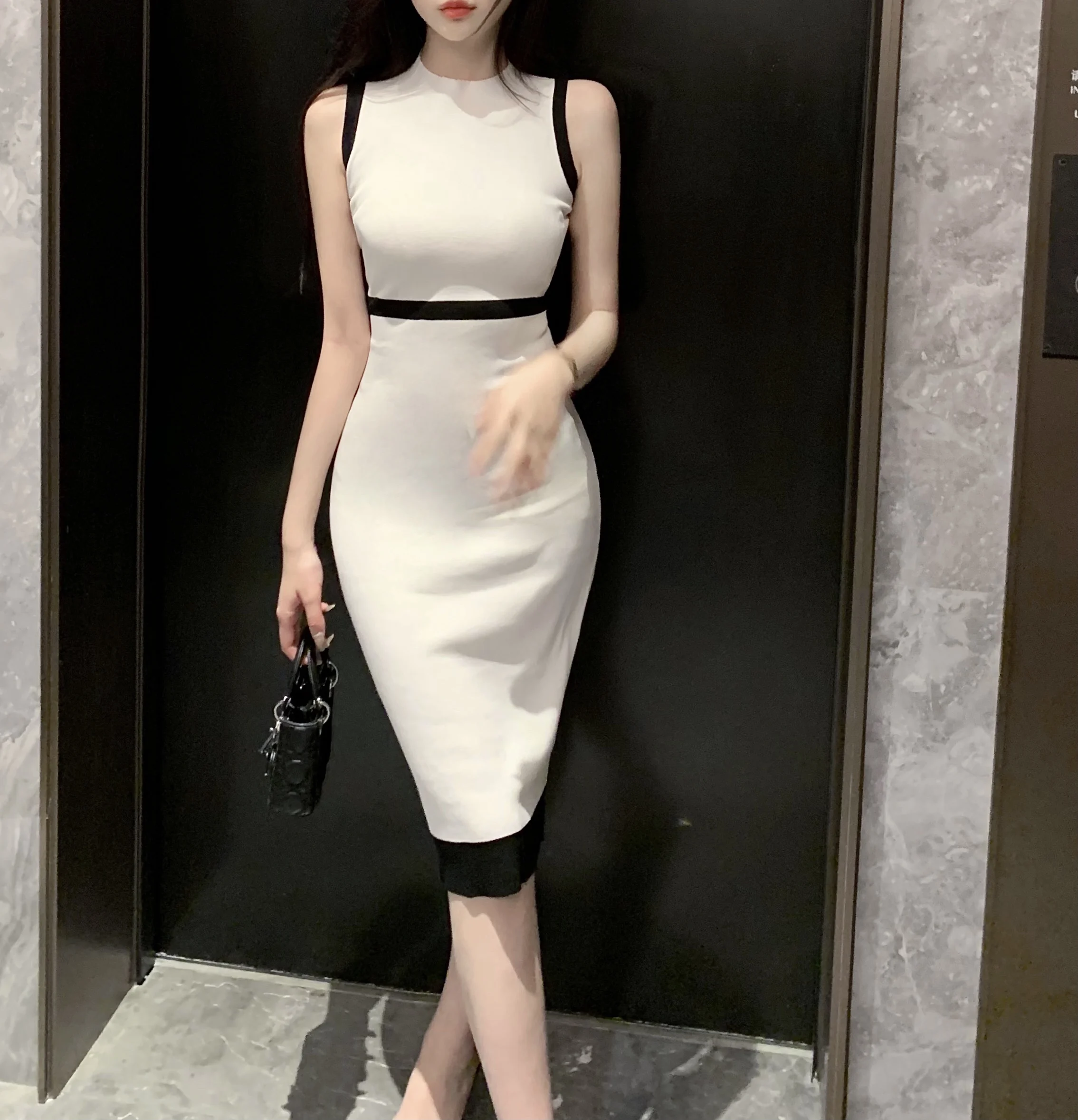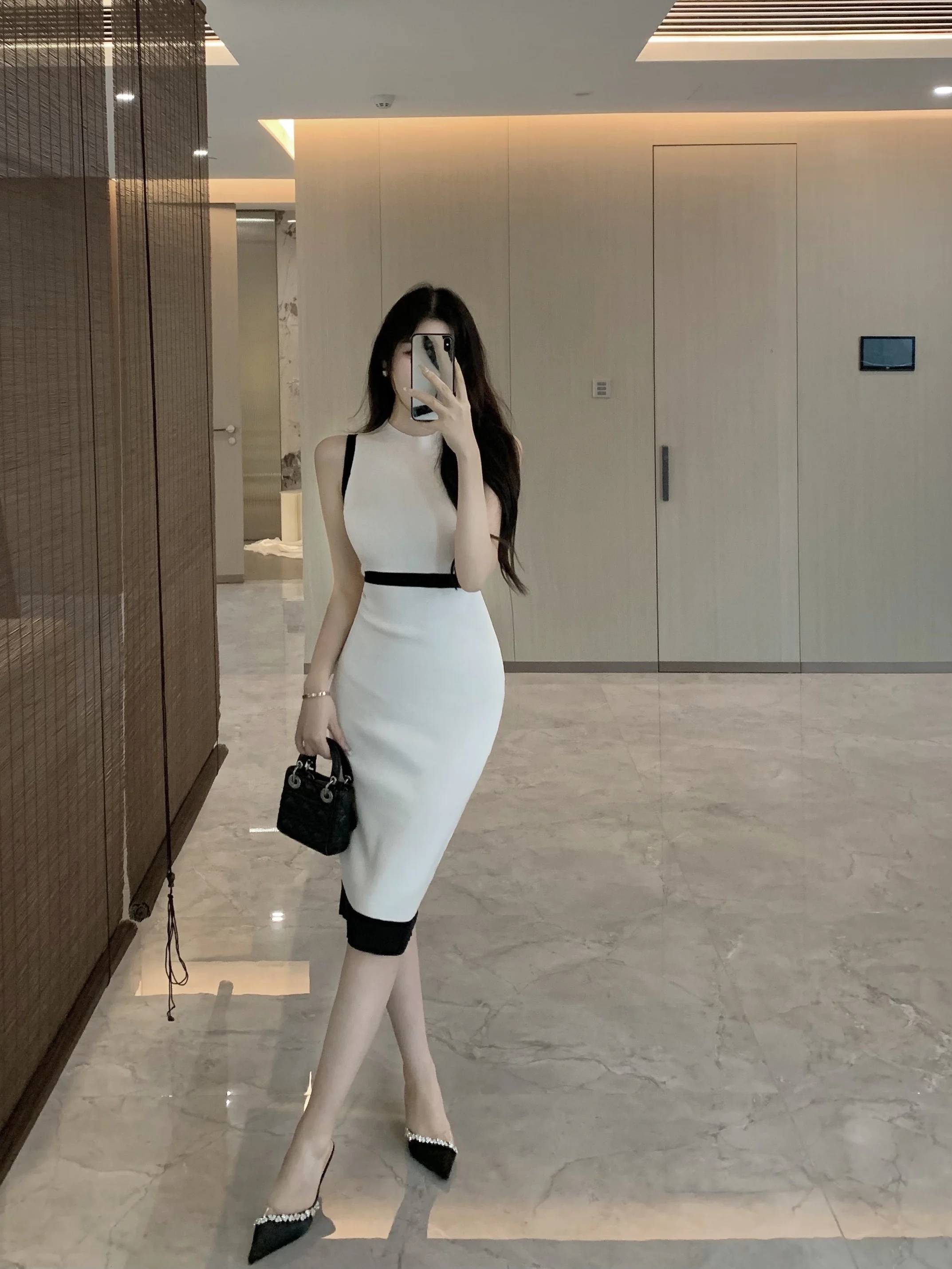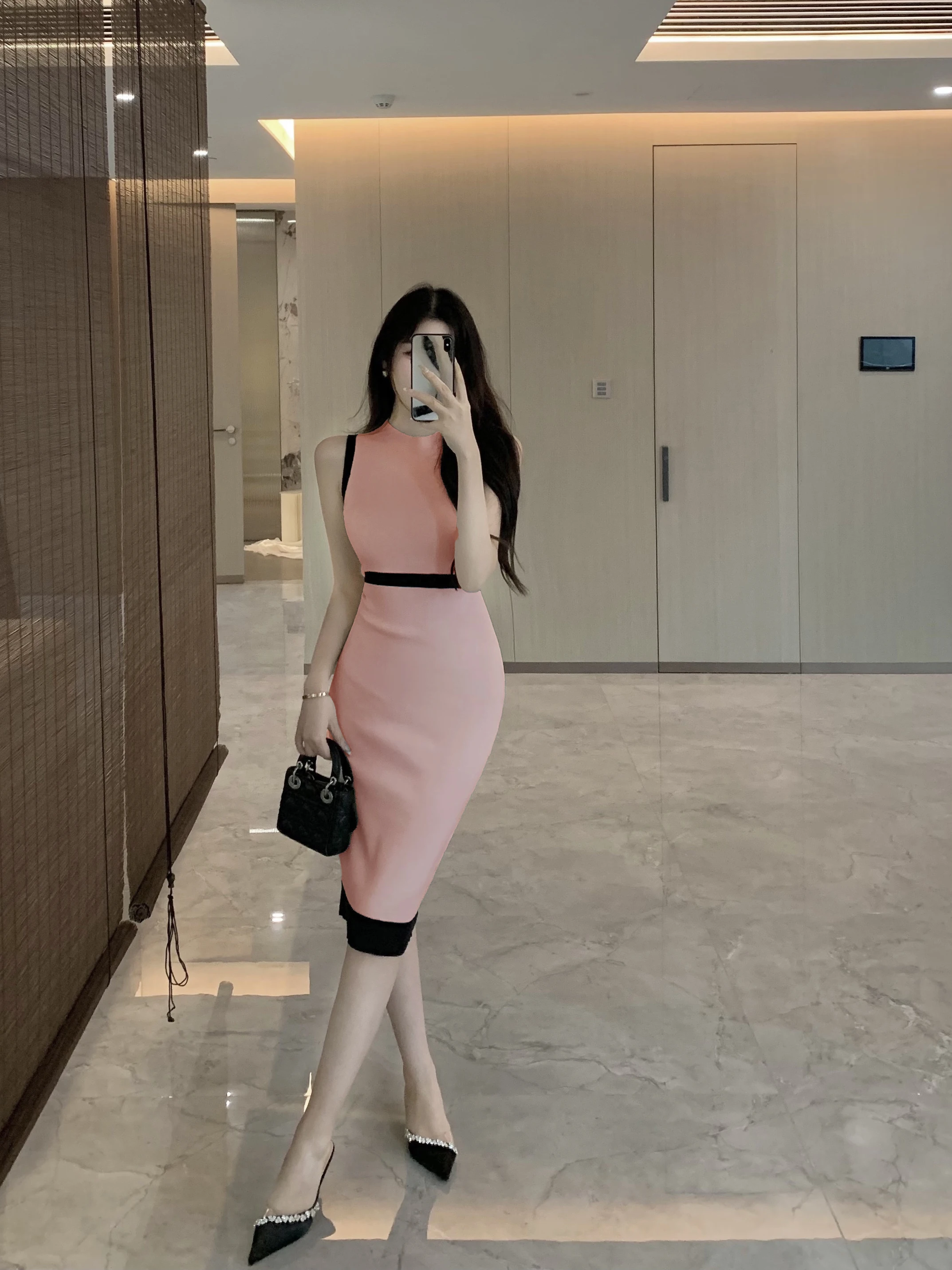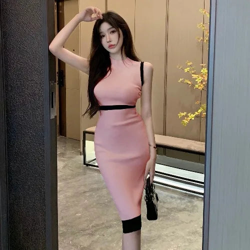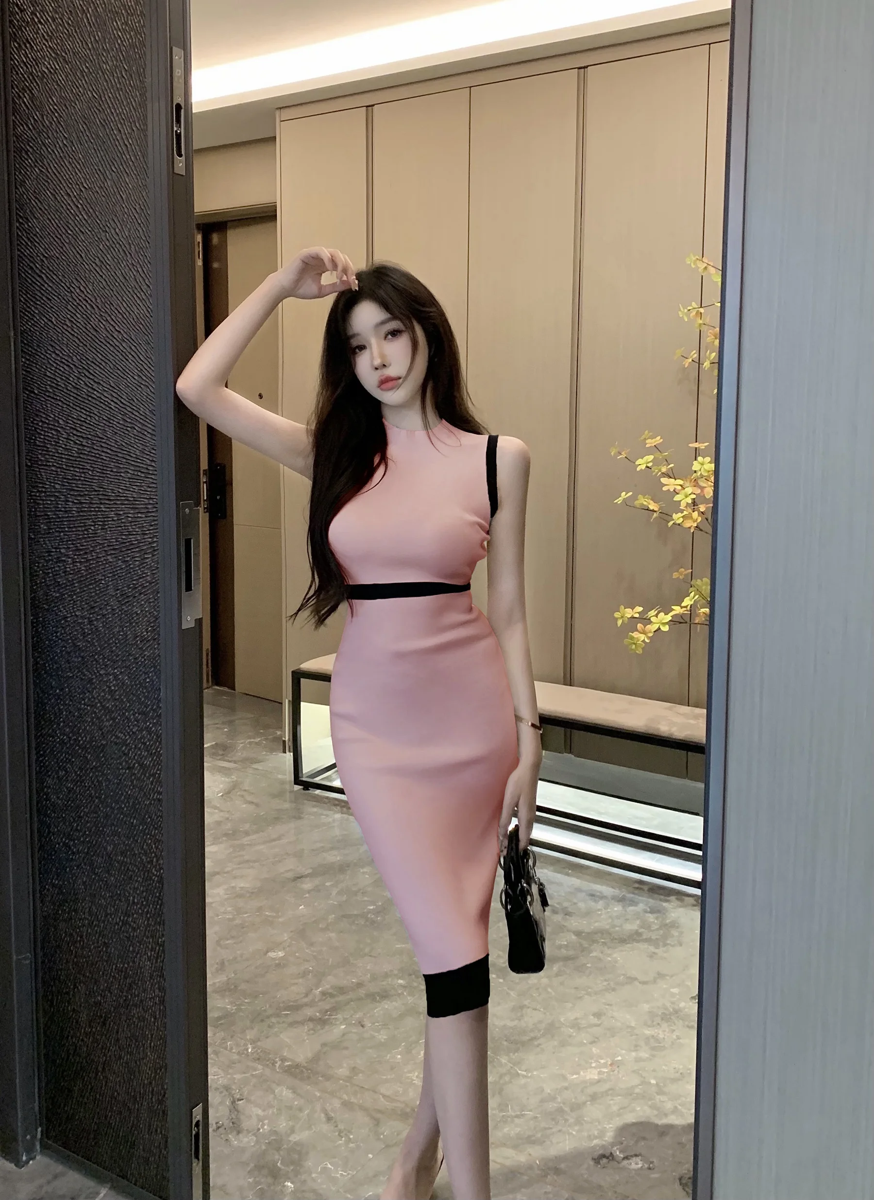 MQTIME - Gege Home Sweetie Svel Vest Dr Color Blo Knitted Midi Skirt Polyester Fiber 00% Summer Faion Women's Dr