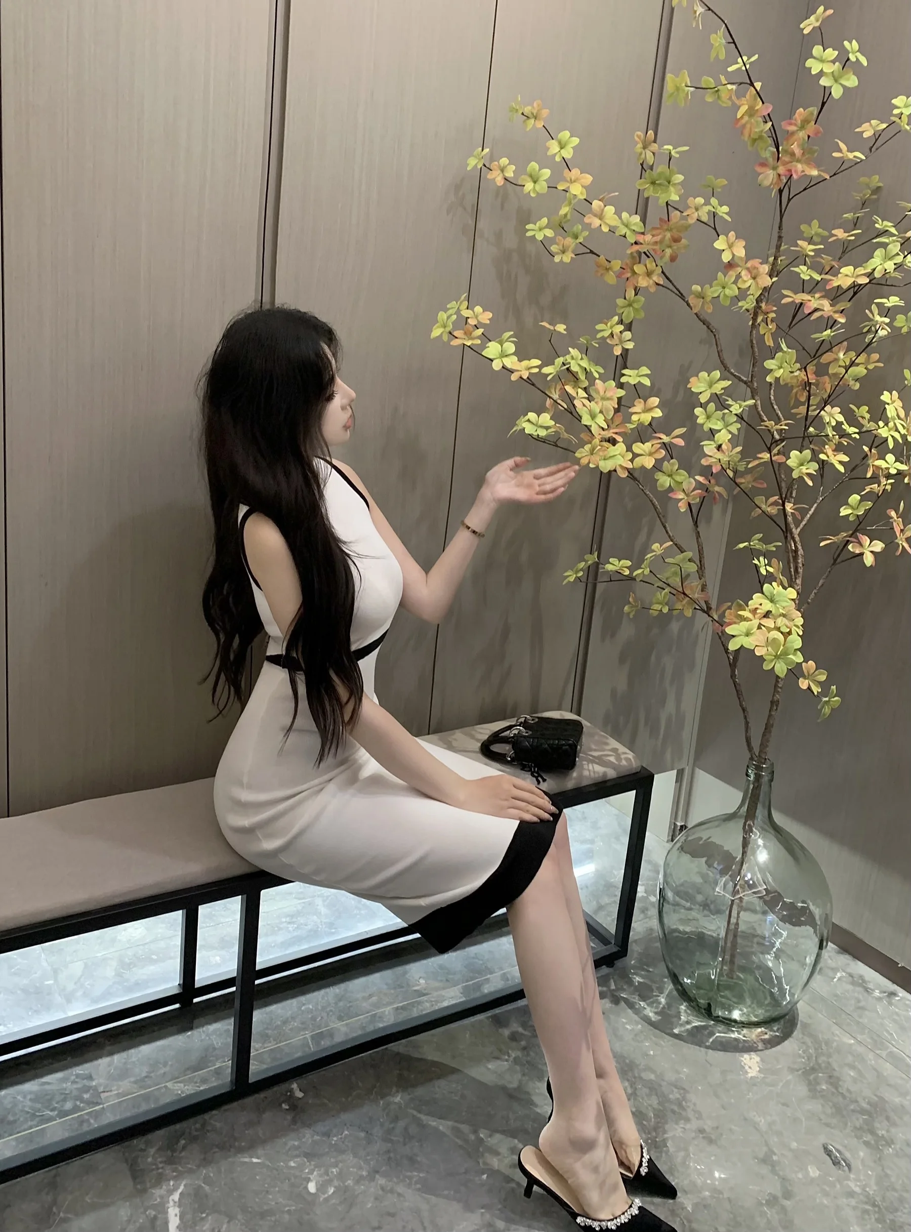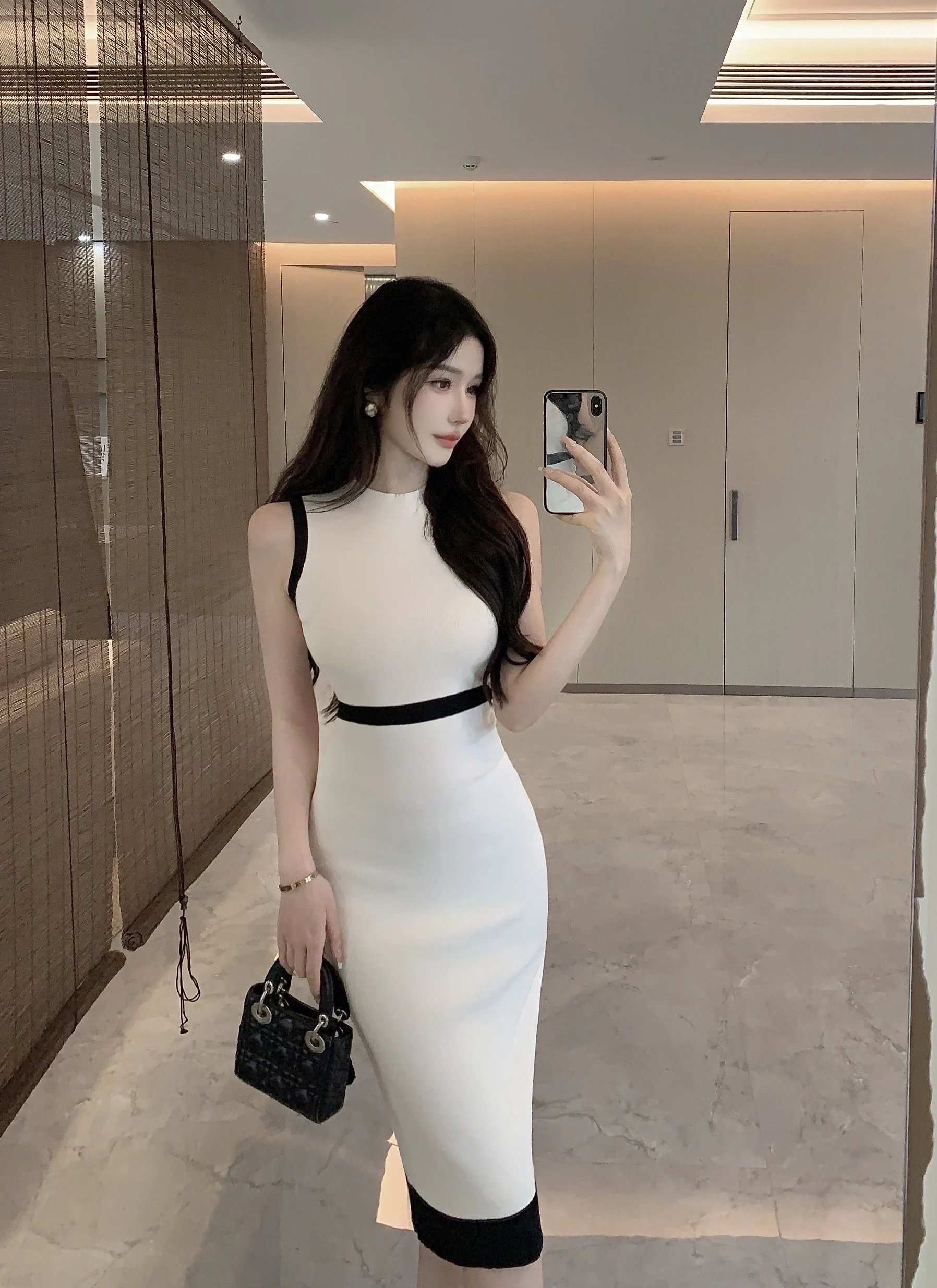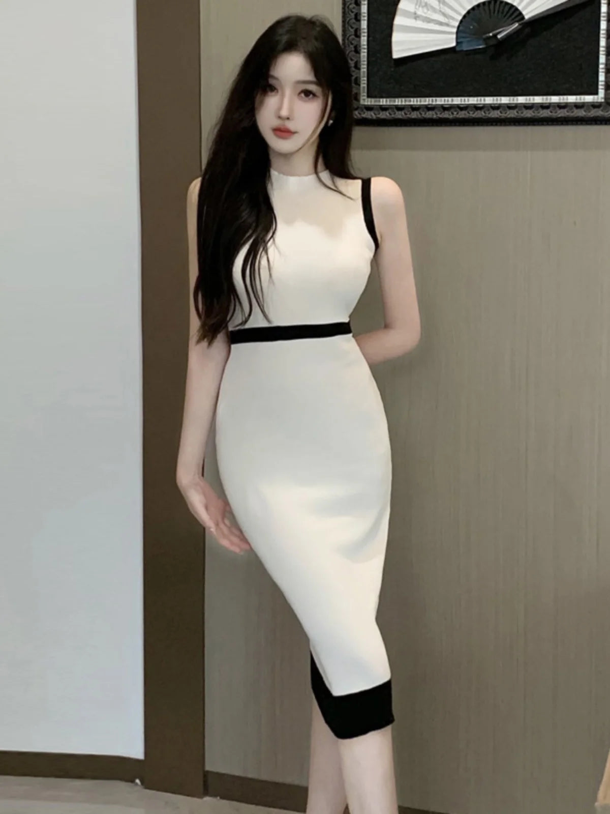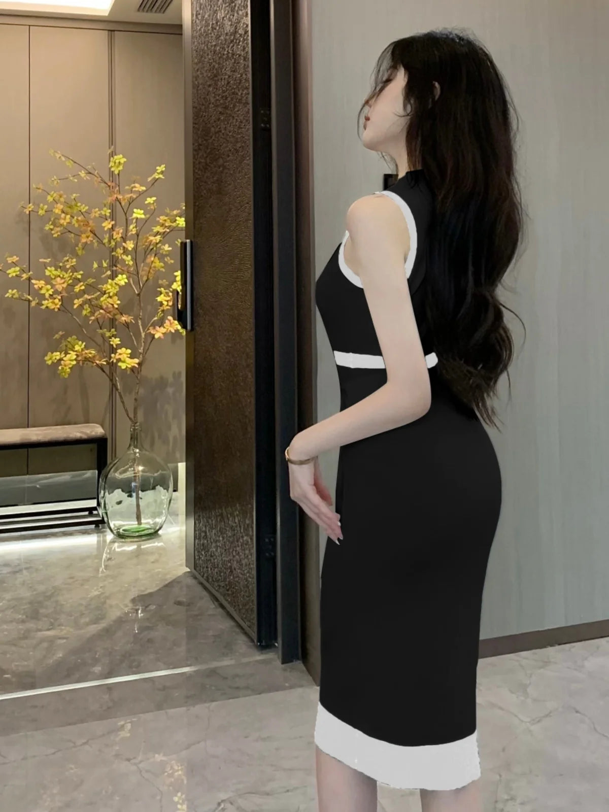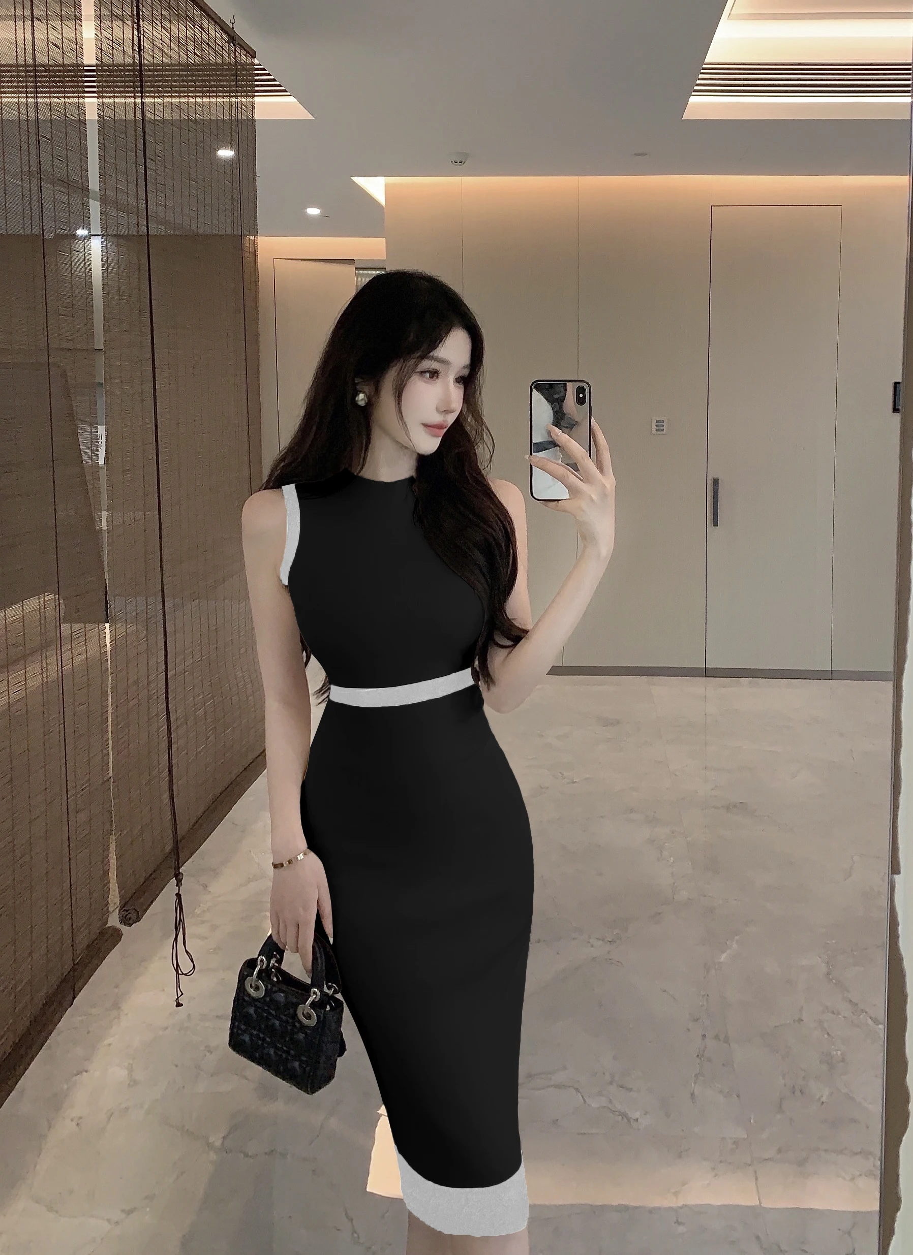 MQTIME - Gege Home Sweetie Svel Vest Dr Color Blo Knitted Midi Skirt Polyester Fiber 00% Summer Faion Women's Dr