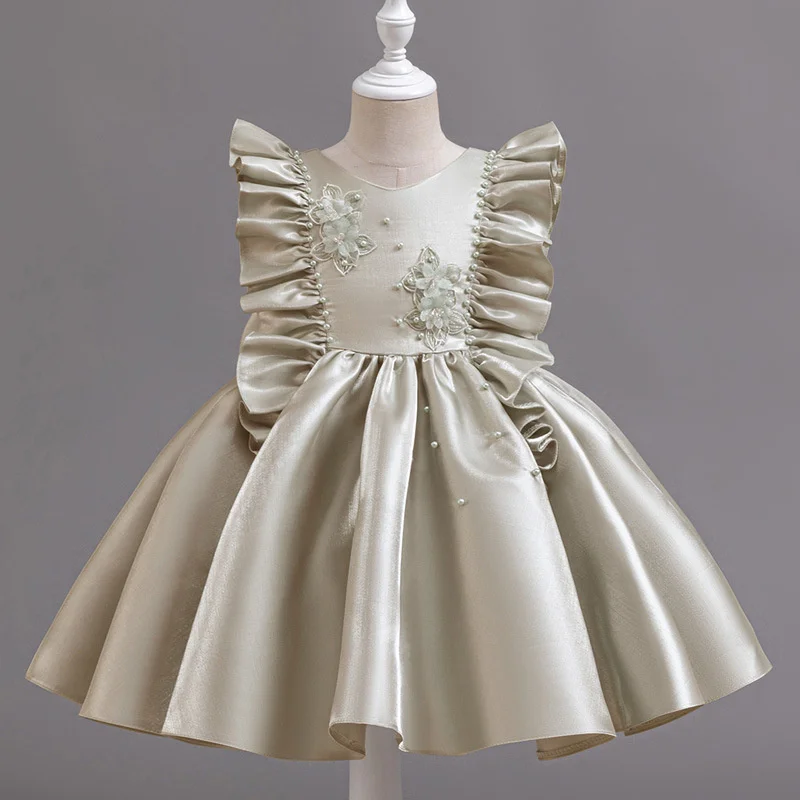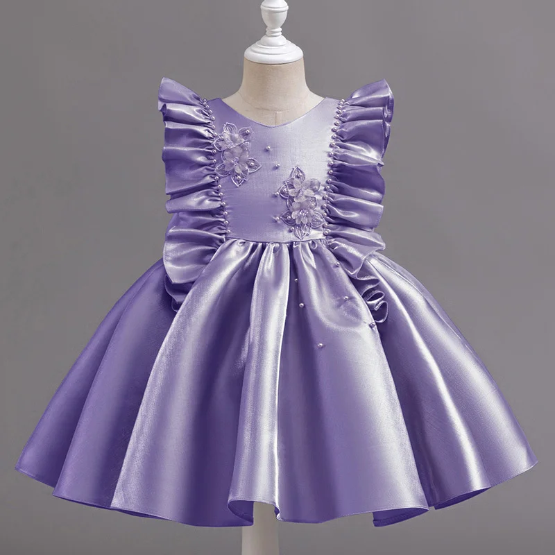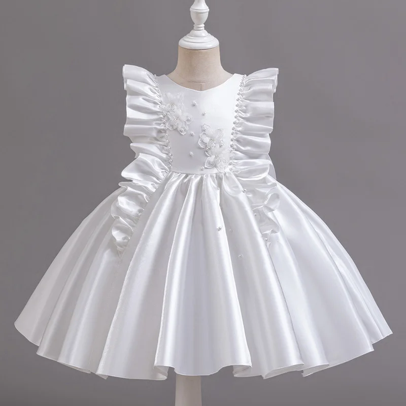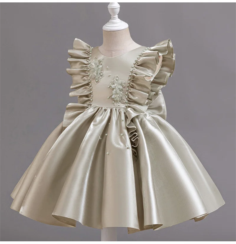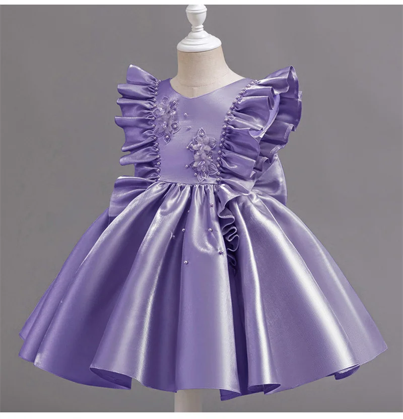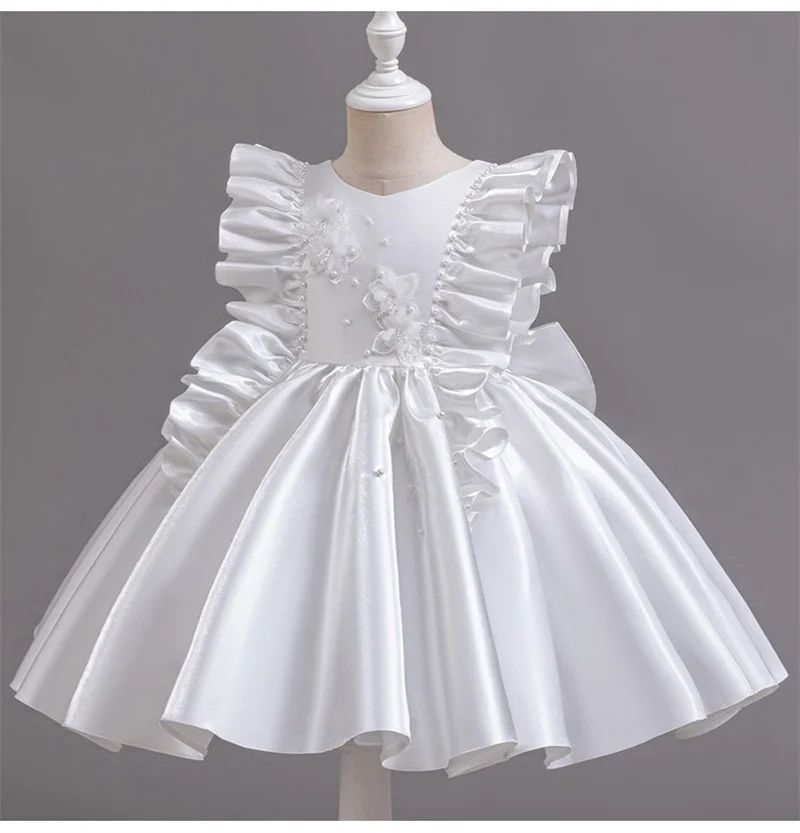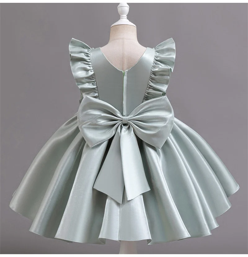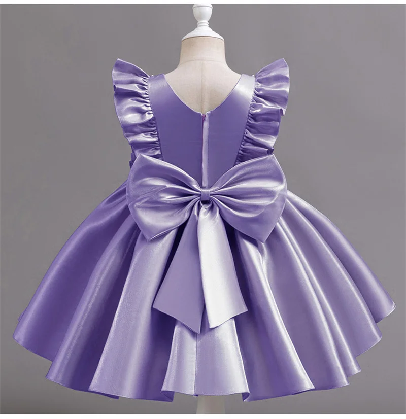 MQTIME - Girls Backless Bow Dress Kids Princess Wedding Gown Children Fashion Bowknot Dresses Toddler Floral Birthday Party Clothing 1-6Y