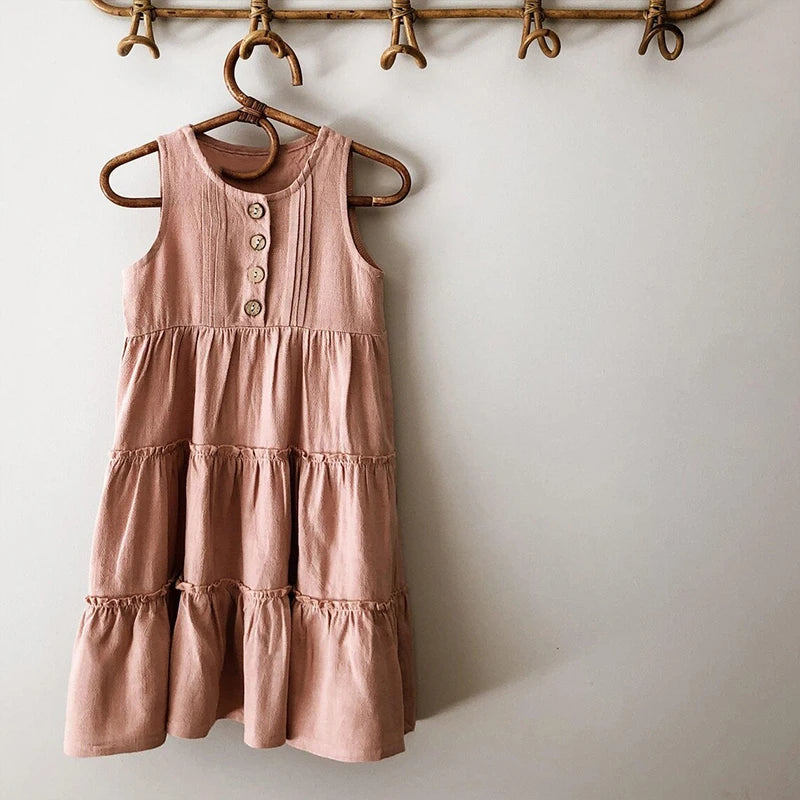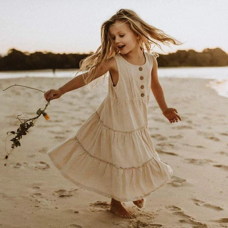 MQTIME  -  Girls Bohemian Long Maxi Linen Dress Summer New Beach Style Ruffled Casual Sleeveless Suspender Dresses TZ227
