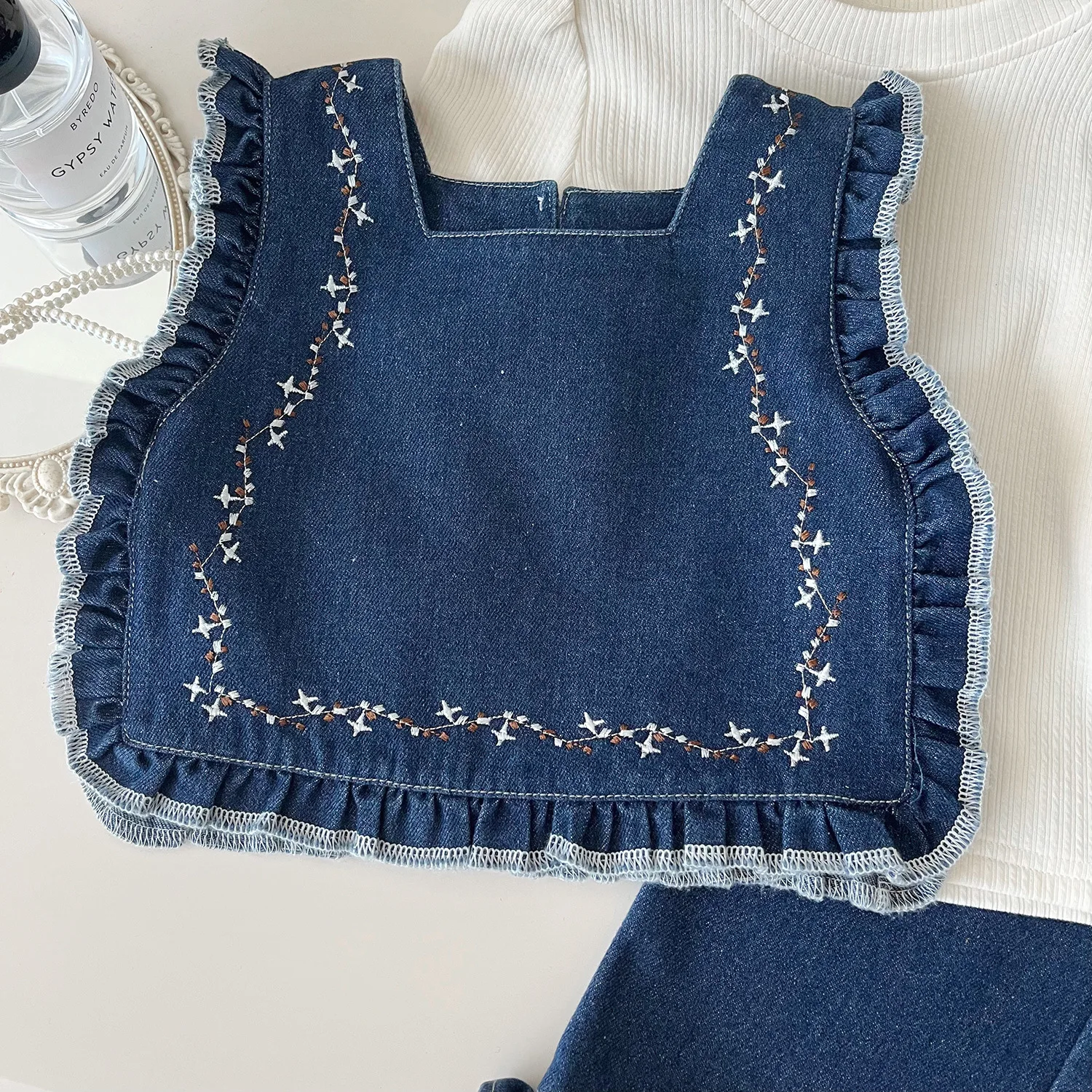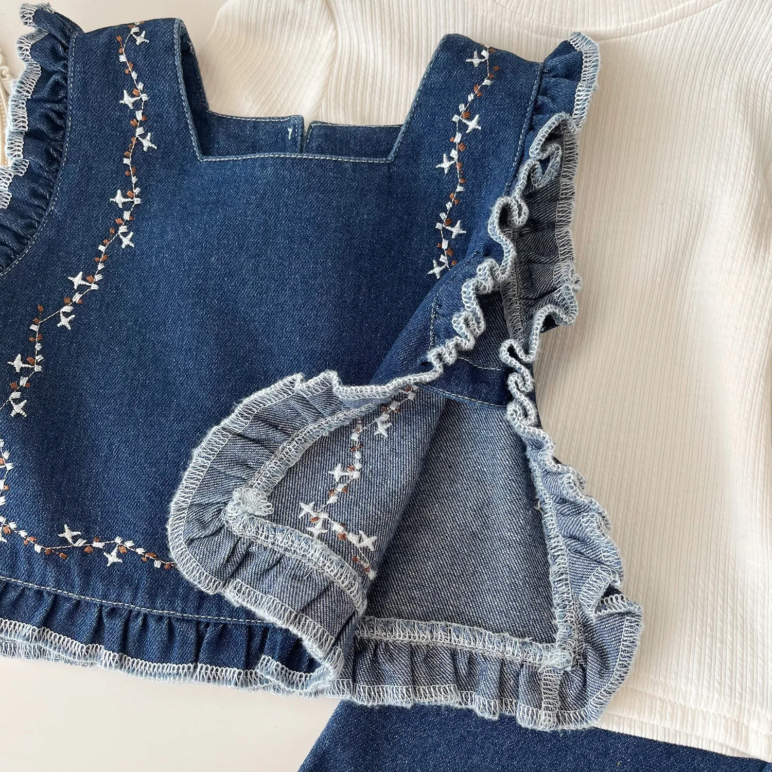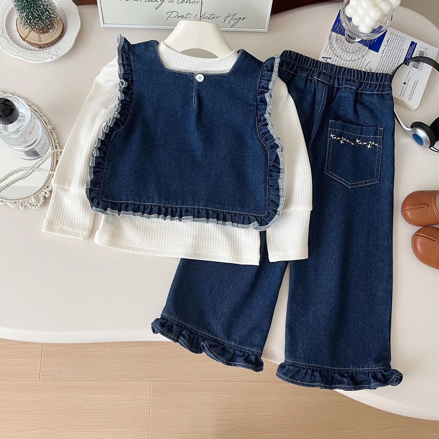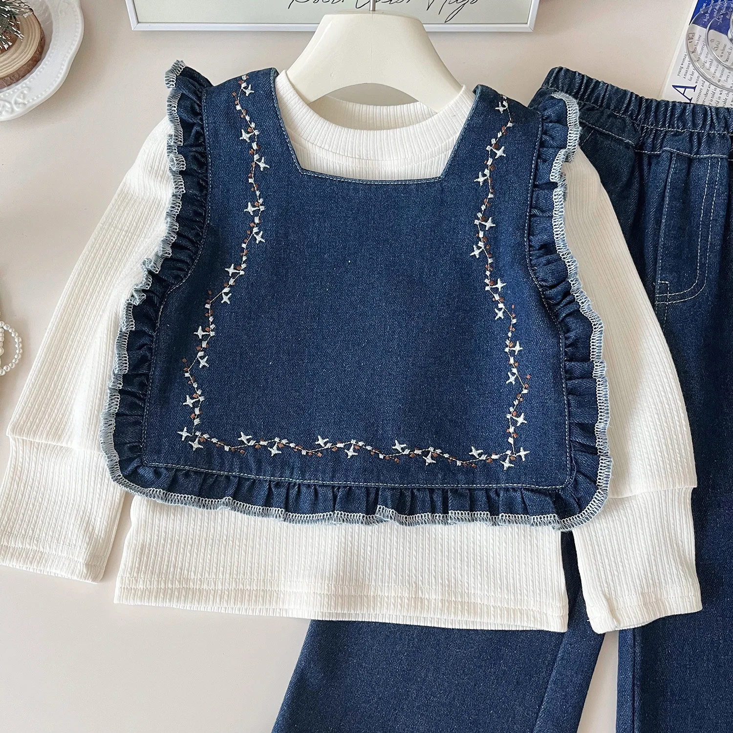 MQTIME - Girls Clothes Sets Autumn Spring Knitted Shirt+Denim Vest+Jeans Children Clothing Suits Fall Girls Outfits Set 2 3 4 5 6 7Yrs