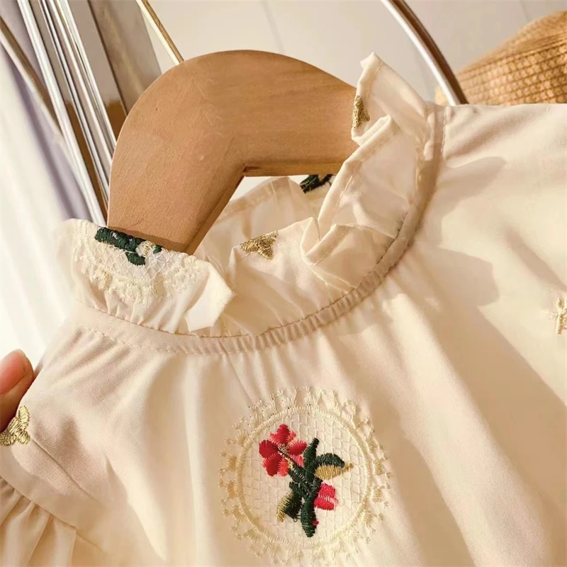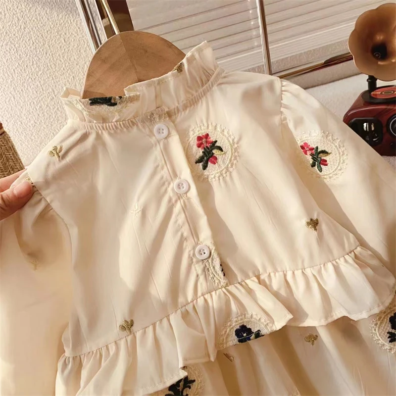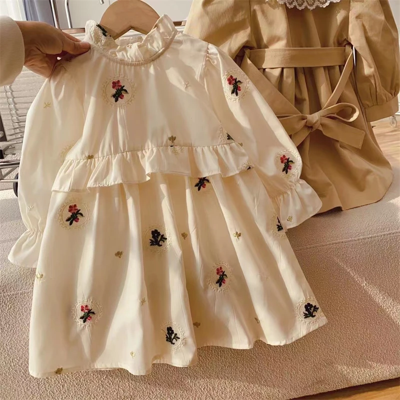 MQTIME - Girls Dress Autumn Girls Princess Dress New Spring Children Kids Baby Embroidery Ruffle Long Sleeve Dresses Vestidos 2-8Yrs
