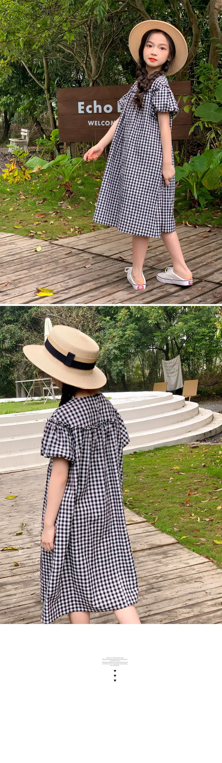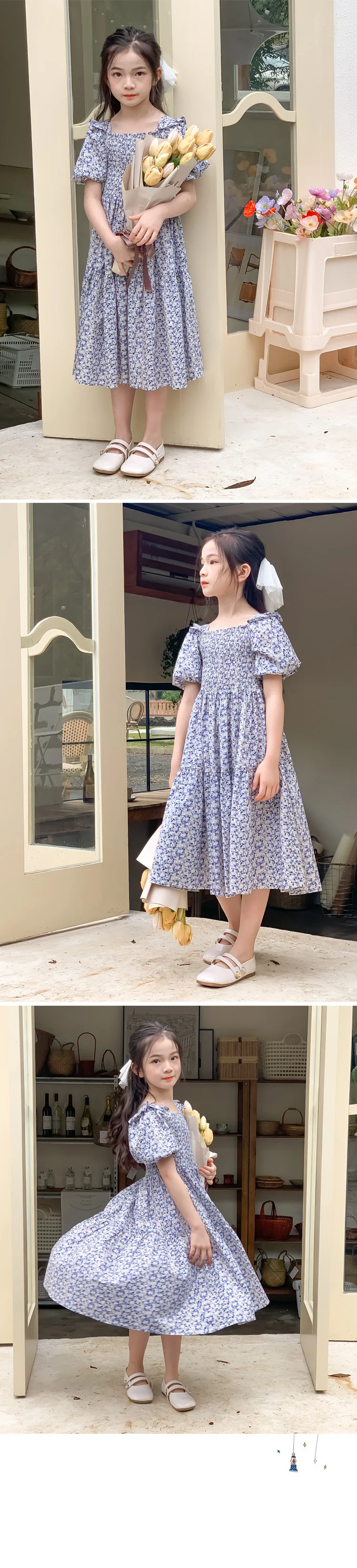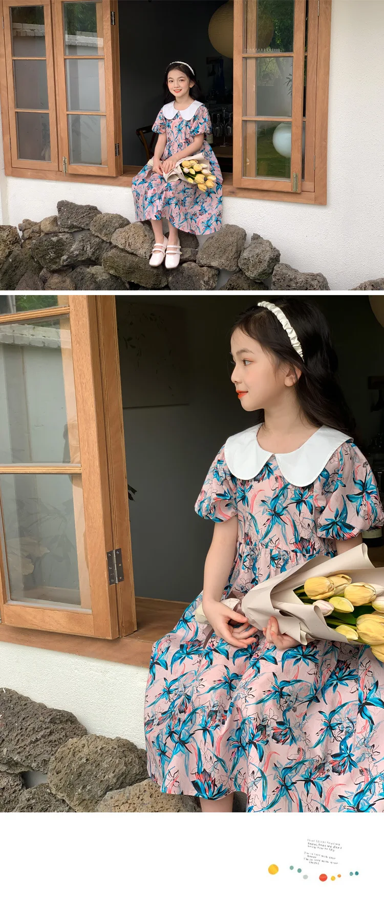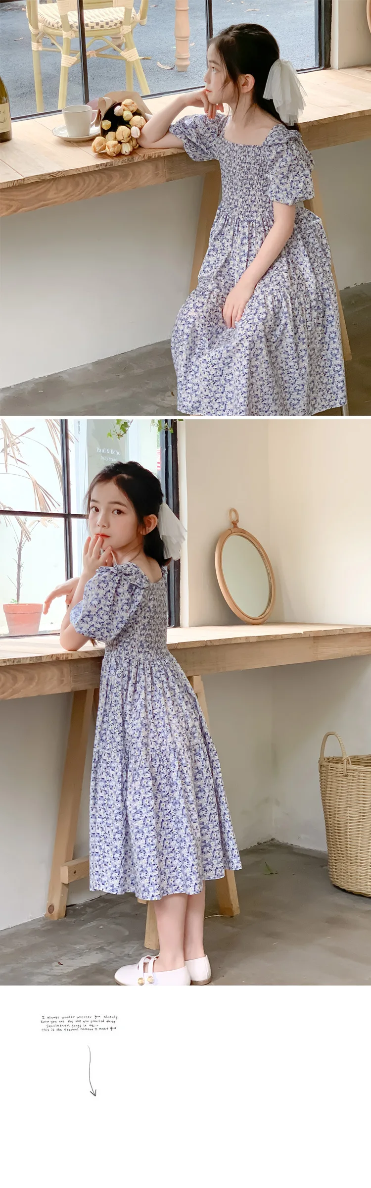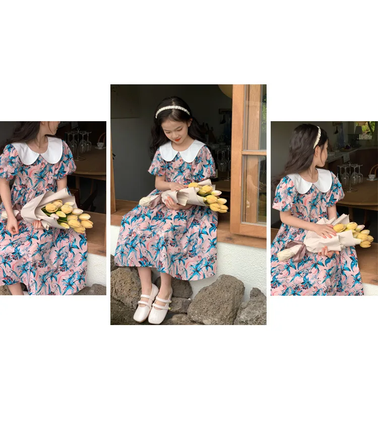 Mqtime Girls Floral Dress Summer Puff Sleeve Elegant Beach Princess Dresses for Kids Travel Casual Teen Children Clothes 13 14 15 Years