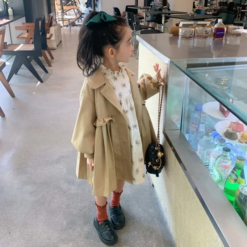 MQTIME - Girls Long Trench Coats 2025 New Fashion England Style Windbreaker Jackets Kids Spring Autumn Children's Clothing 2-8 Years