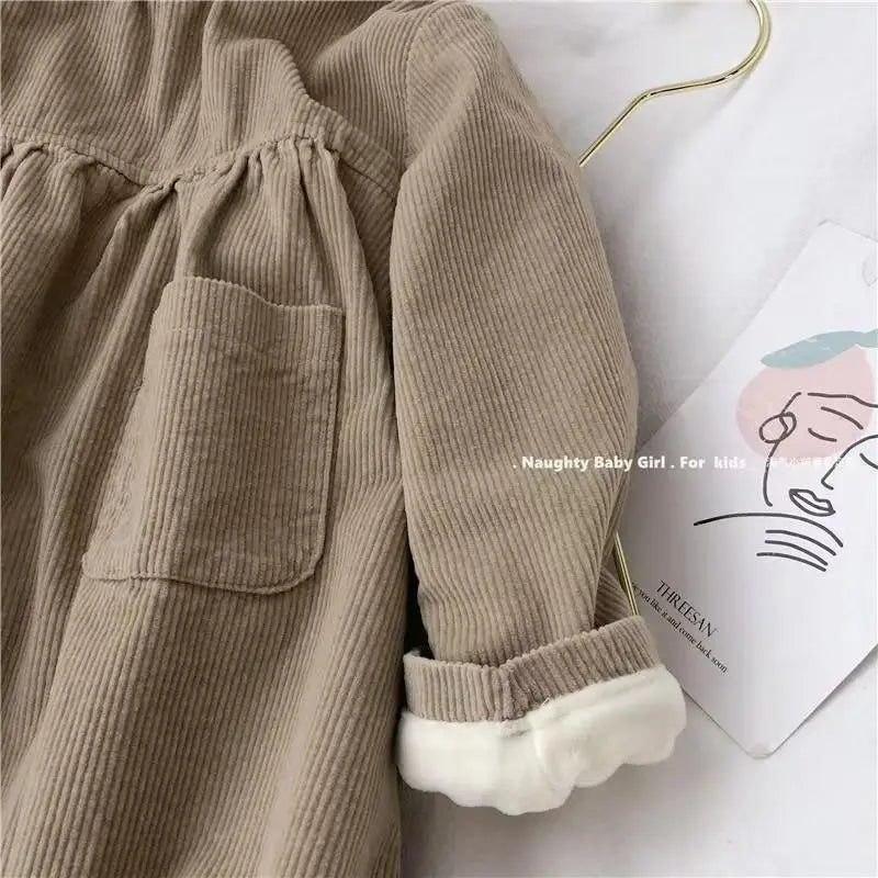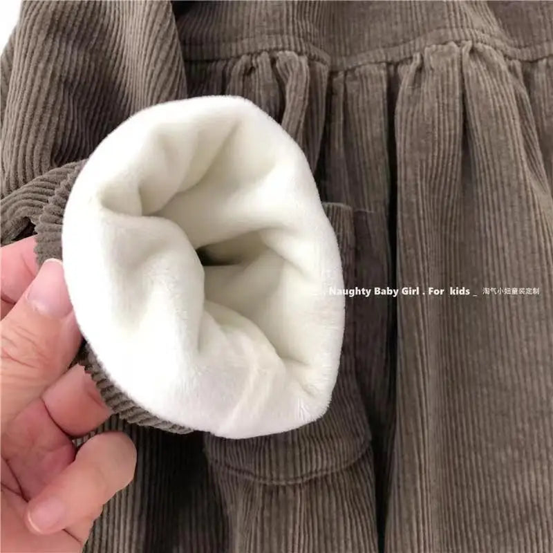 MQTIME - Girls Padded Dress Children Autumn Winter Gown Kids Casual Long-sleeved Vestidos 2024 New Toddler Plus Velvet Fashion Clothing