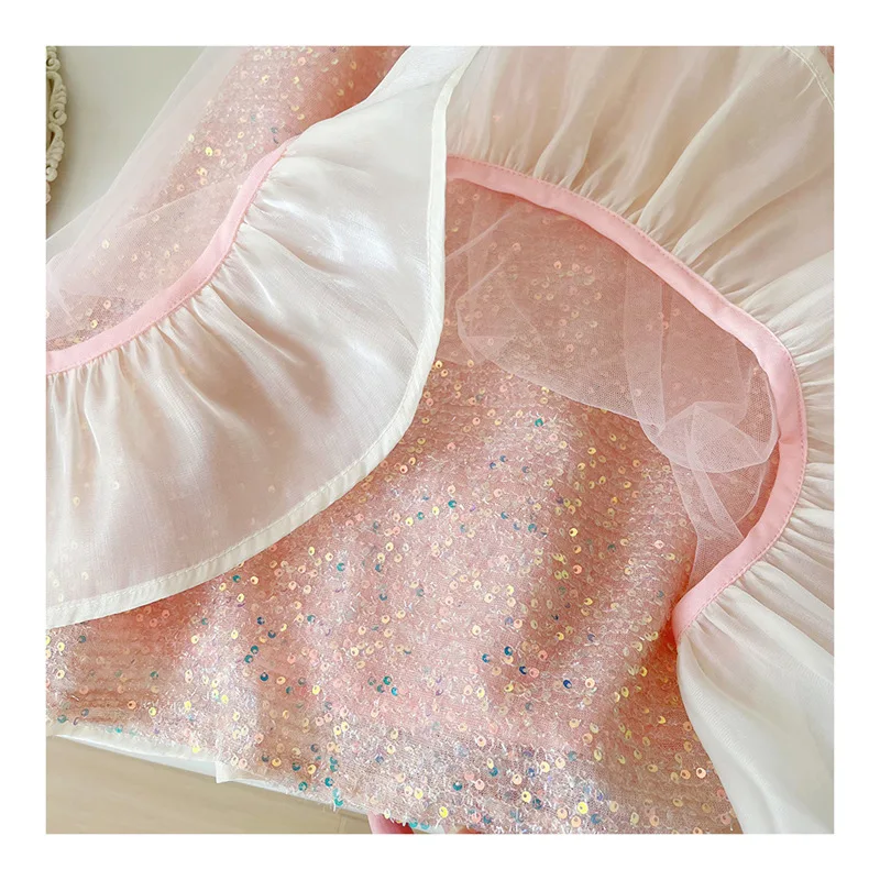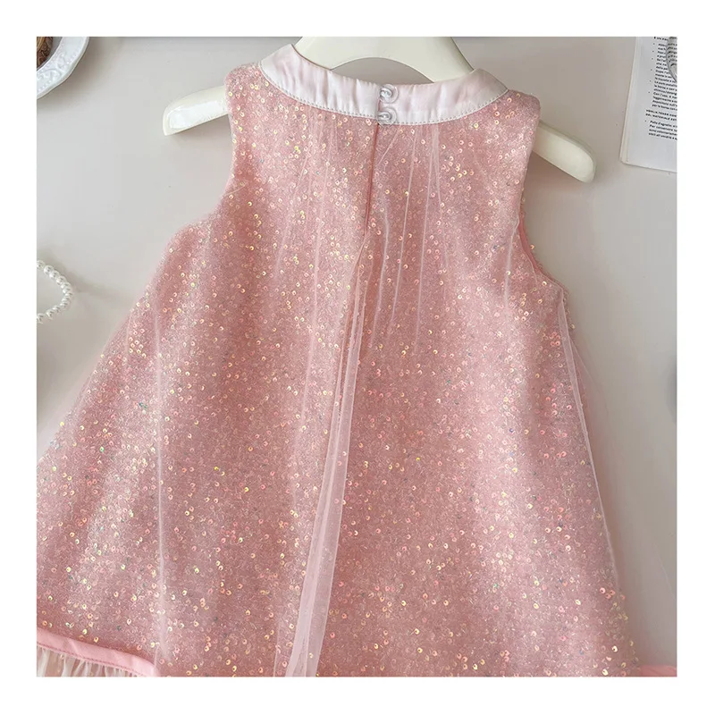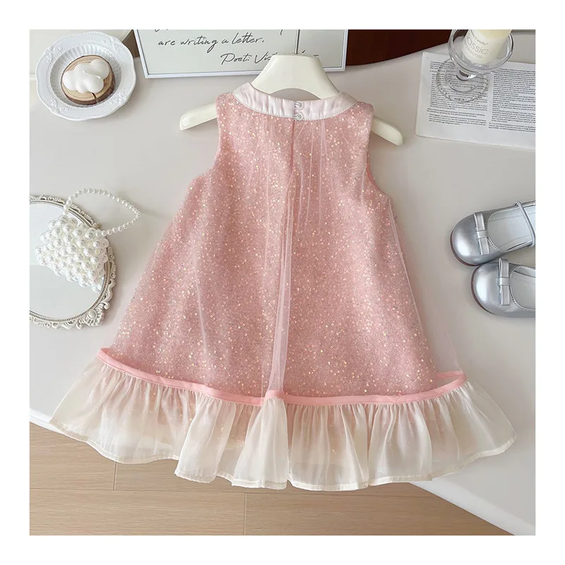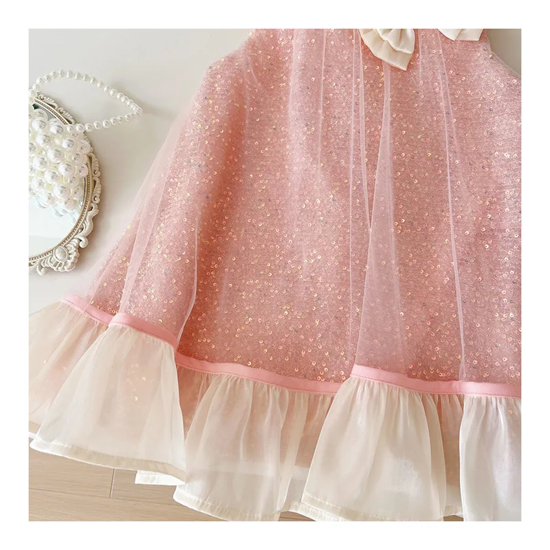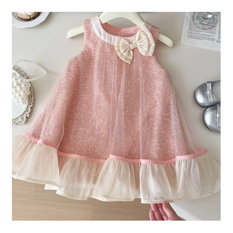 MQTIME - Girls' Summer Dress Bow Sequin Mesh Children's Sleeveless Princess Dress Summer Kid's Clothing