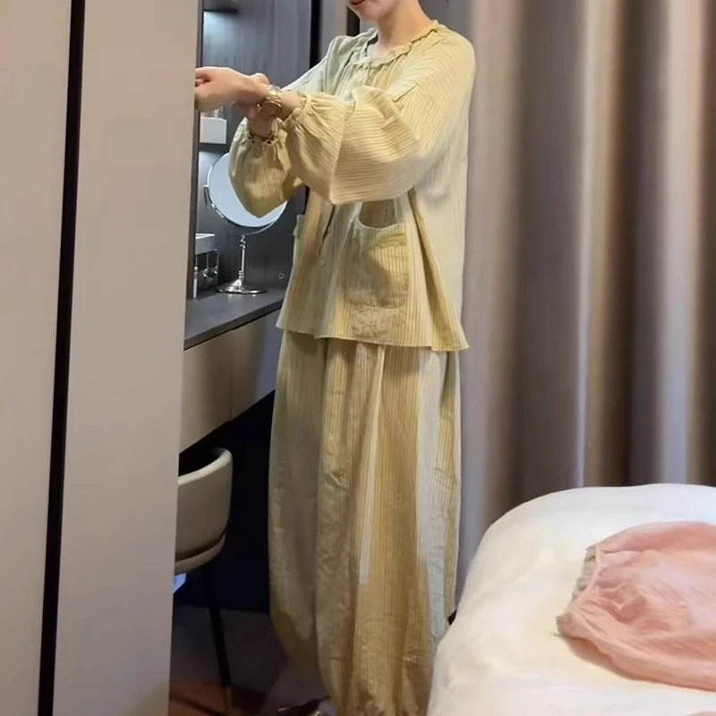 MQTIME - Girls Sweet Lace Long-sleeved Pajamas Women's Spring and Autumn Models New Comfortable Cotton Yarn Loungewear Large Size Set