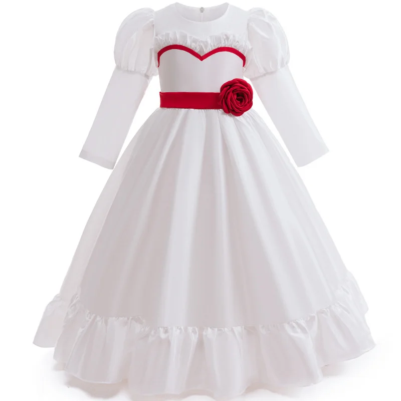 MQTIME - Halloween Girls Dress 2025 New Kids Elegant White Sweet Gown Children Fashion Vestidos Princess Floral Long Dresses 3-10Y