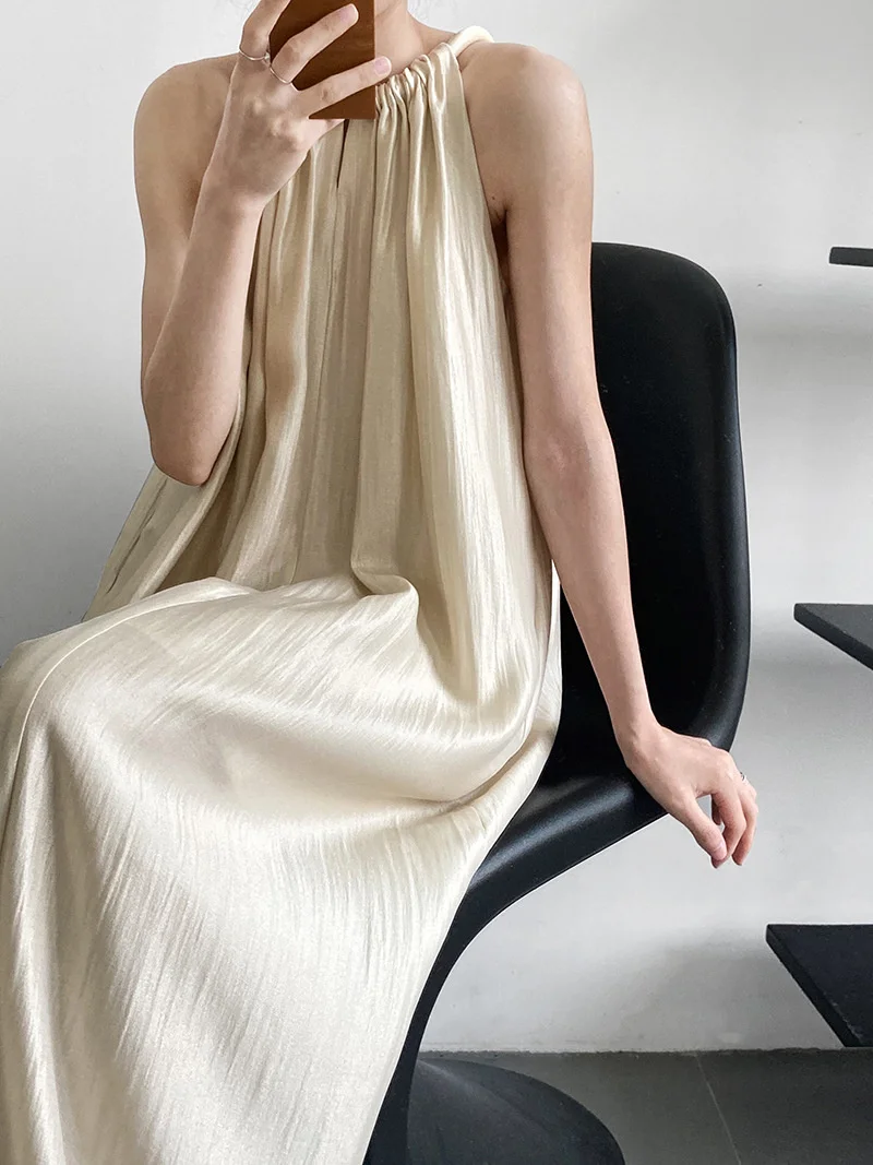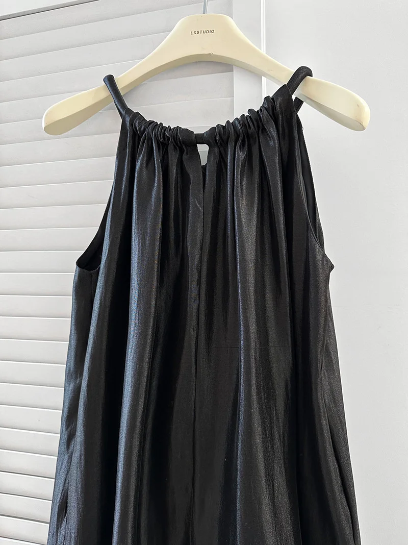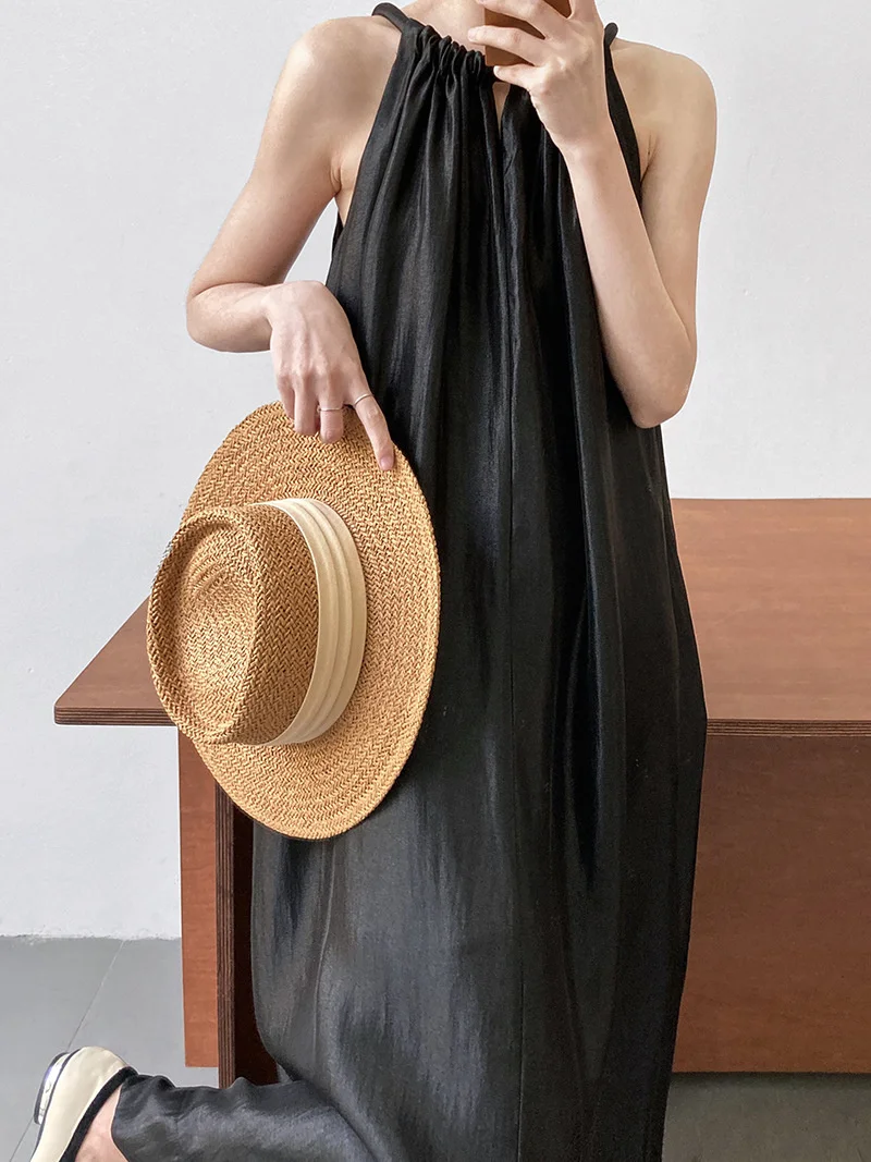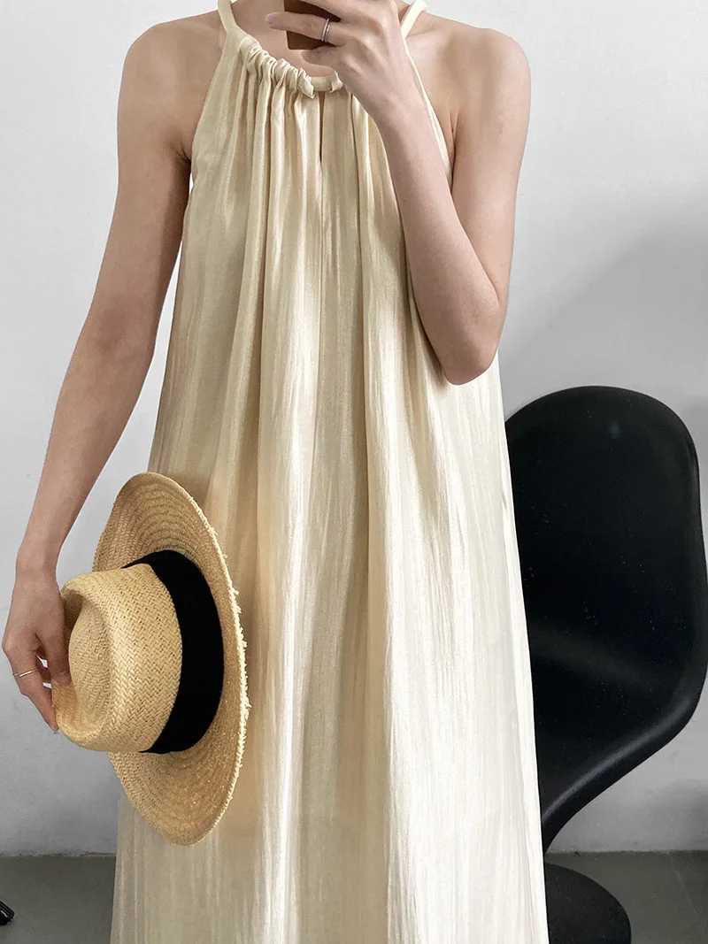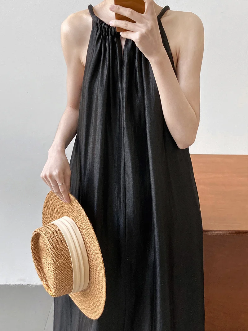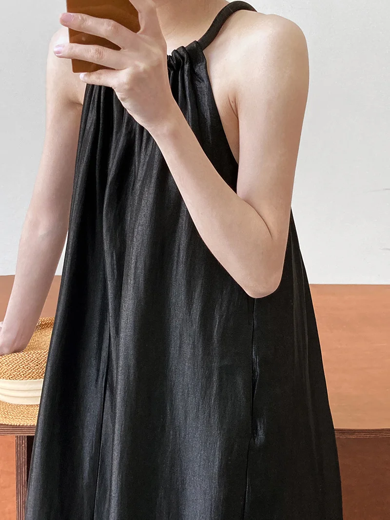 MQTIME - Hanging Neck Strap Dress Women Wide Truffle Shoulder Sleeveless Tank Dress