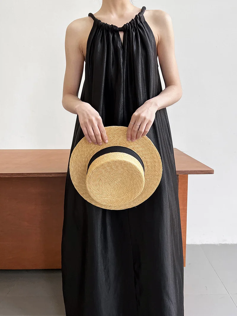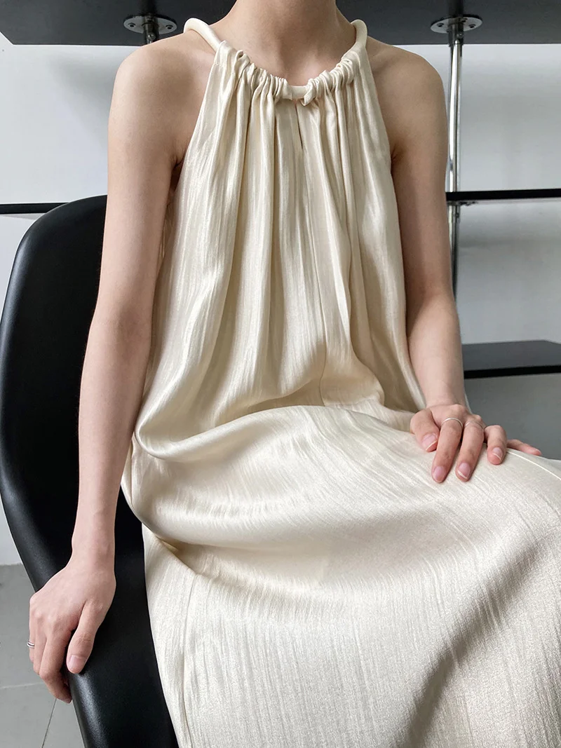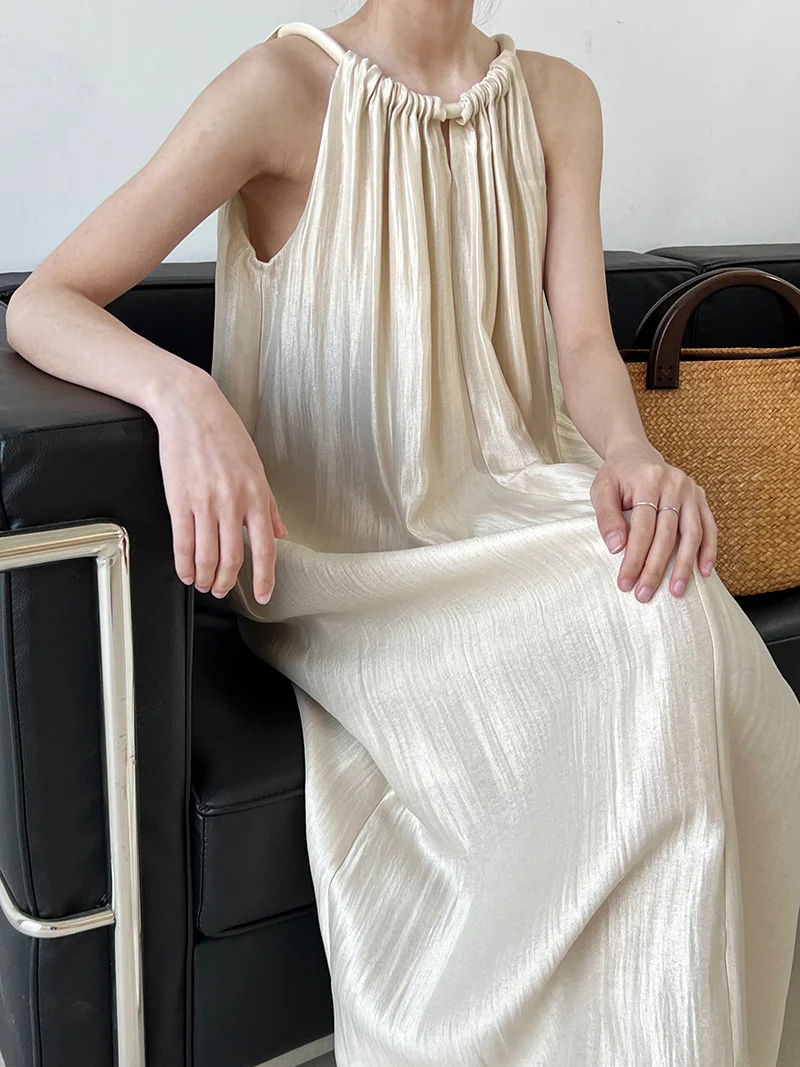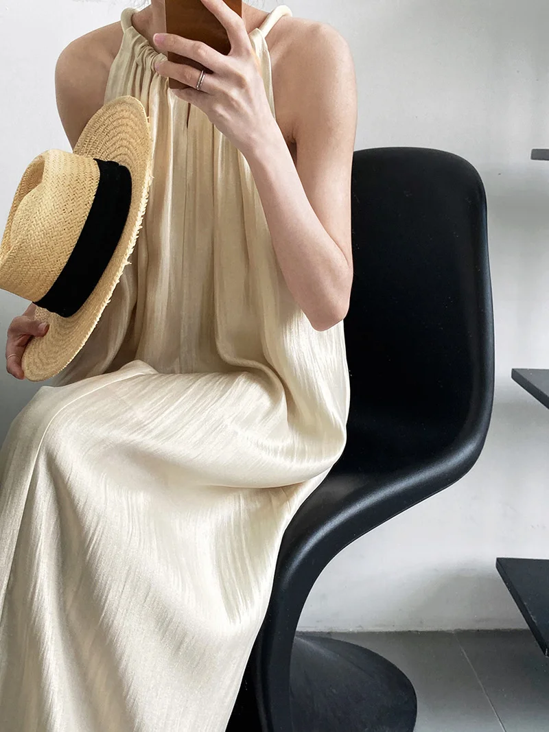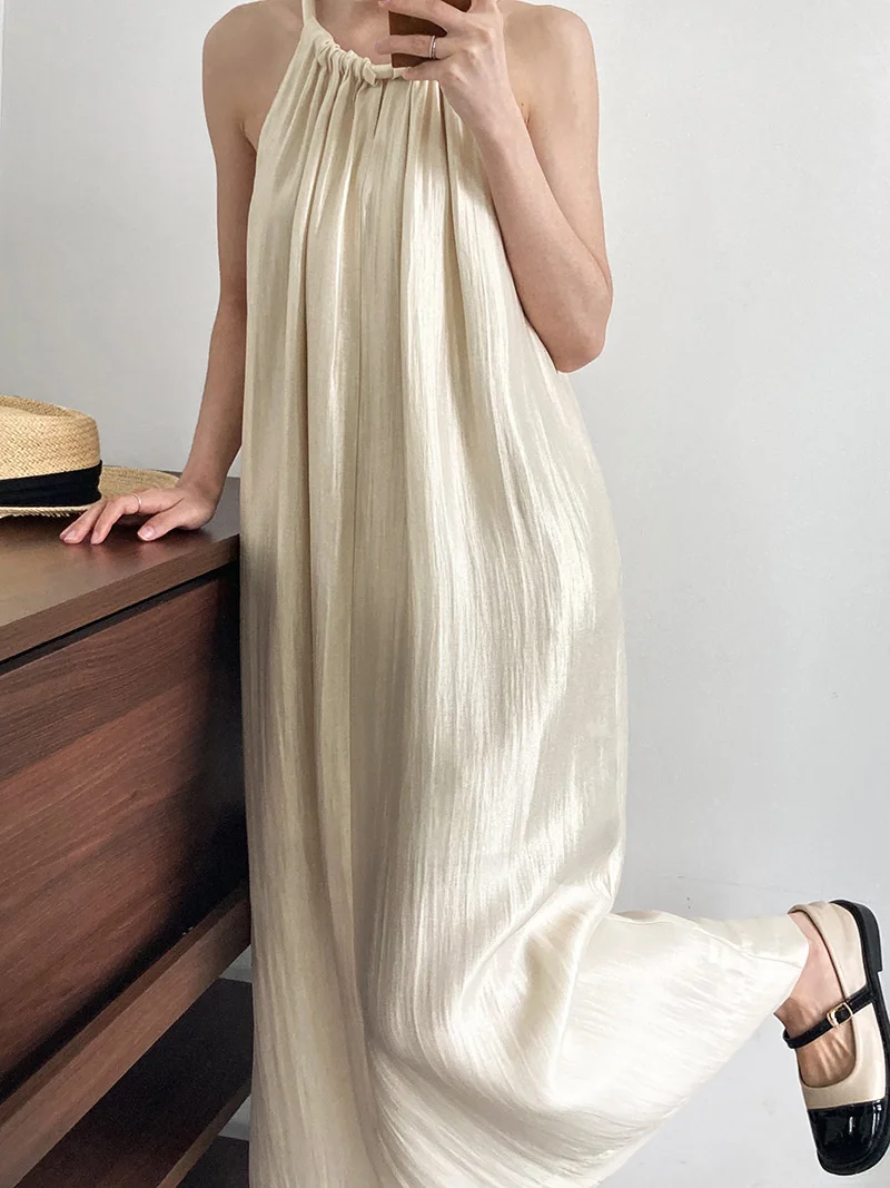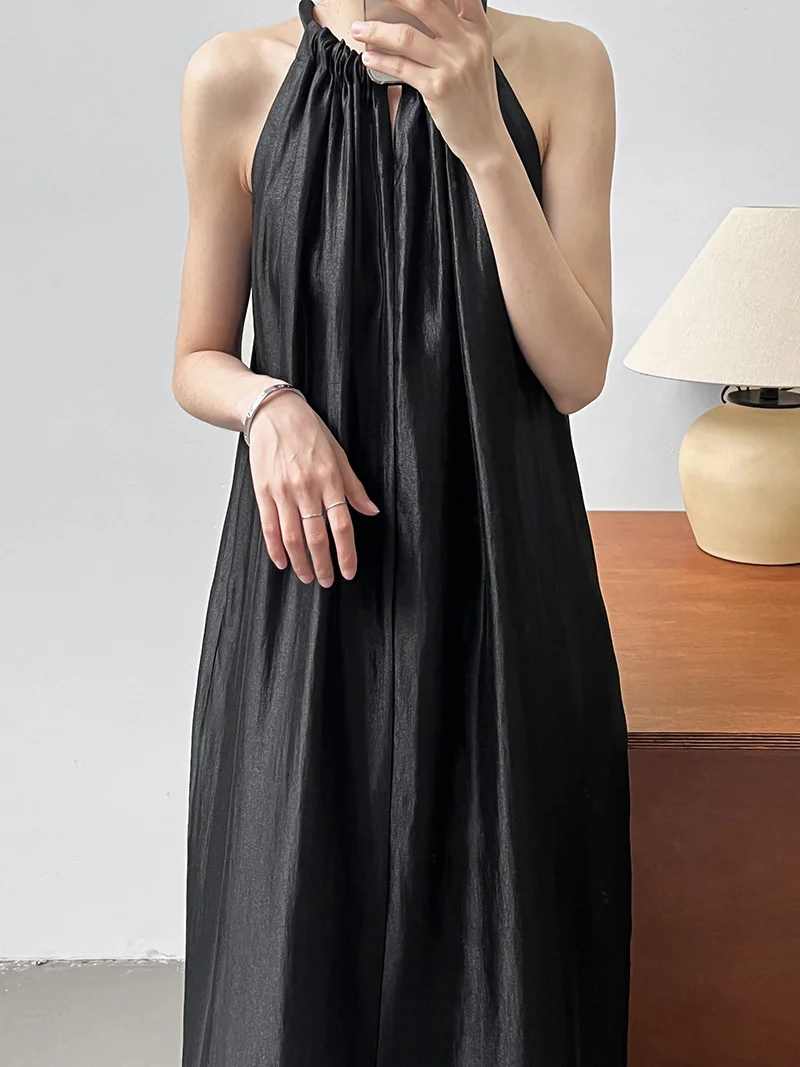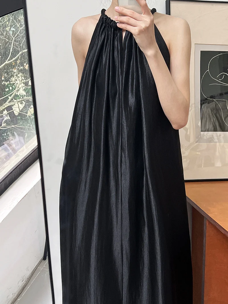 MQTIME - Hanging Neck Strap Dress Women Wide Truffle Shoulder Sleeveless Tank Dress
