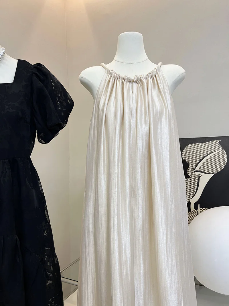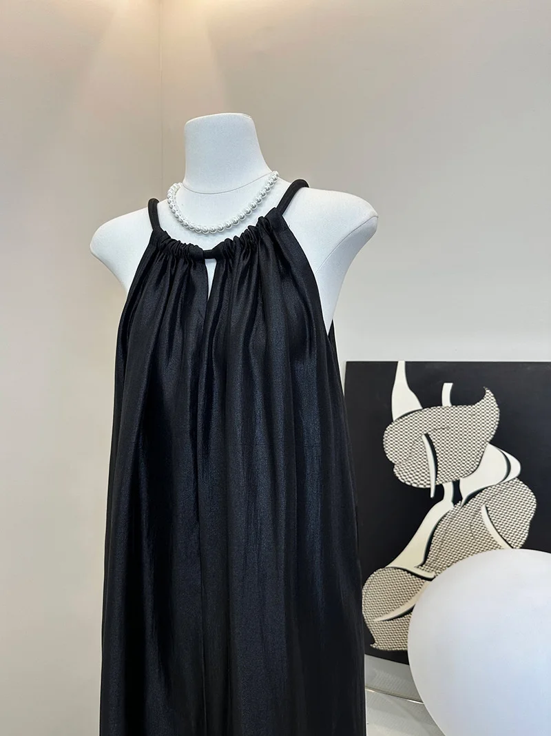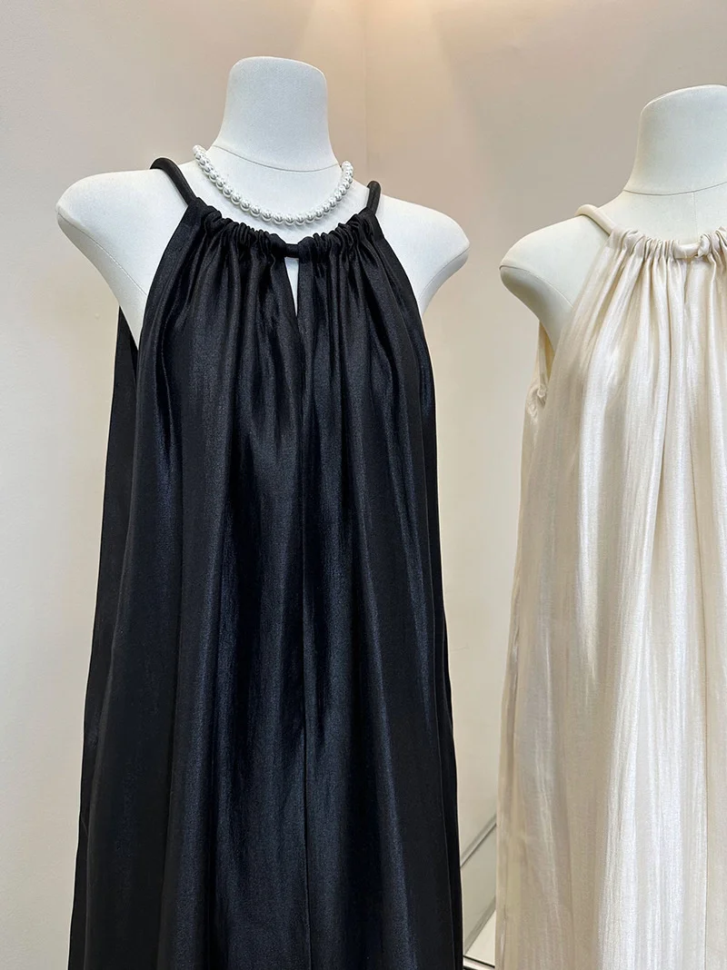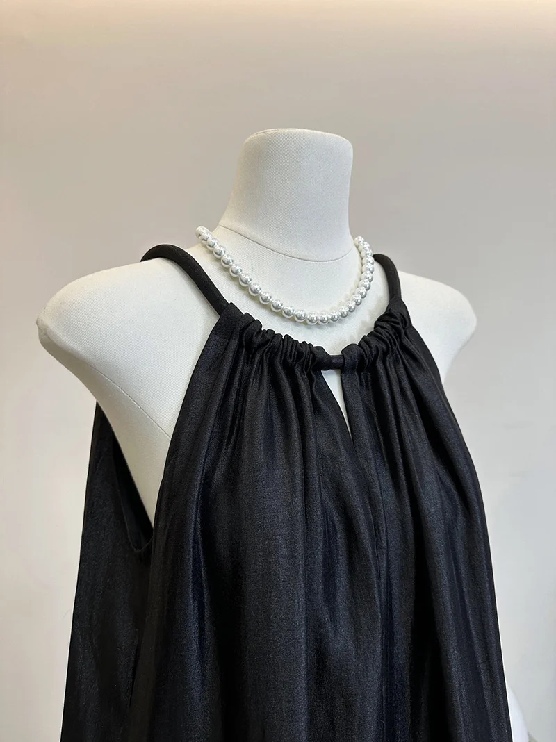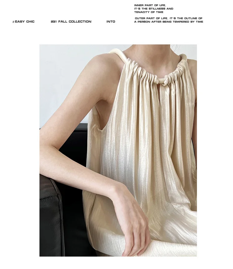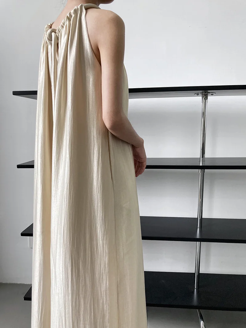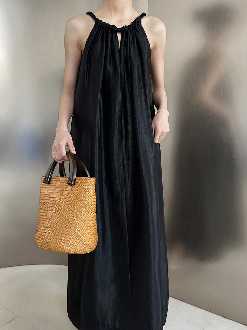 MQTIME - Hanging Neck Strap Dress Women Wide Truffle Shoulder Sleeveless Tank Dress