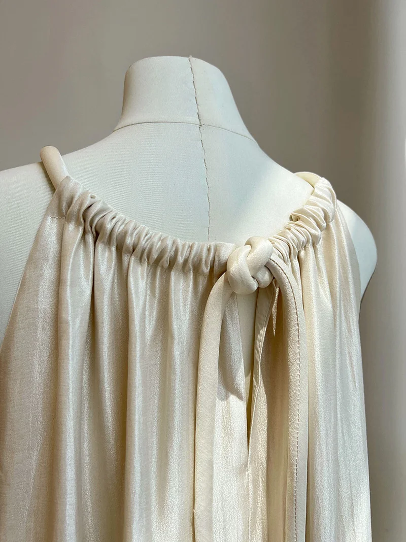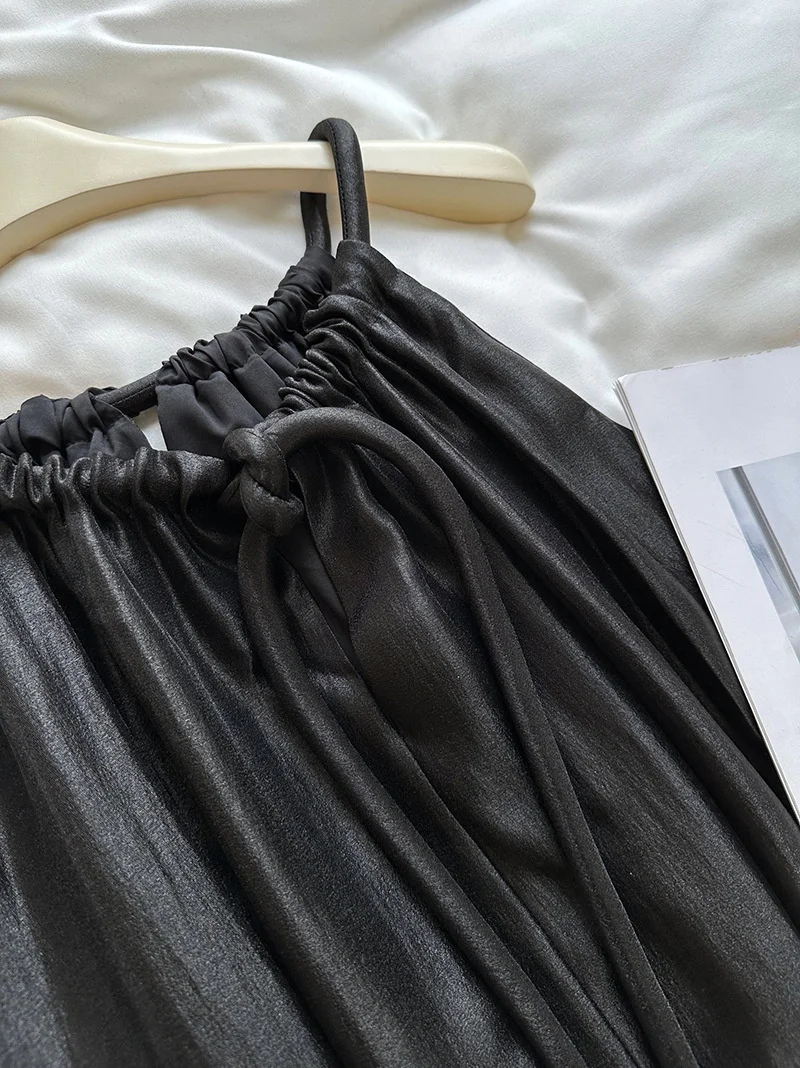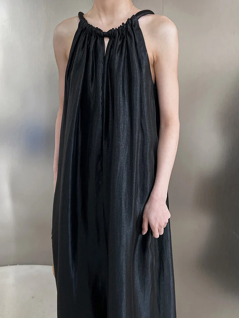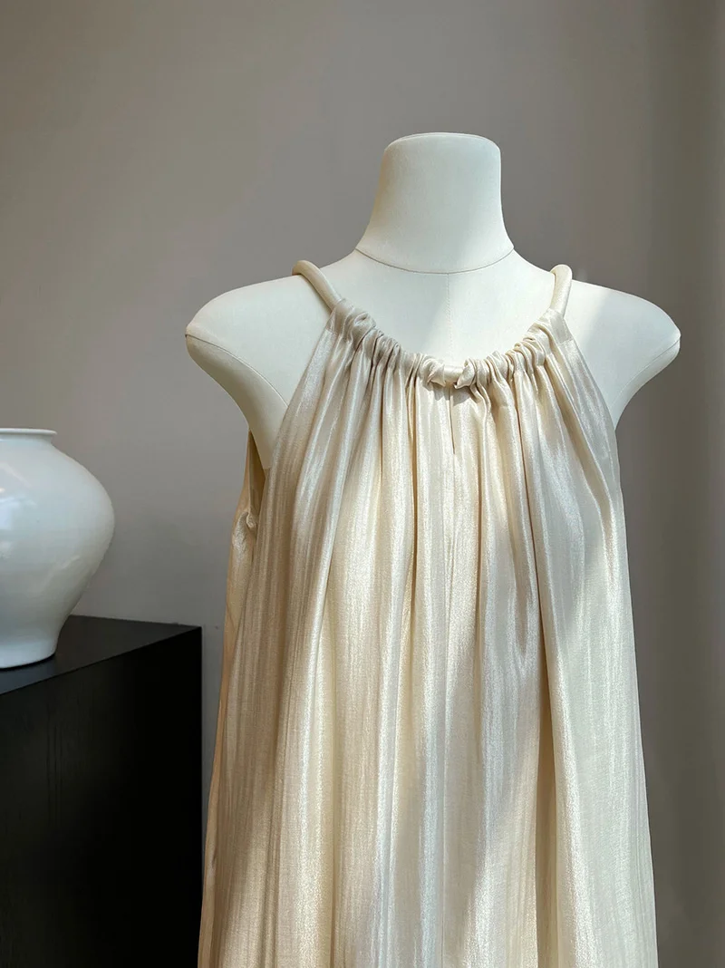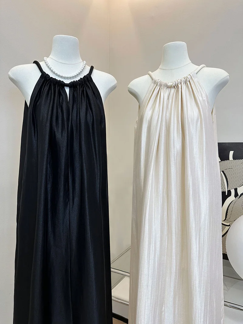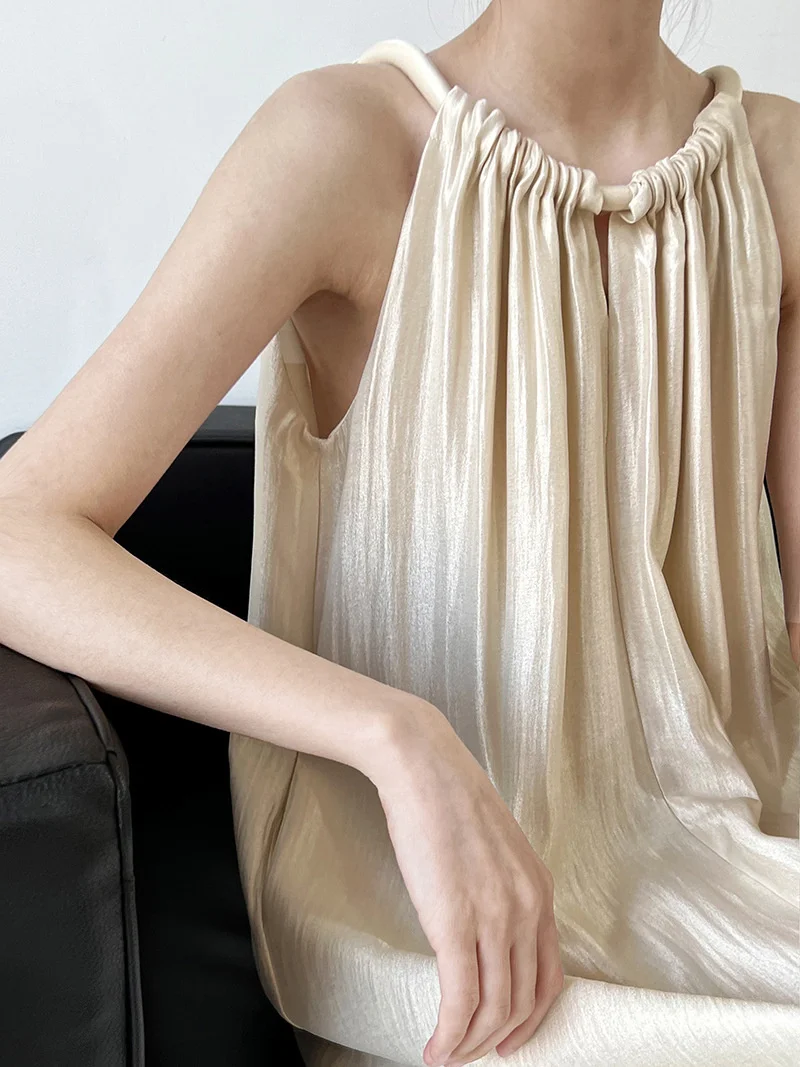 MQTIME - Hanging Neck Strap Dress Women Wide Truffle Shoulder Sleeveless Tank Dress