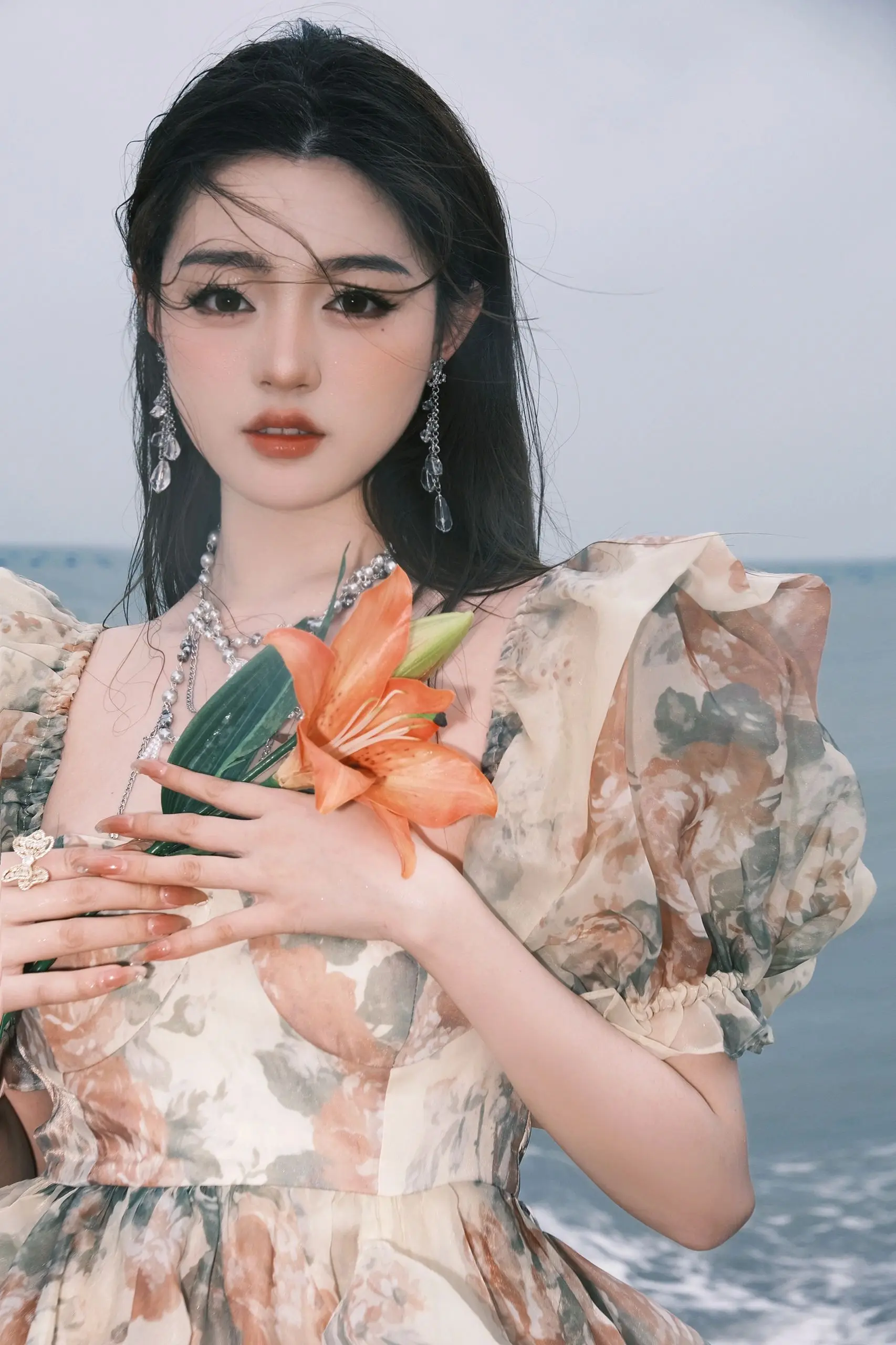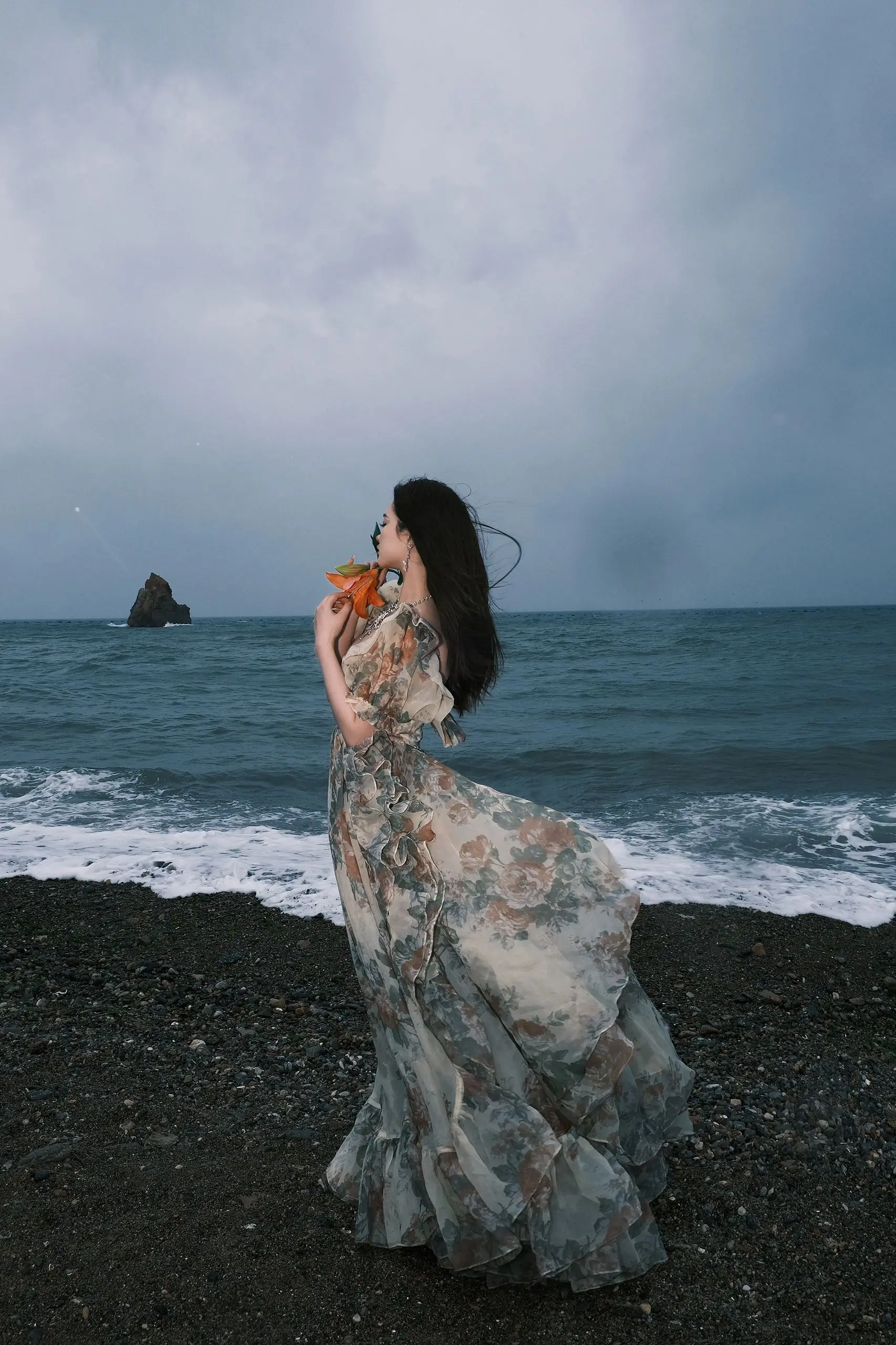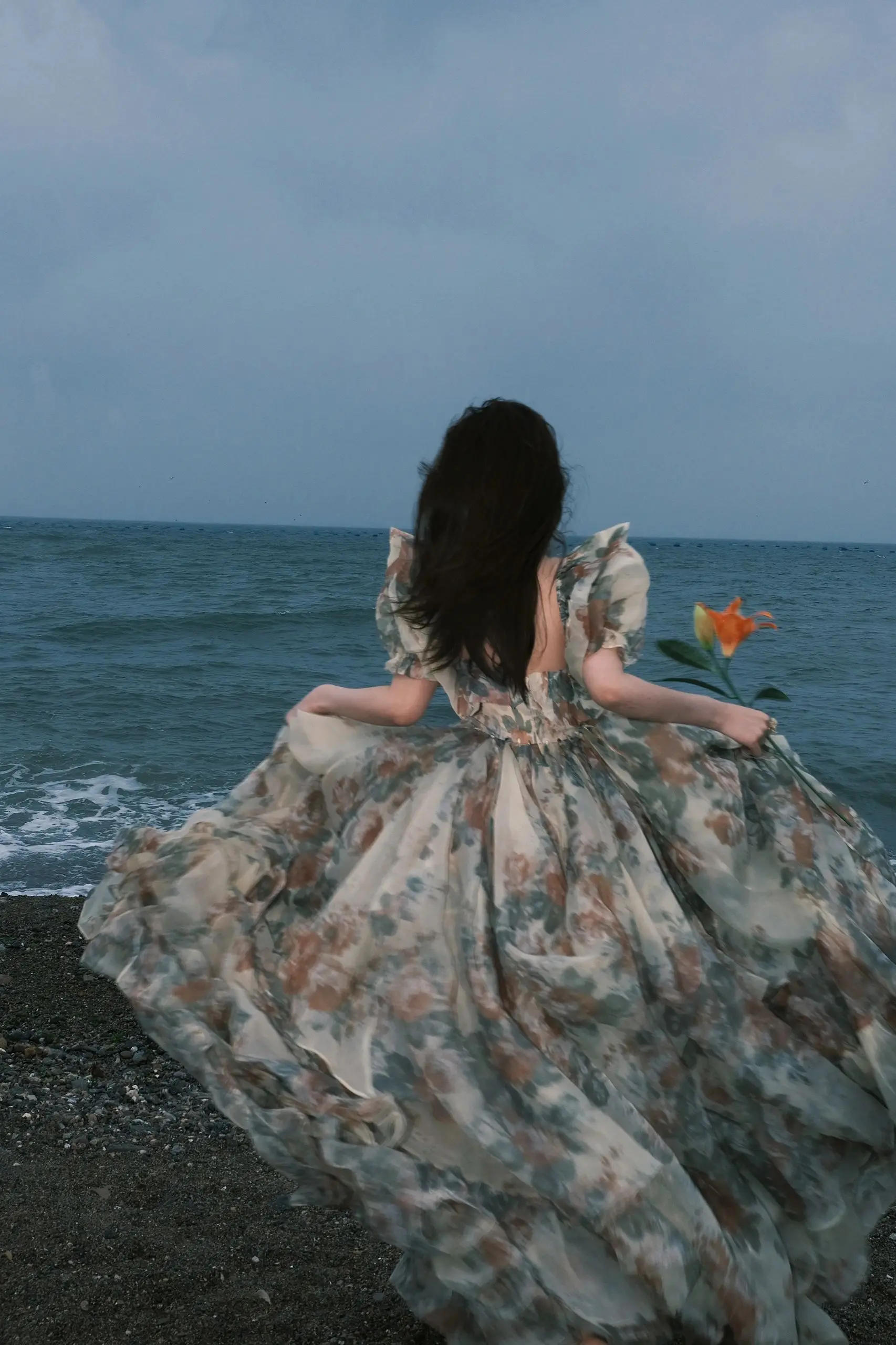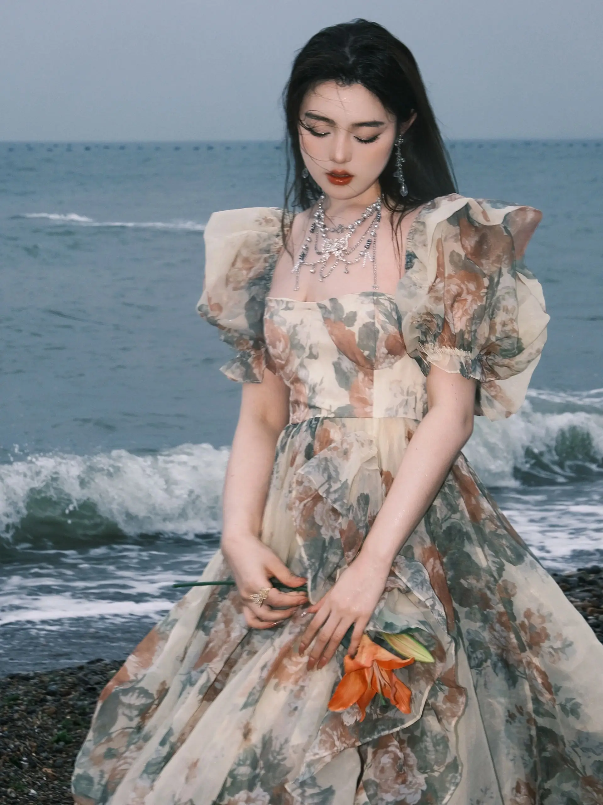 MQTIME - High End Summer Long Princess Dress Luxus Flower Ruffles Bubble Sleeves Maxi Fairy Dress Photograph Birthday Beach Holiday Dress