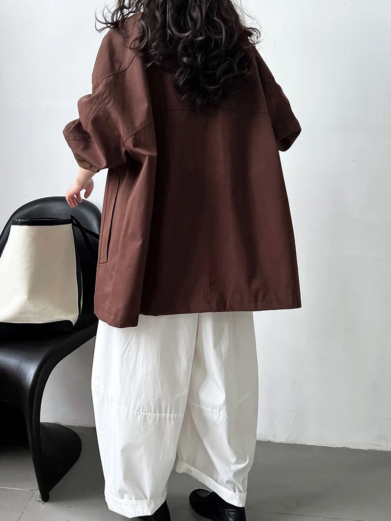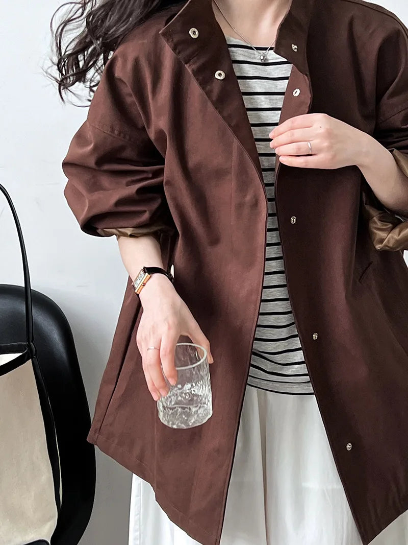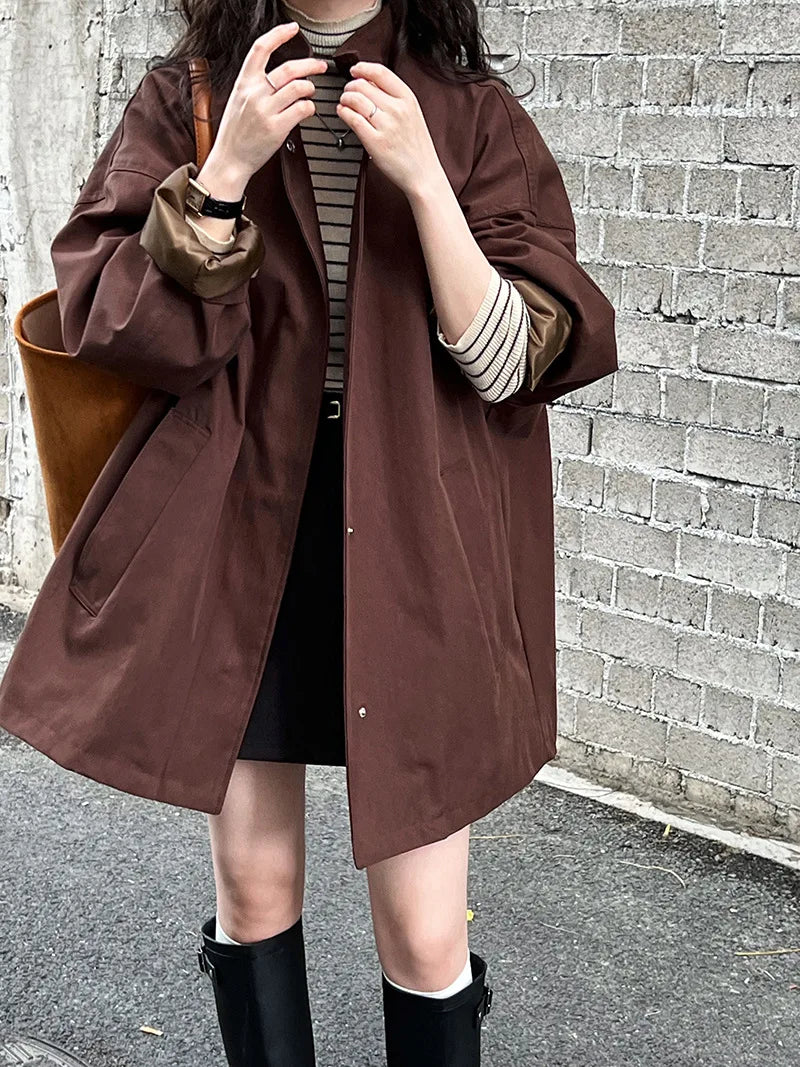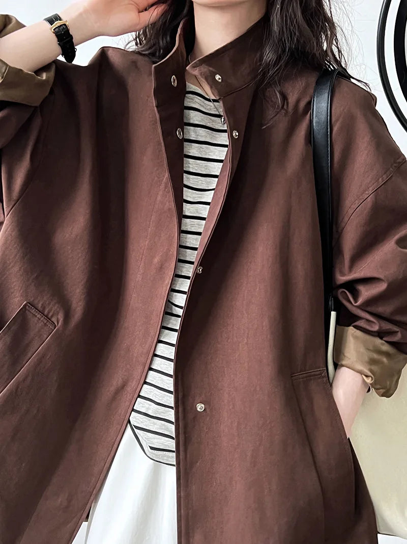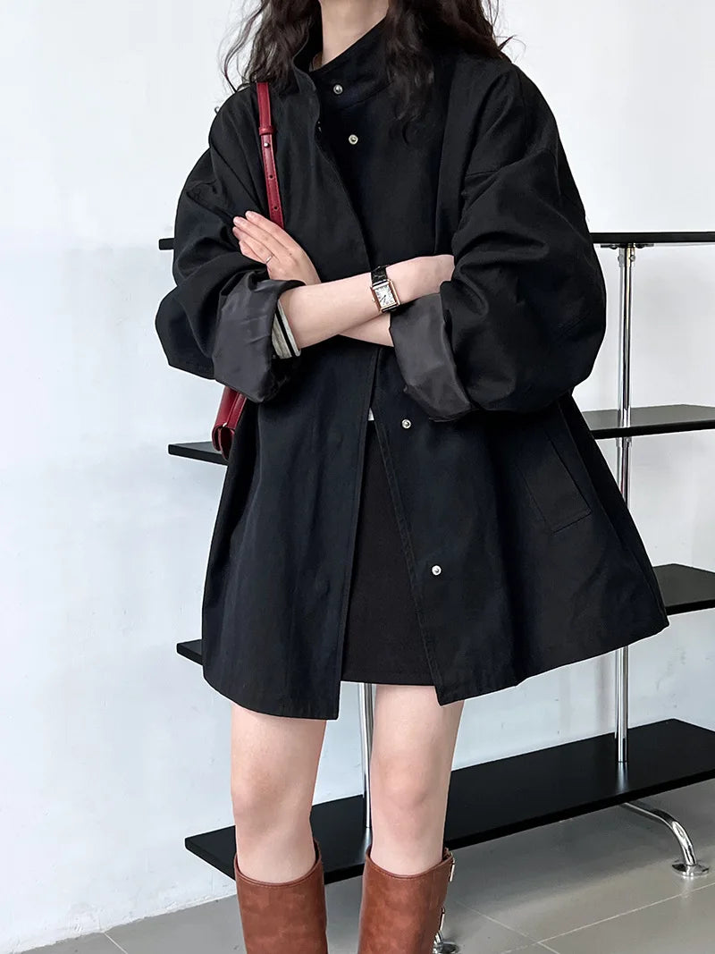 MQTIME  -  High-quality Oversized Stand-collar Trench Coat for Women, Lazy Style Minimalist Outerwear