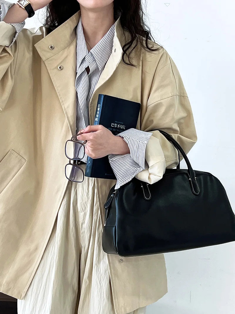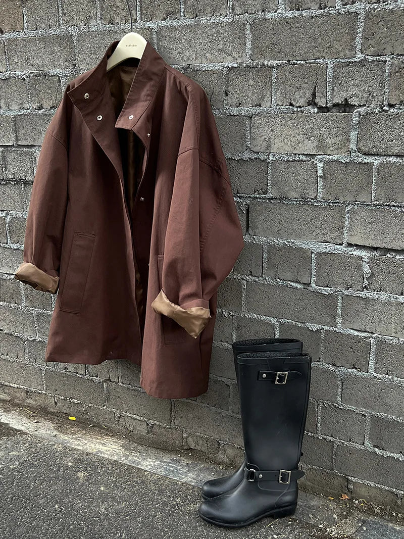 MQTIME - High-quality Oversized Stand-collar Trench Coat for Women, Lazy Style Minimalist Outerwear
