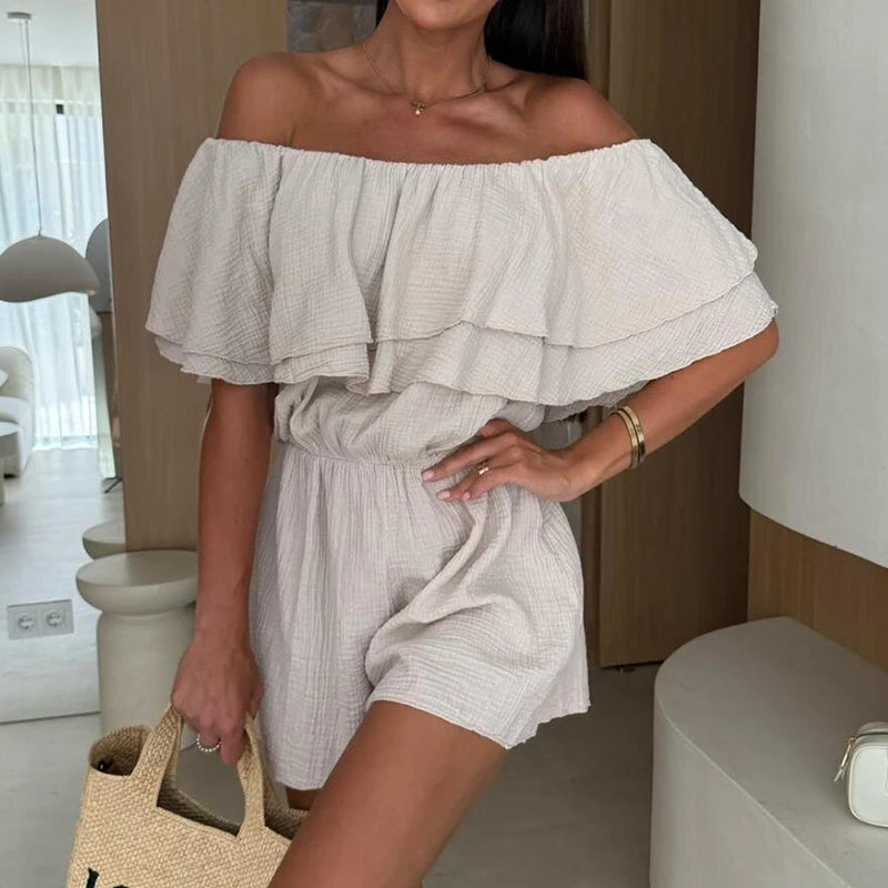 MQTIME - High Street Fashion Solid Color Jumpsuits Elegant Lady Skew Collar High Waist Playsuit Overalls Casual Commuting Shorts Rompers