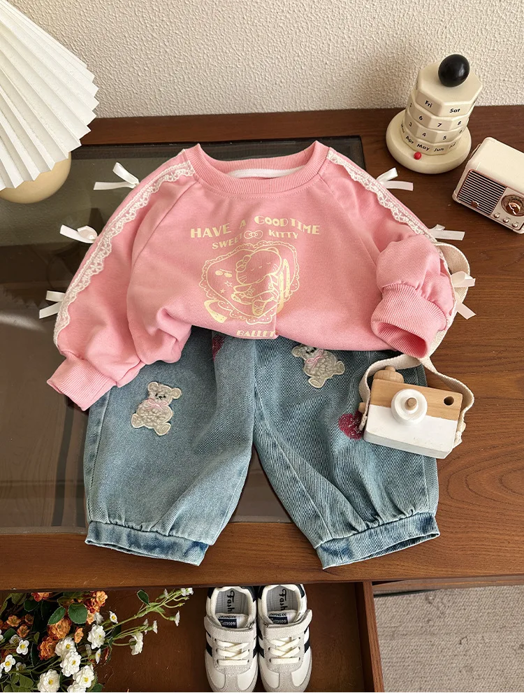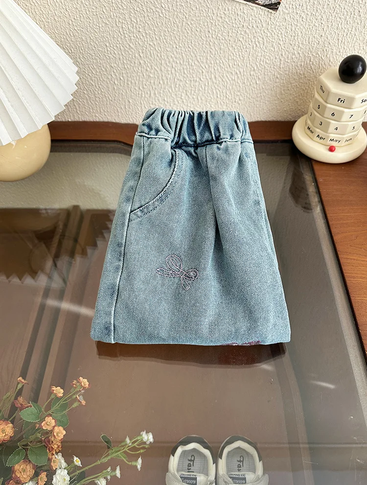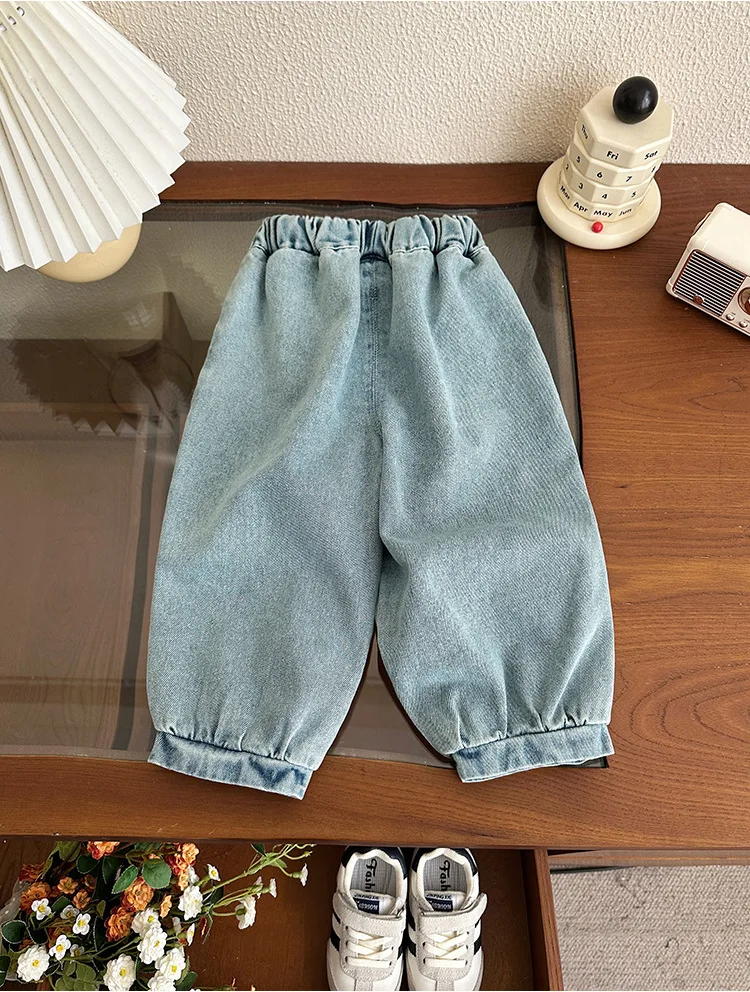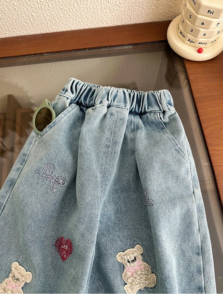 MQTIME - Infant Baby Girl Spring Jeans Cotton Bear Embroidery Loose Children Girl Lantern Pants Elastic Waist 1-6Y Girls Denim Pants