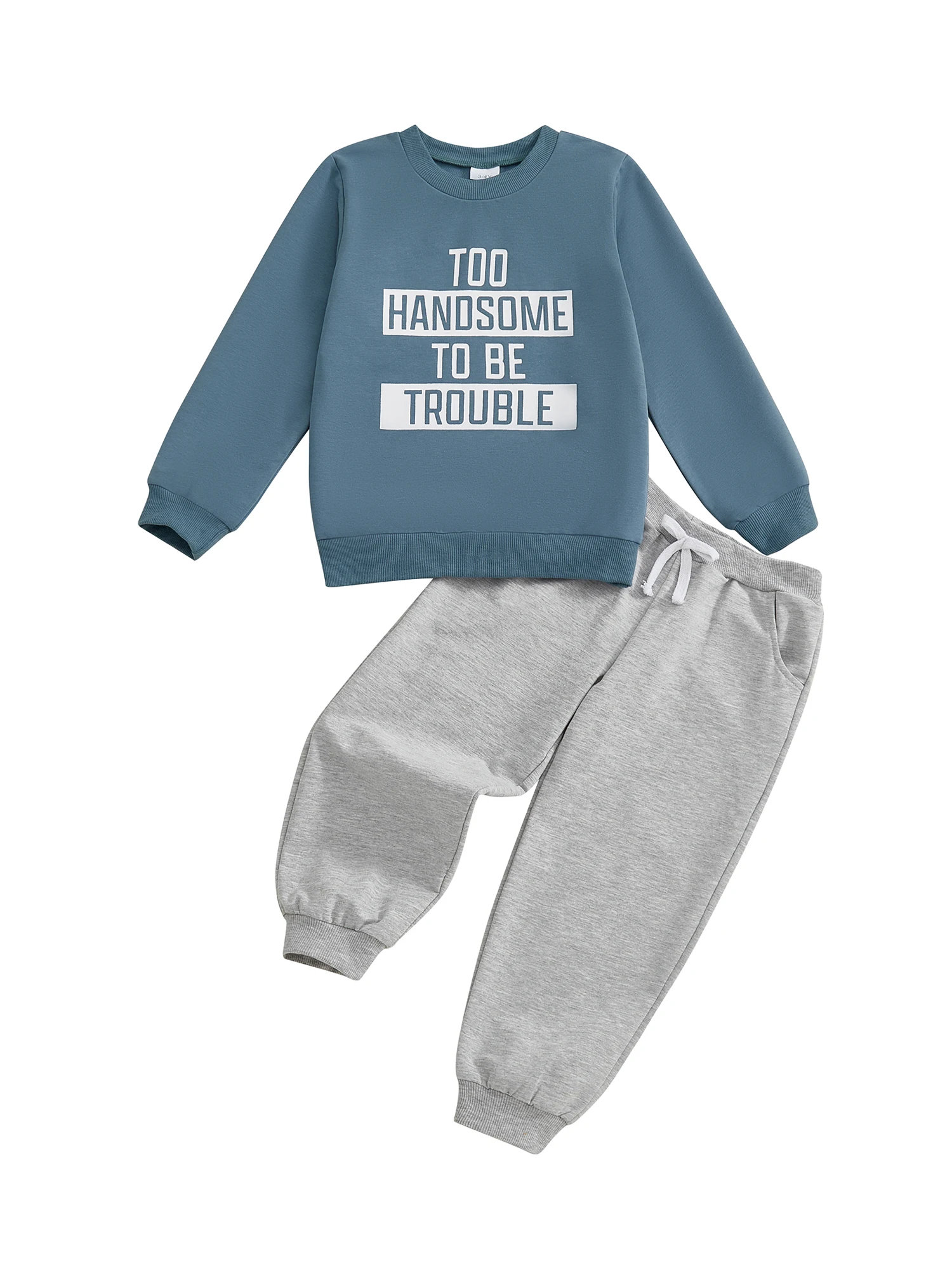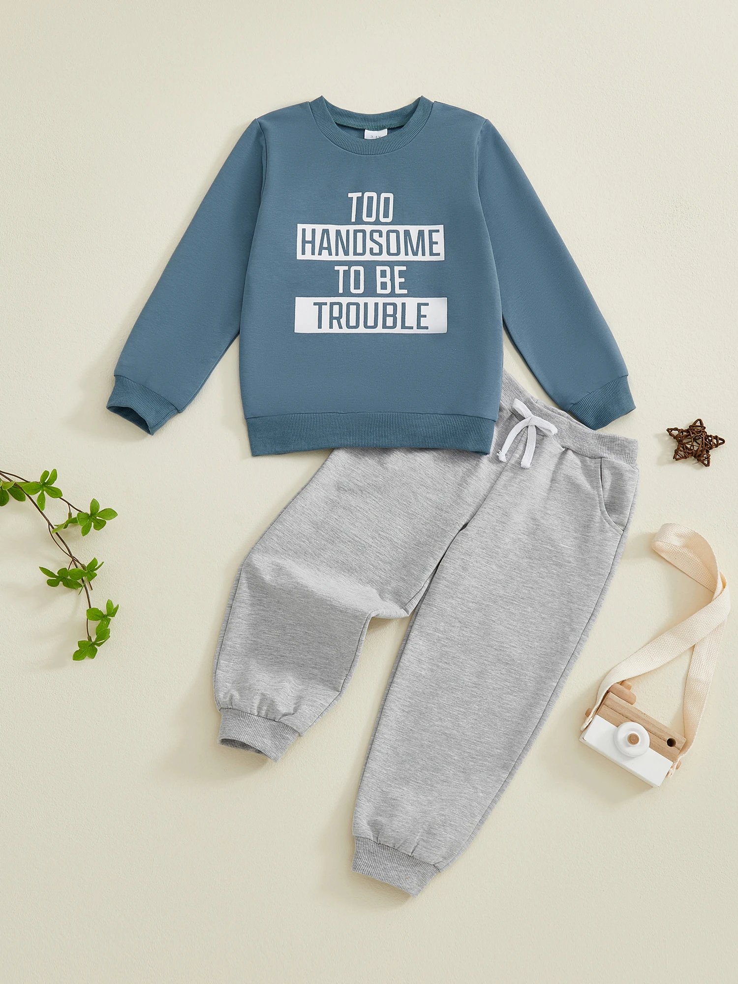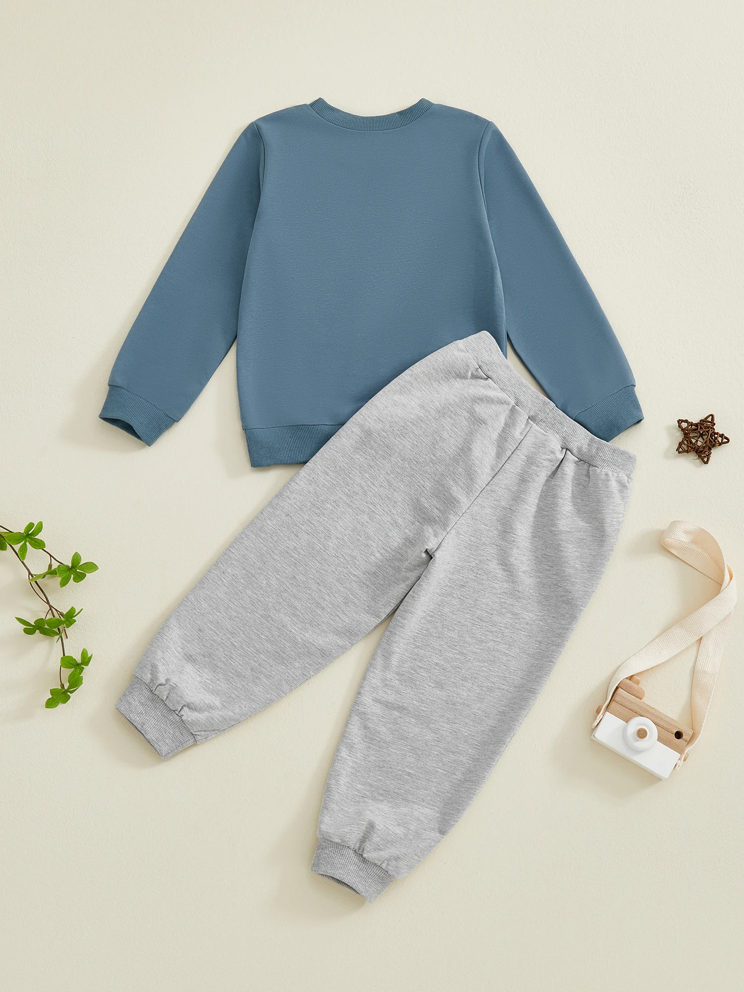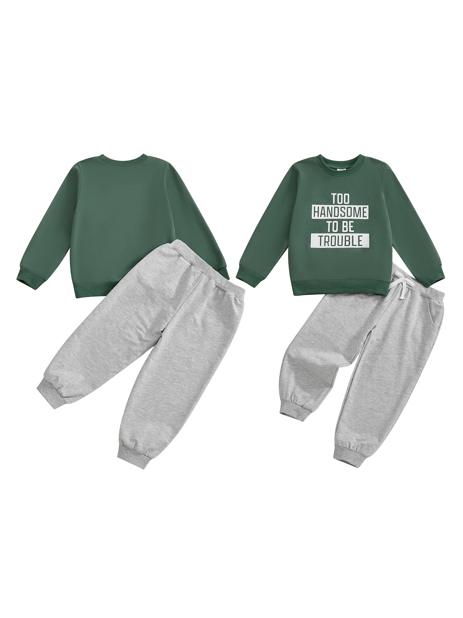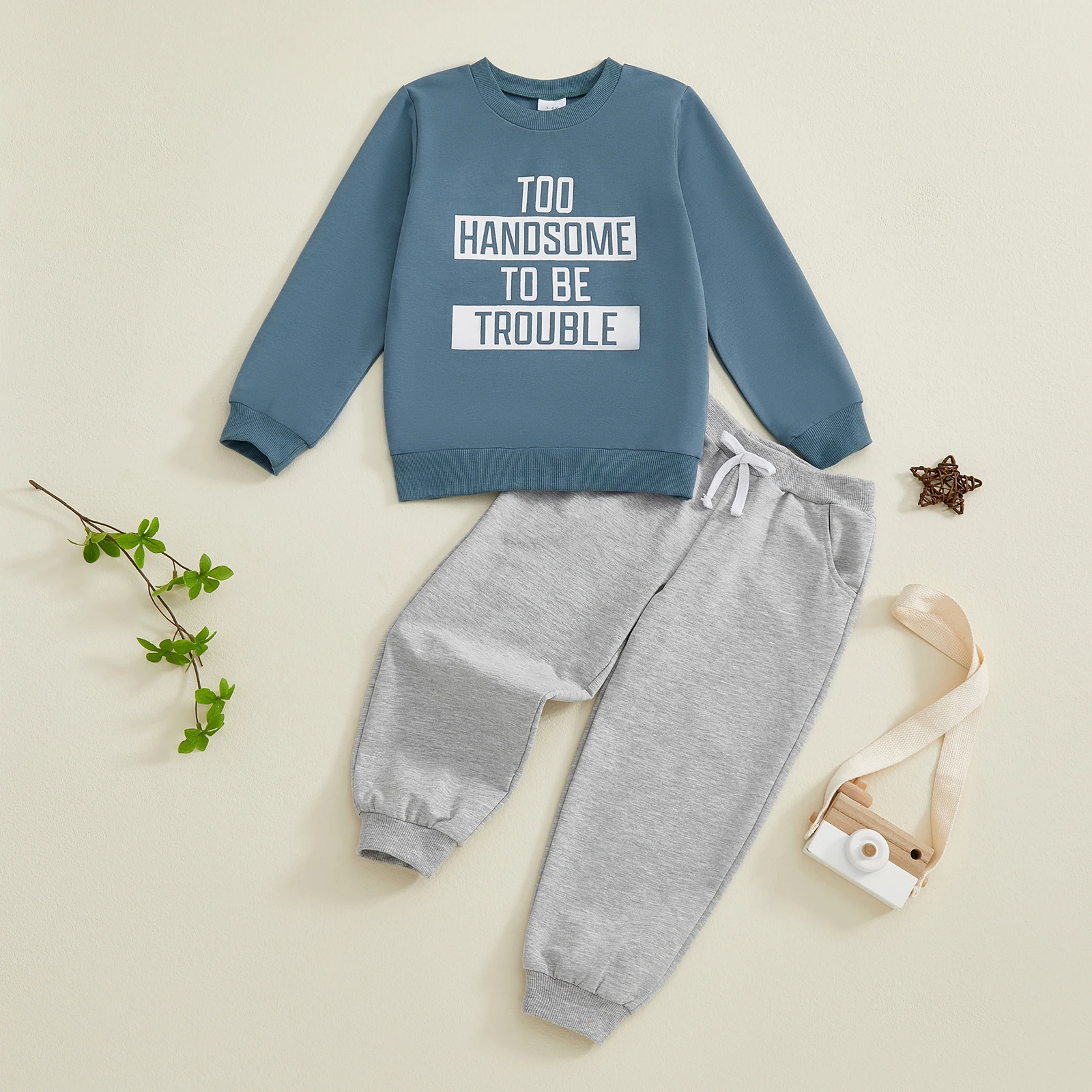 MQTIME - Infant Boys Stylish Autumn Ensemble Trendy Long Sleeve Top with Printed Letters and Matching Solid Trousers - 2 Piece Set